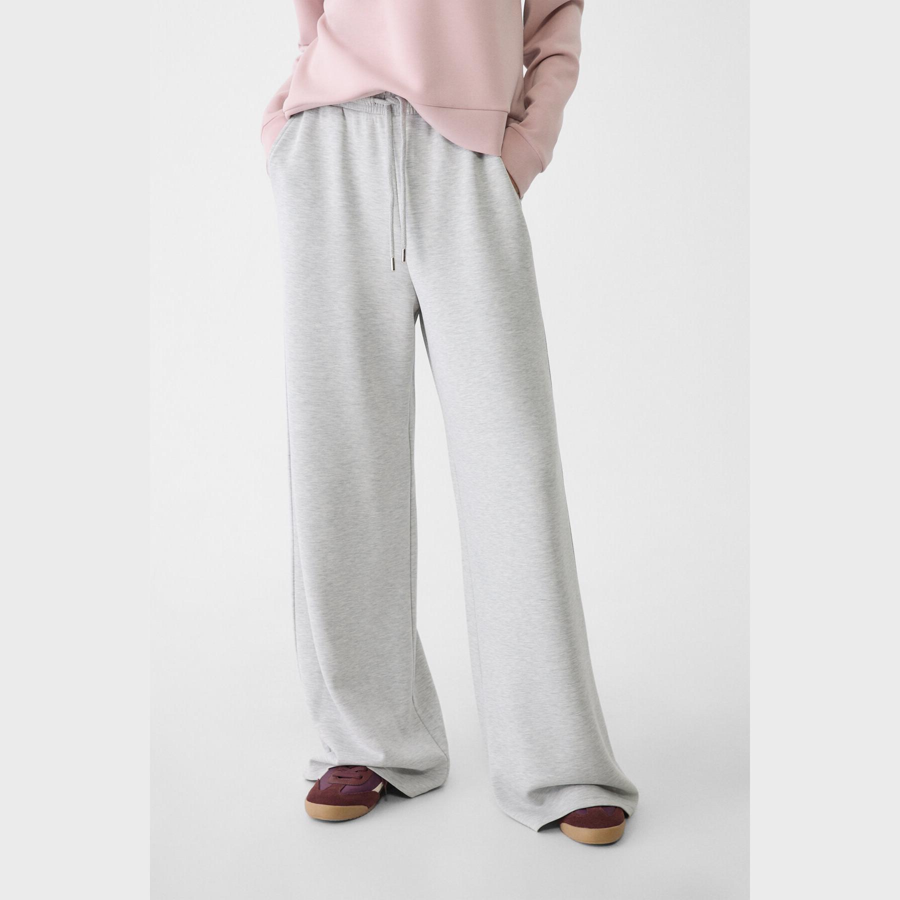 بنطال Palazzo بملمس ناعم وقصة واسعة – رمادي فاتح من Stradivarius