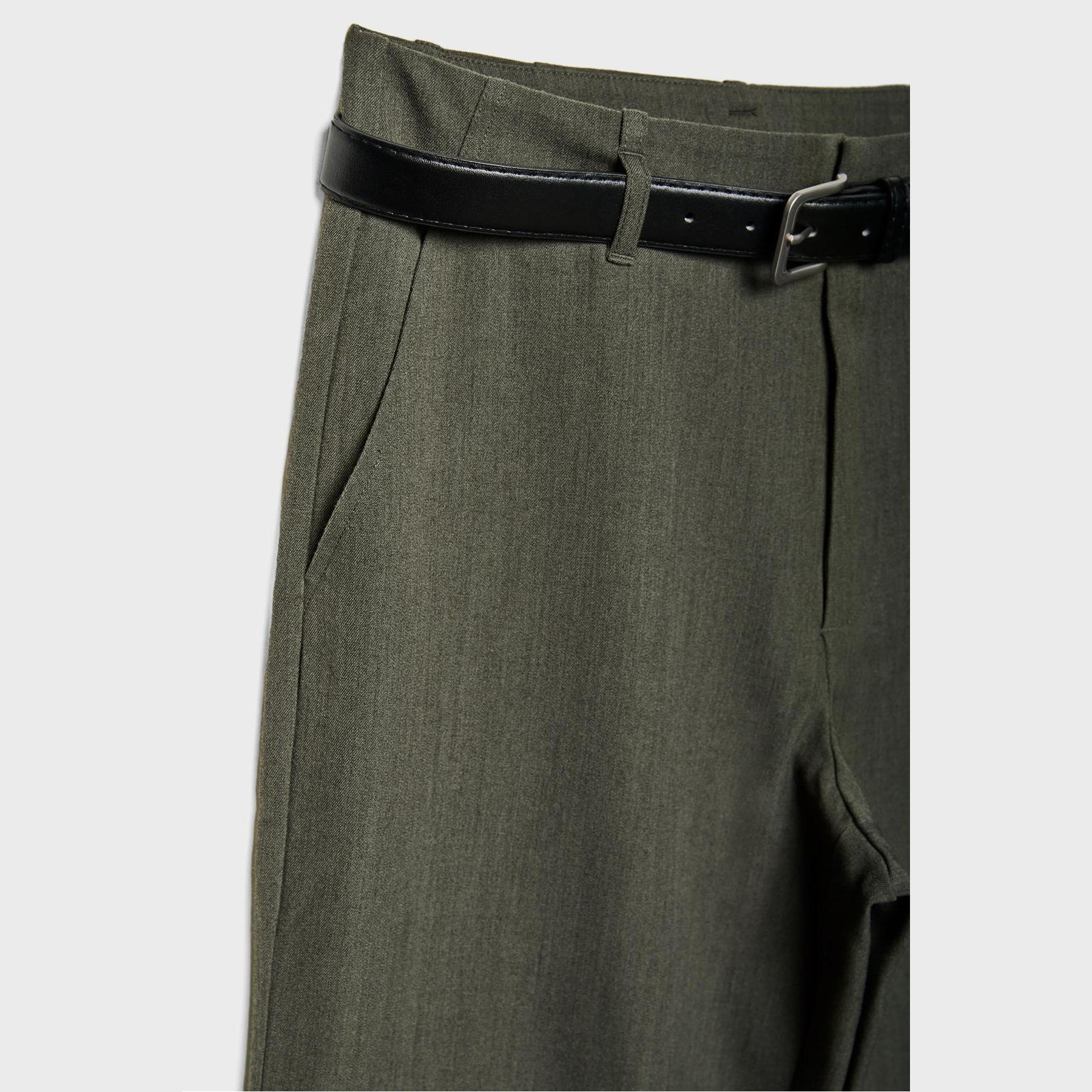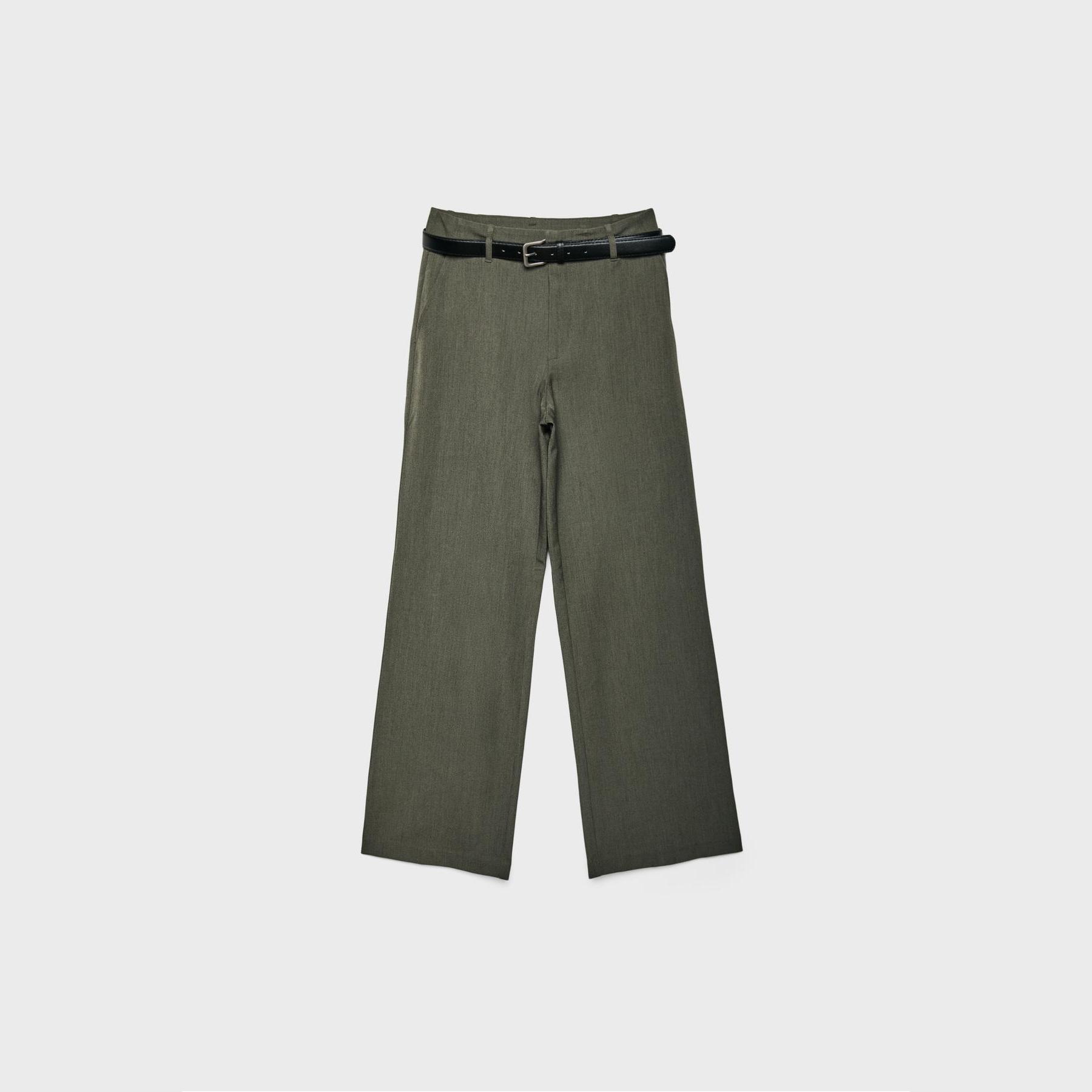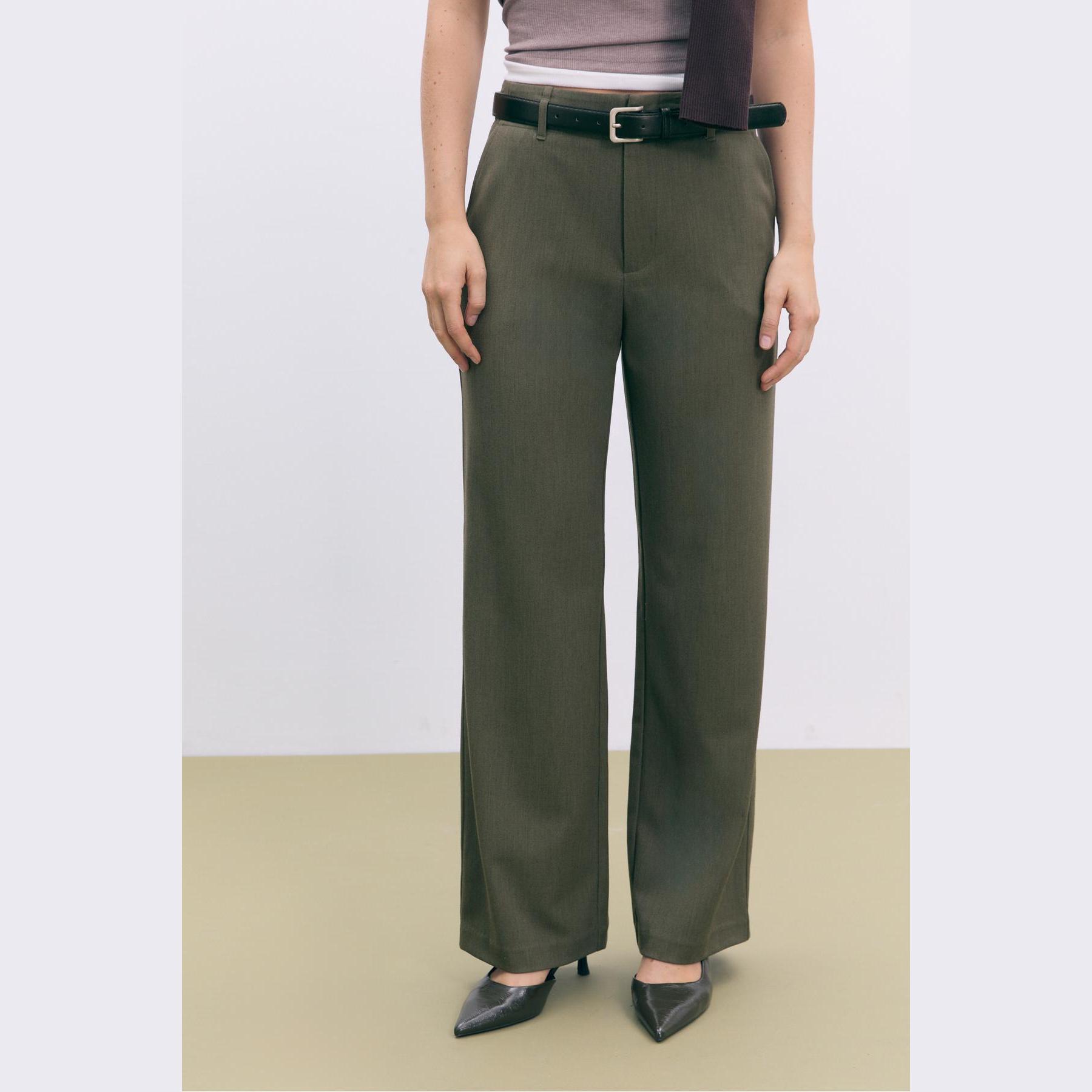 بنطال مستقيم بقصة انسيابية وحزام معدني – زيتي من Stradivarius