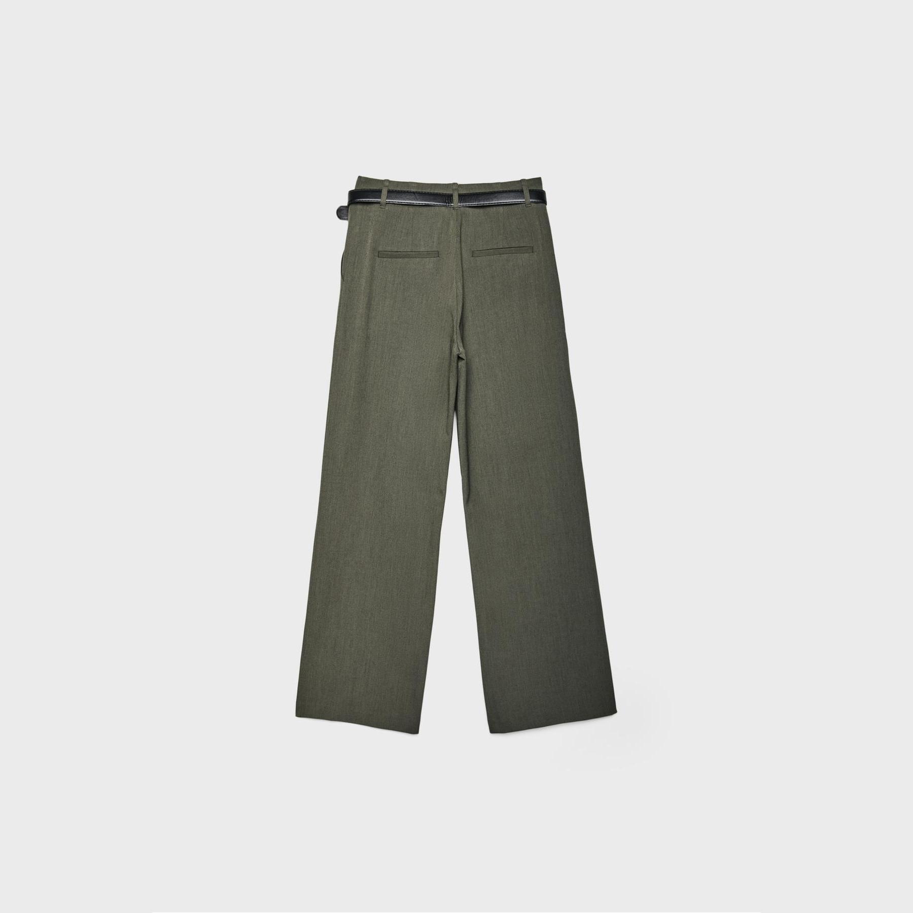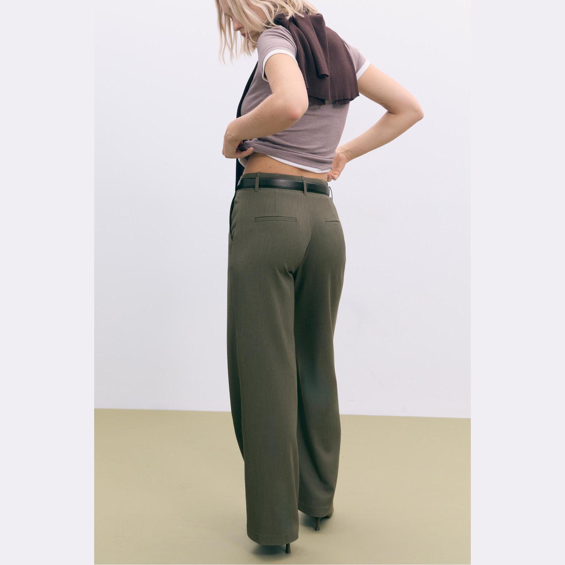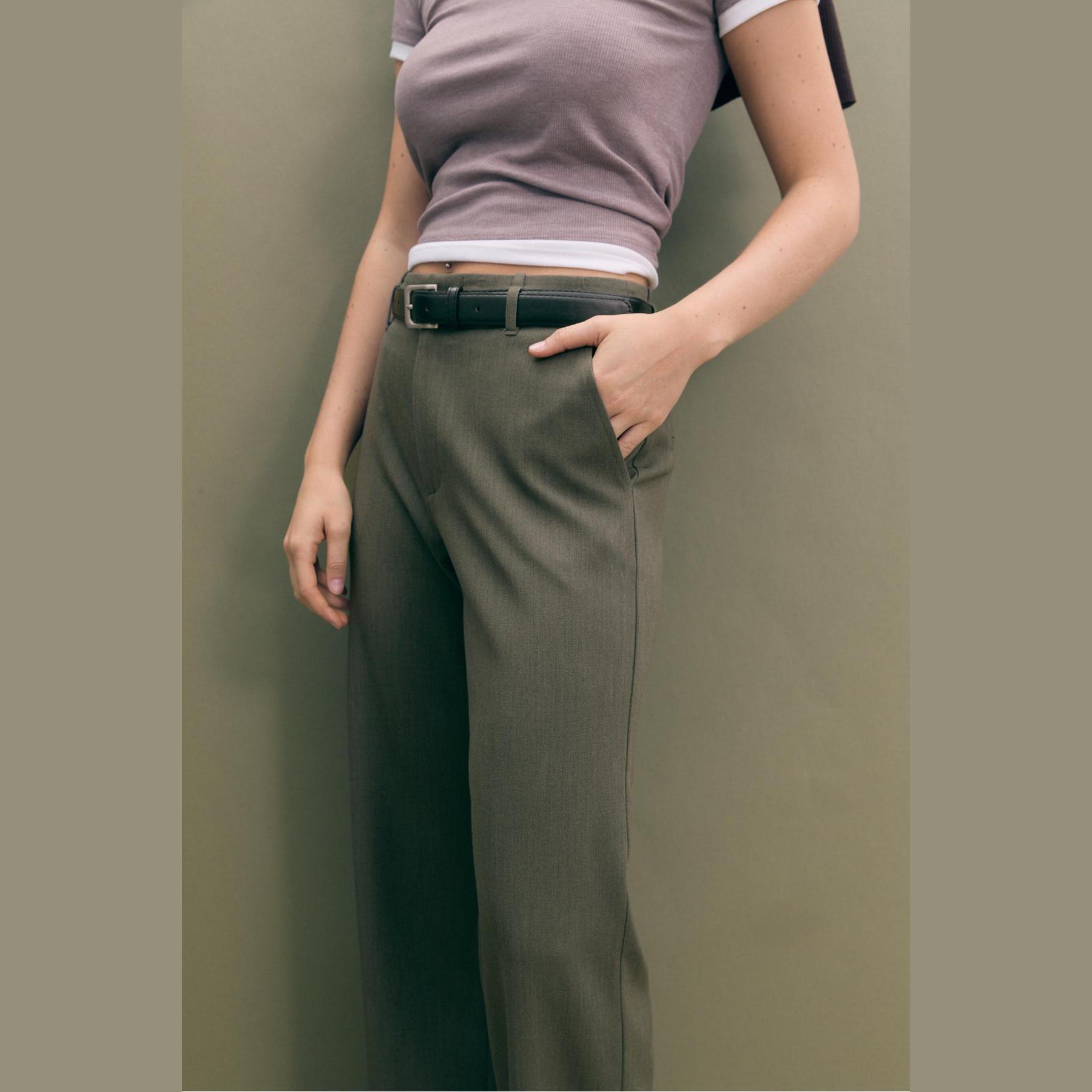 بنطال مستقيم بقصة انسيابية وحزام معدني – زيتي من Stradivarius