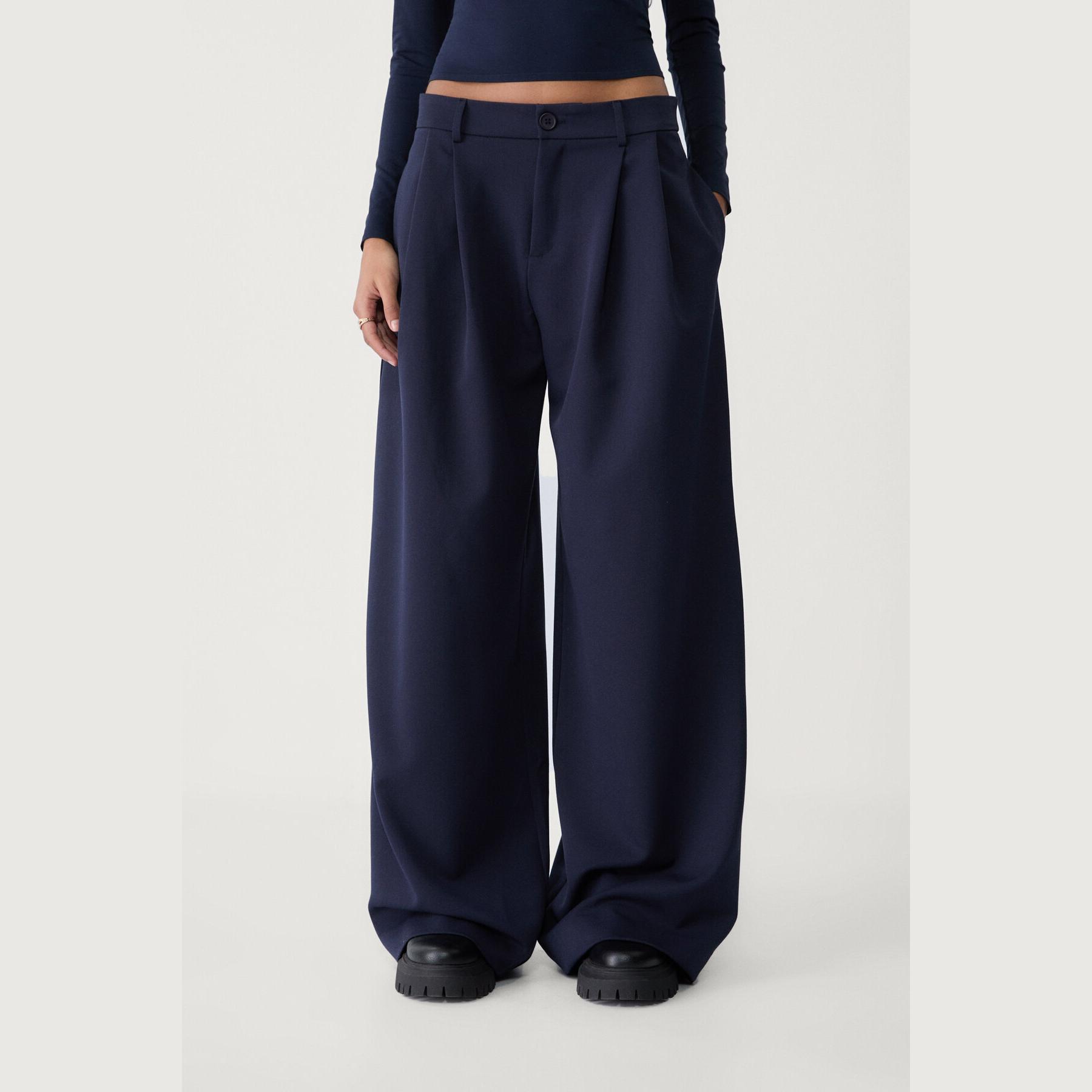 بنطال واسع بقصة مستقيمة وتفاصيل بنس أمامية – كحلي من Stradivarius