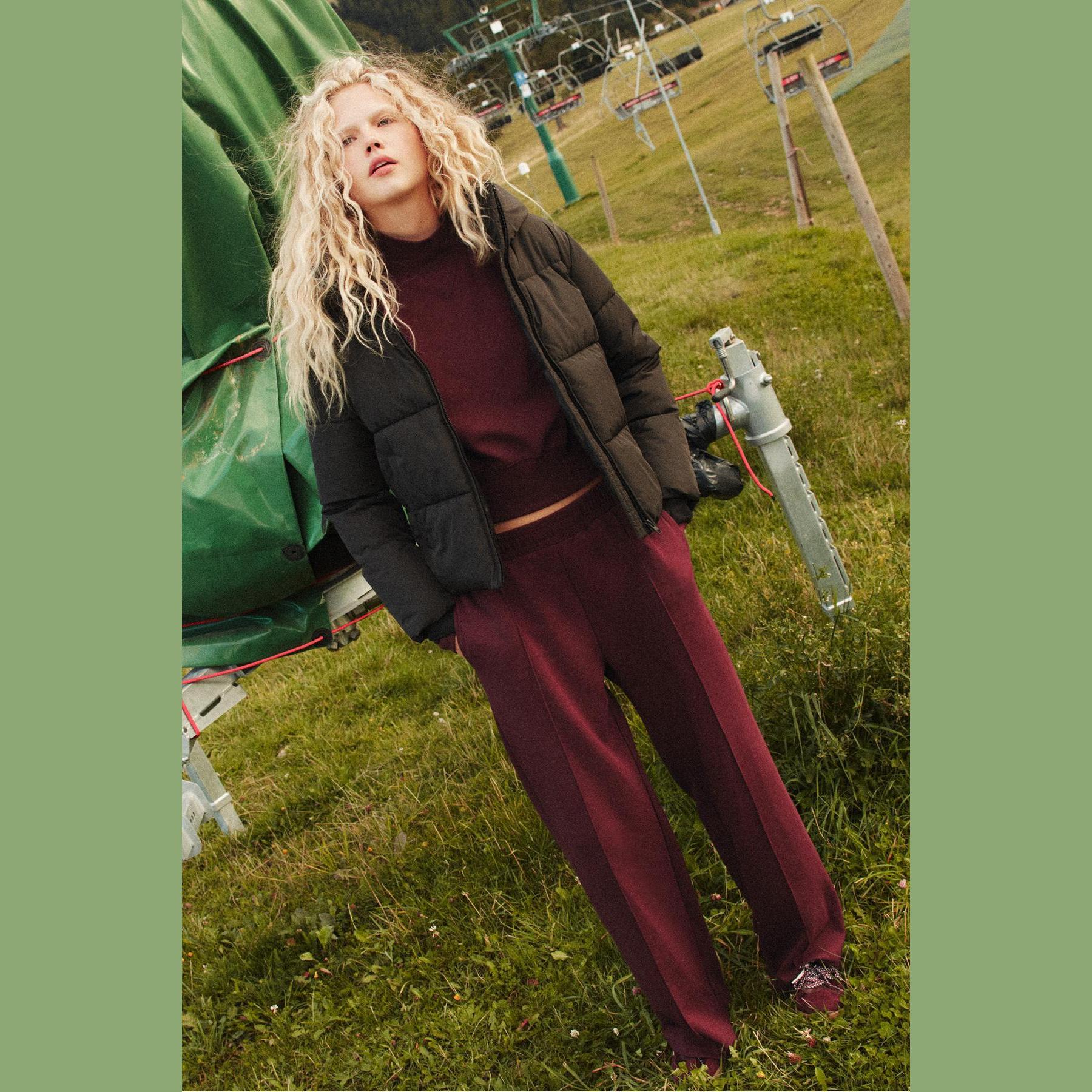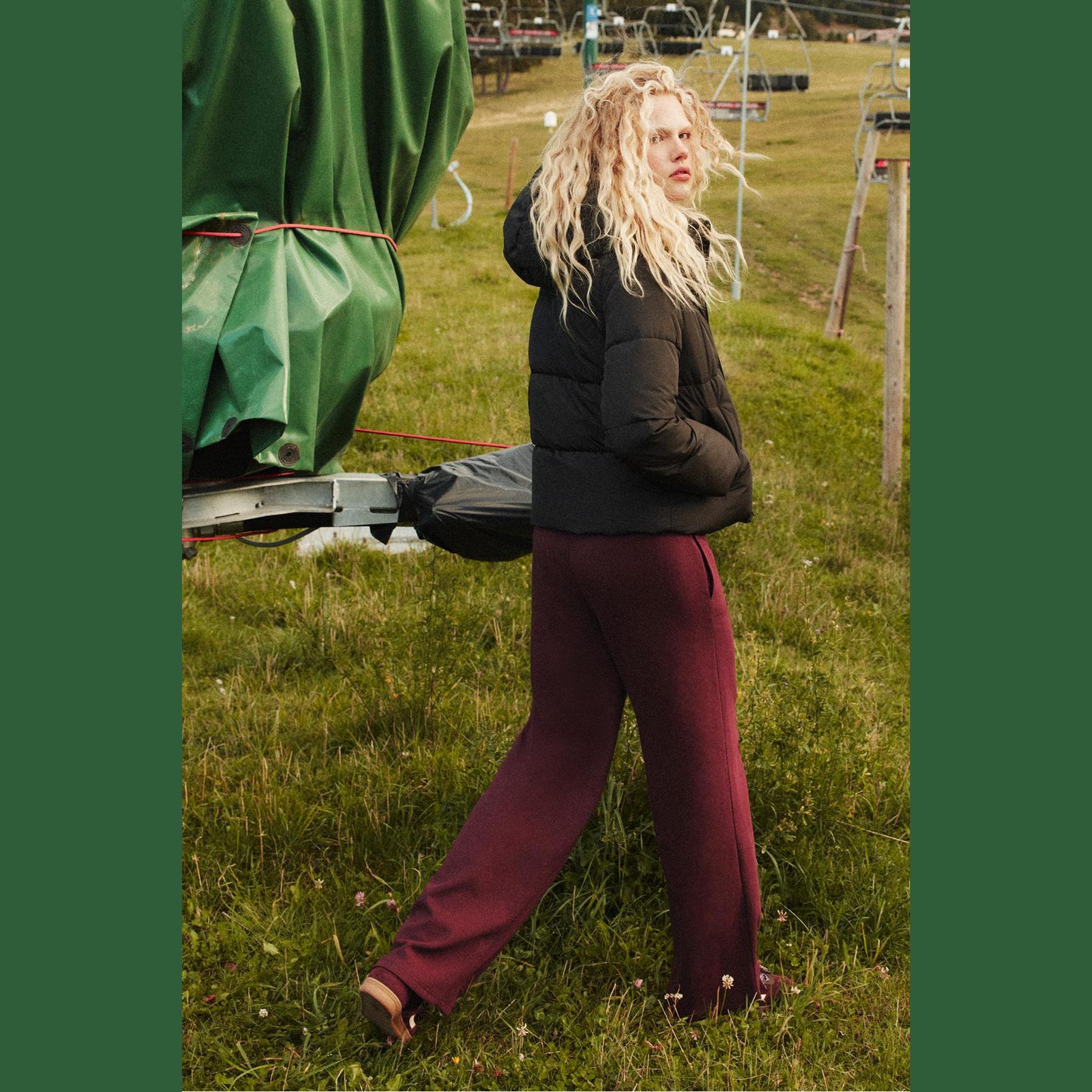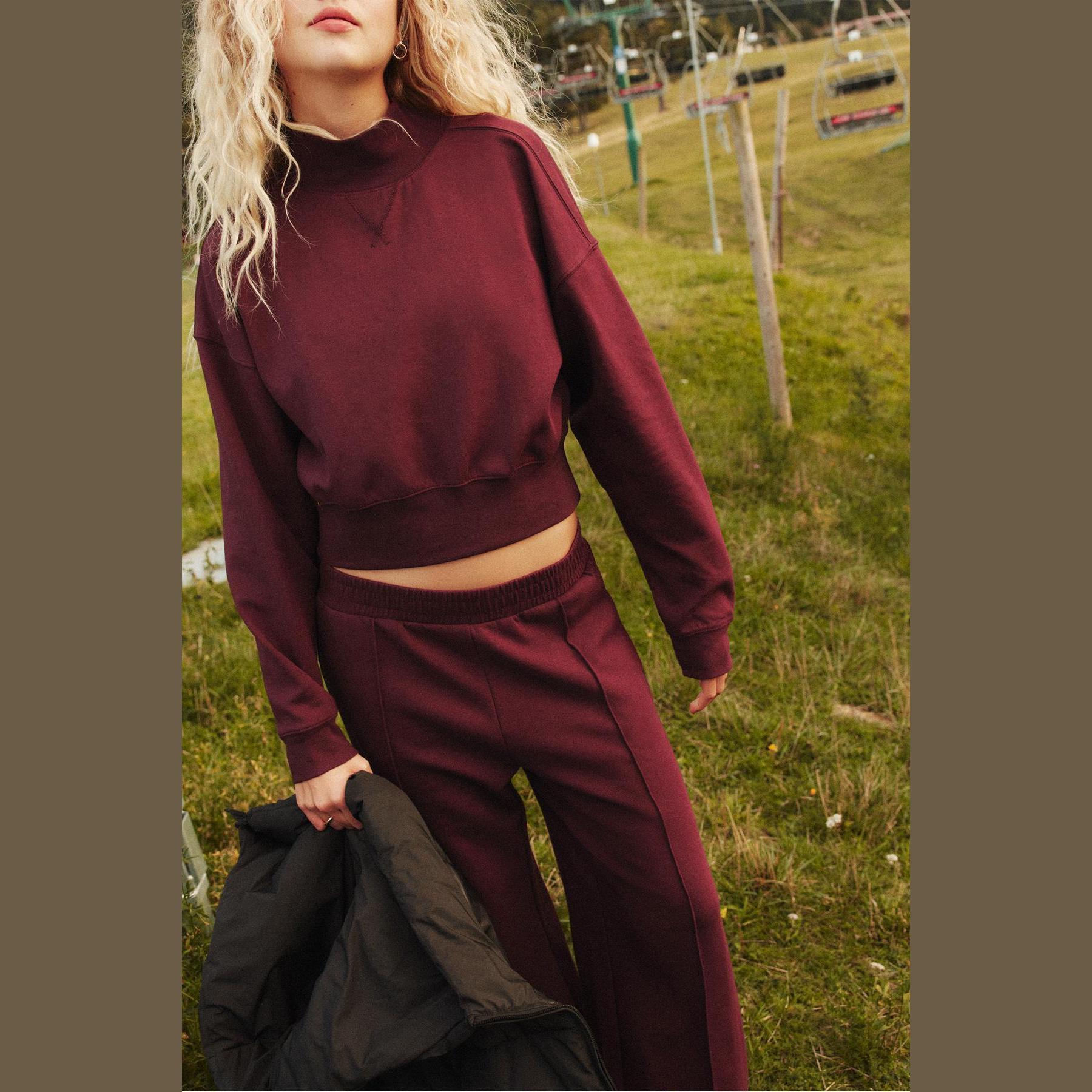 بنطال عملي من Stradivarius بلون بنفسجي، مصنوع من خامة مرنة بتركيبة 82% قطن، 13% بوليستر، 5% إيلاستان، يتميز بقصة Jogger واسعة، خصر متوسط بخصر مطاطي ورباط داخلي قابل للتعديل، أرجل طويلة ومستقيمة، تصميم سادة بملمس مغسول وتفاصيل خياطة أمامية، مزود بجيبين جانبيين، بدون بطانة، ملمس داخلي ناعم، مثالي للتنسيق مع تيشيرت أو سويت شيرت لإطلالة كاجوال مريحة.