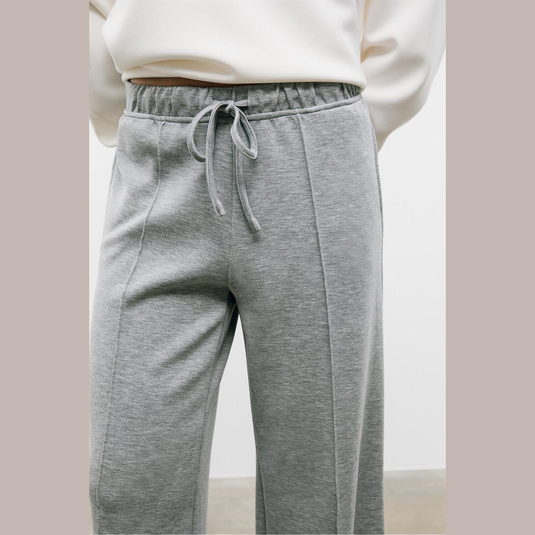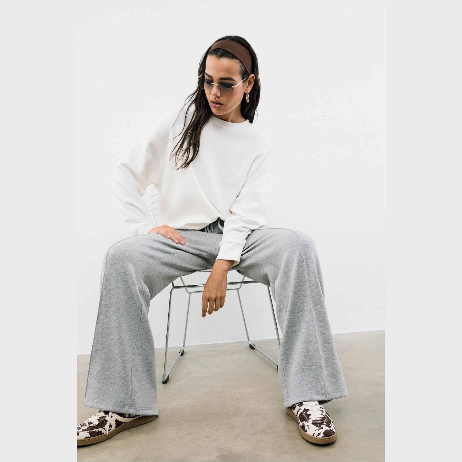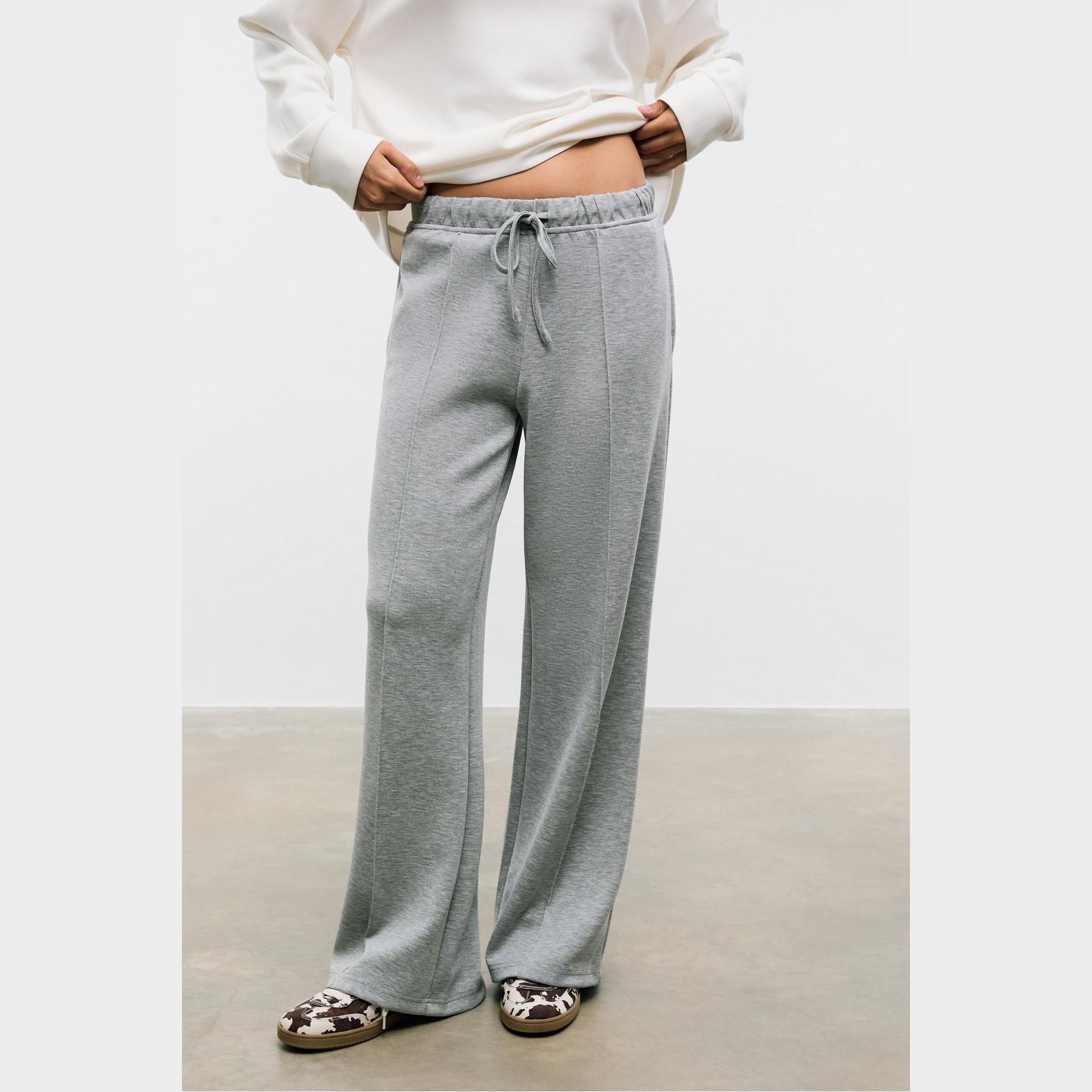 بنطال واسع بملمس ناعم وتفاصيل كسرات أمامية – رمادي فاتح من Stradivarius