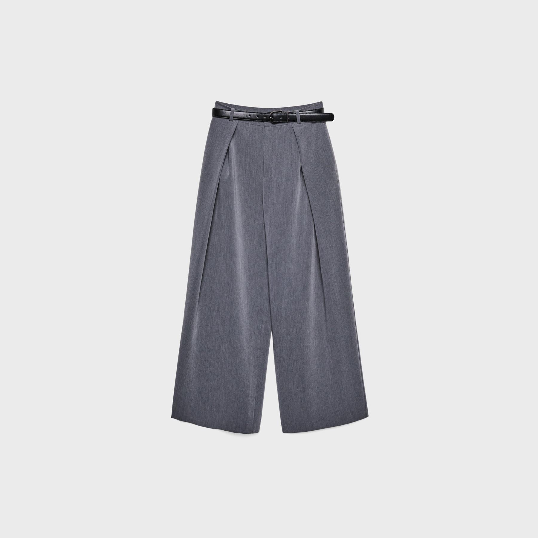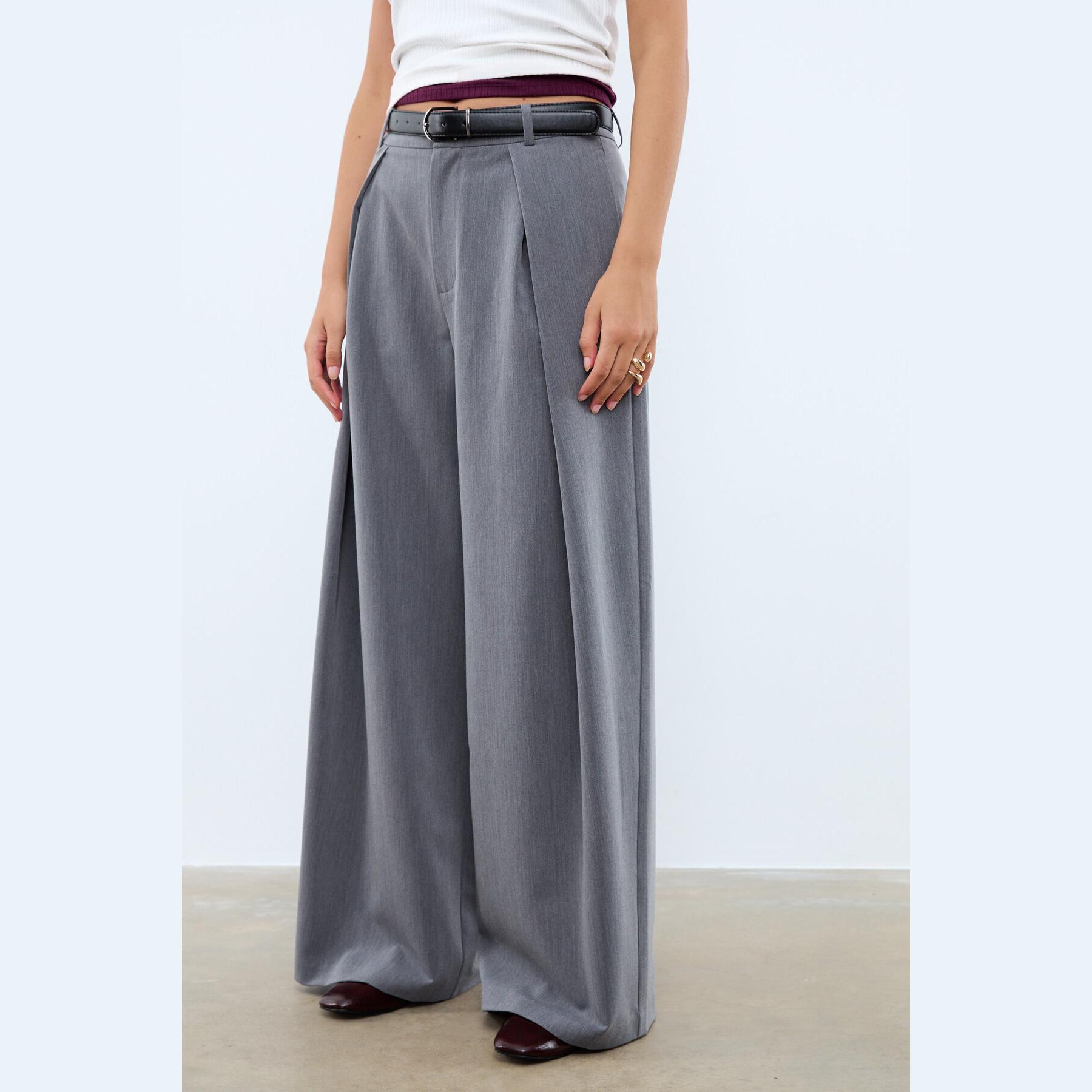 بنطال واسع بتفاصيل بنس ماكسي وحزام مرفق – رمادي غامق من Stradivarius