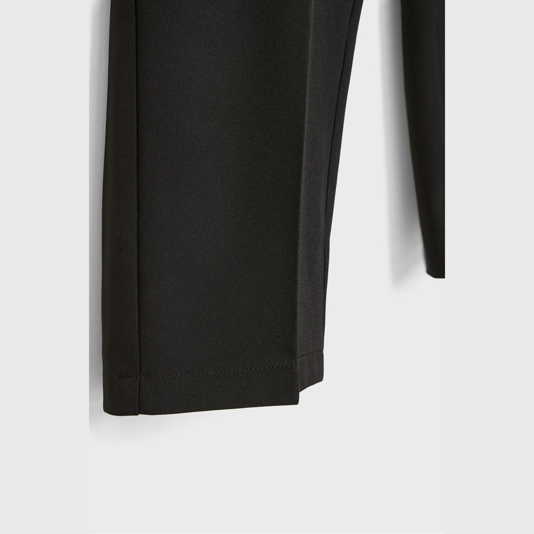 - الخصائص: جيبان جانبيان، جيوب خلفية بفتحة بيّلية، إغلاق متقاطع، بدون بطانة
