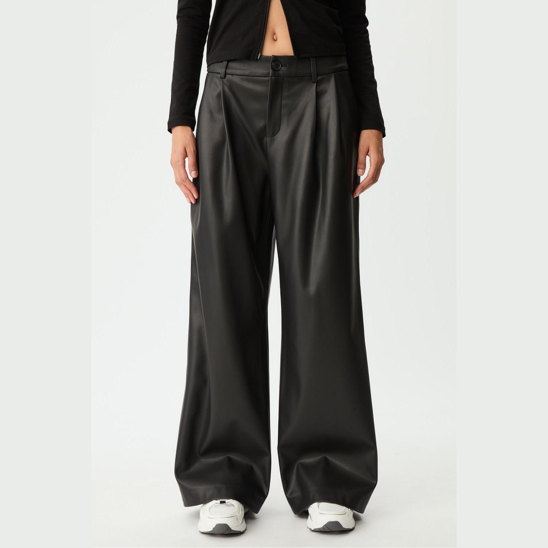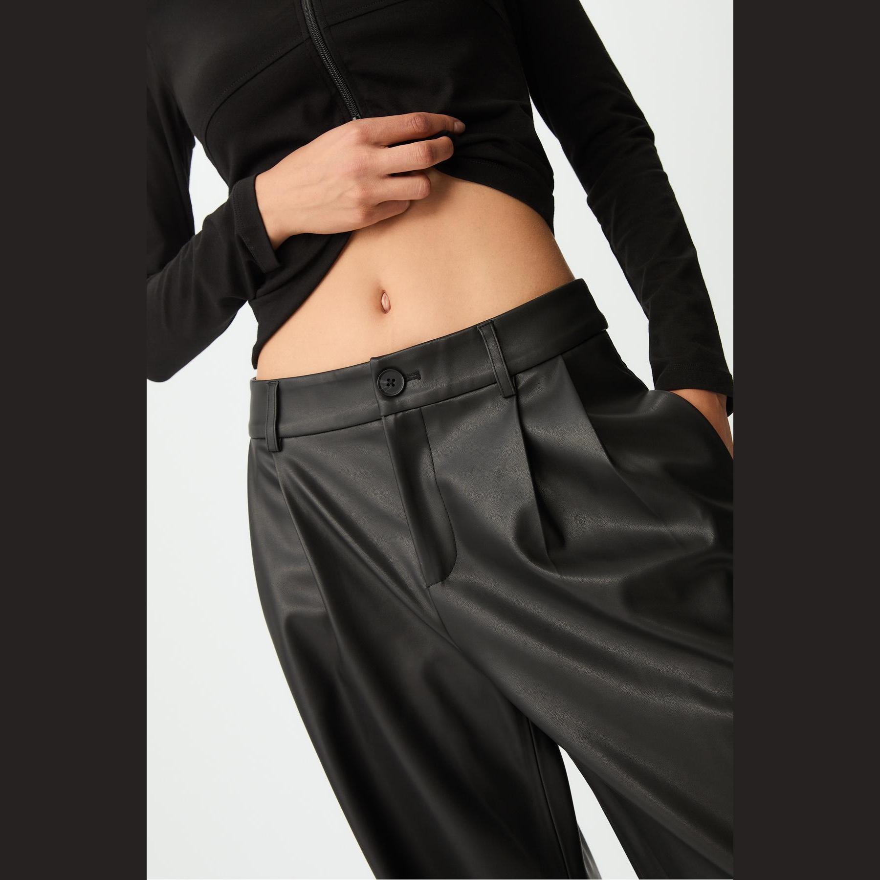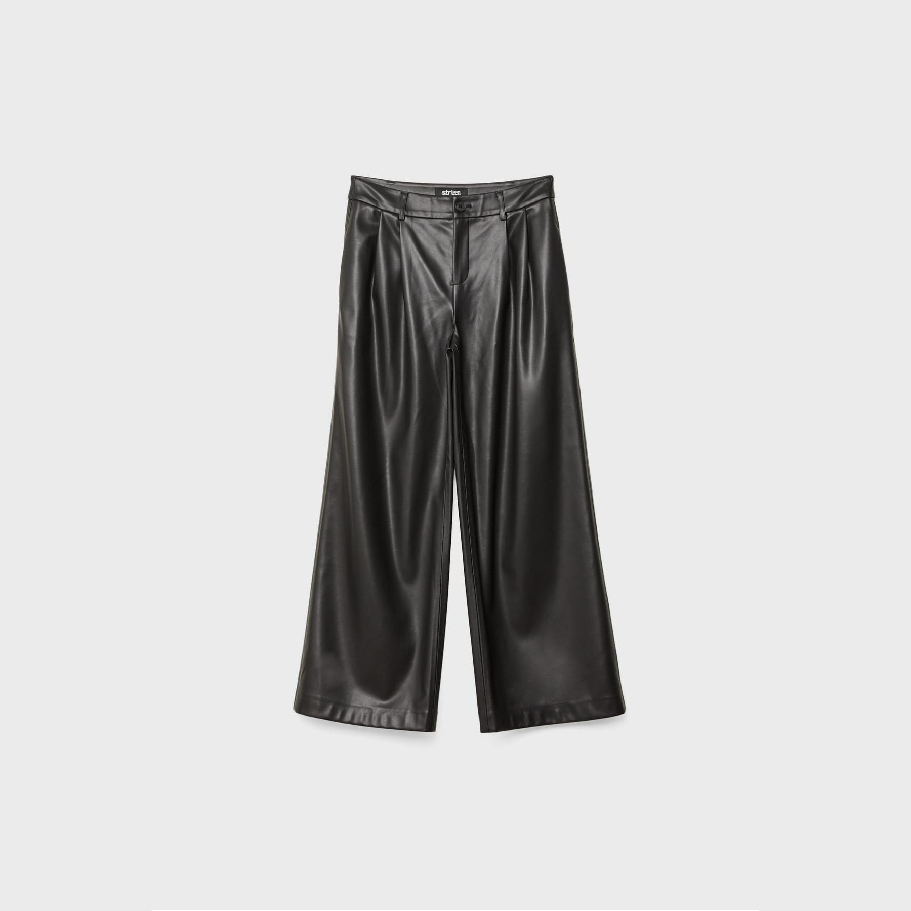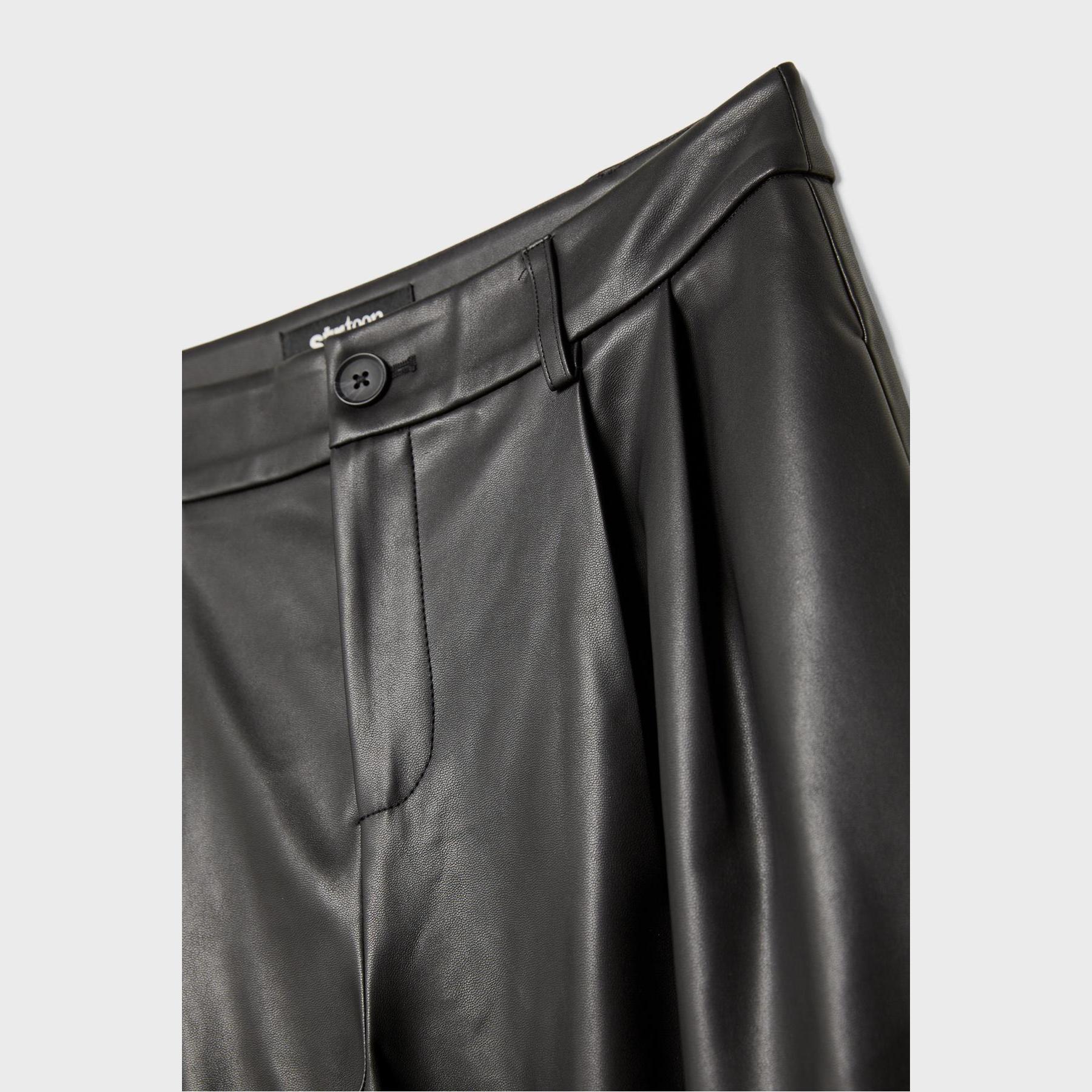 بنطال من الجلد الصناعي بتفاصيل بنس أمامية – أسود من Stradivarius