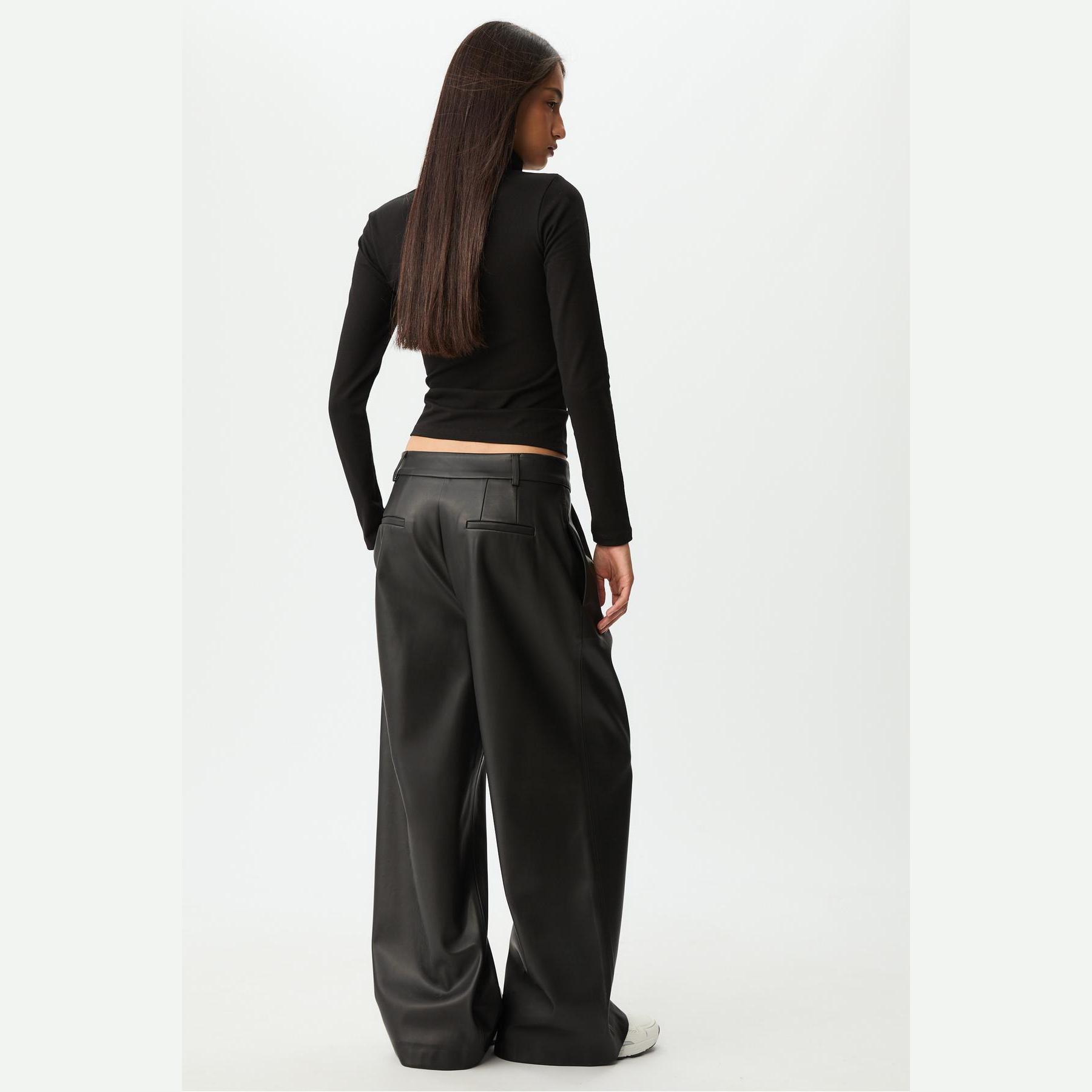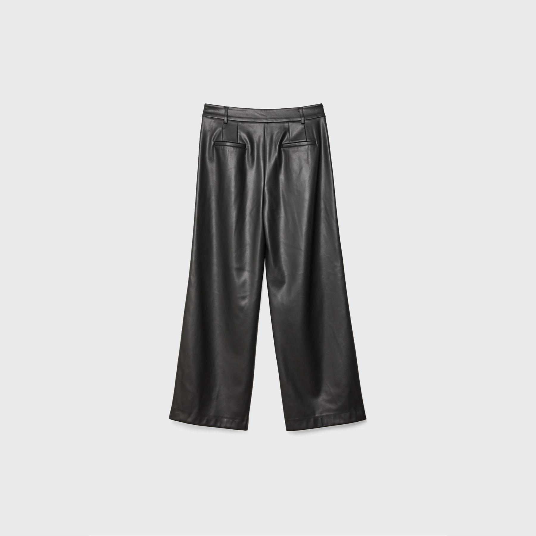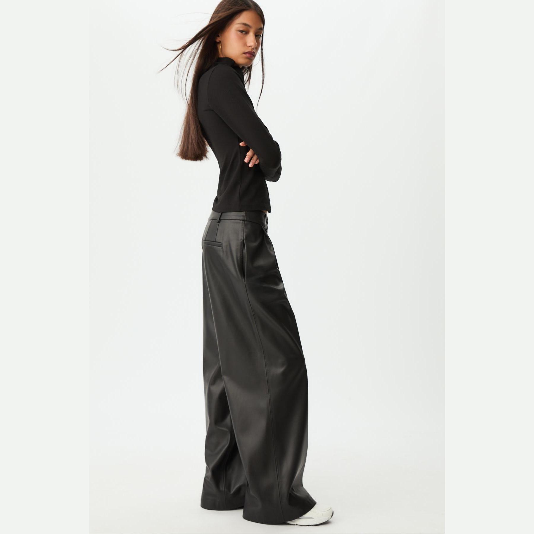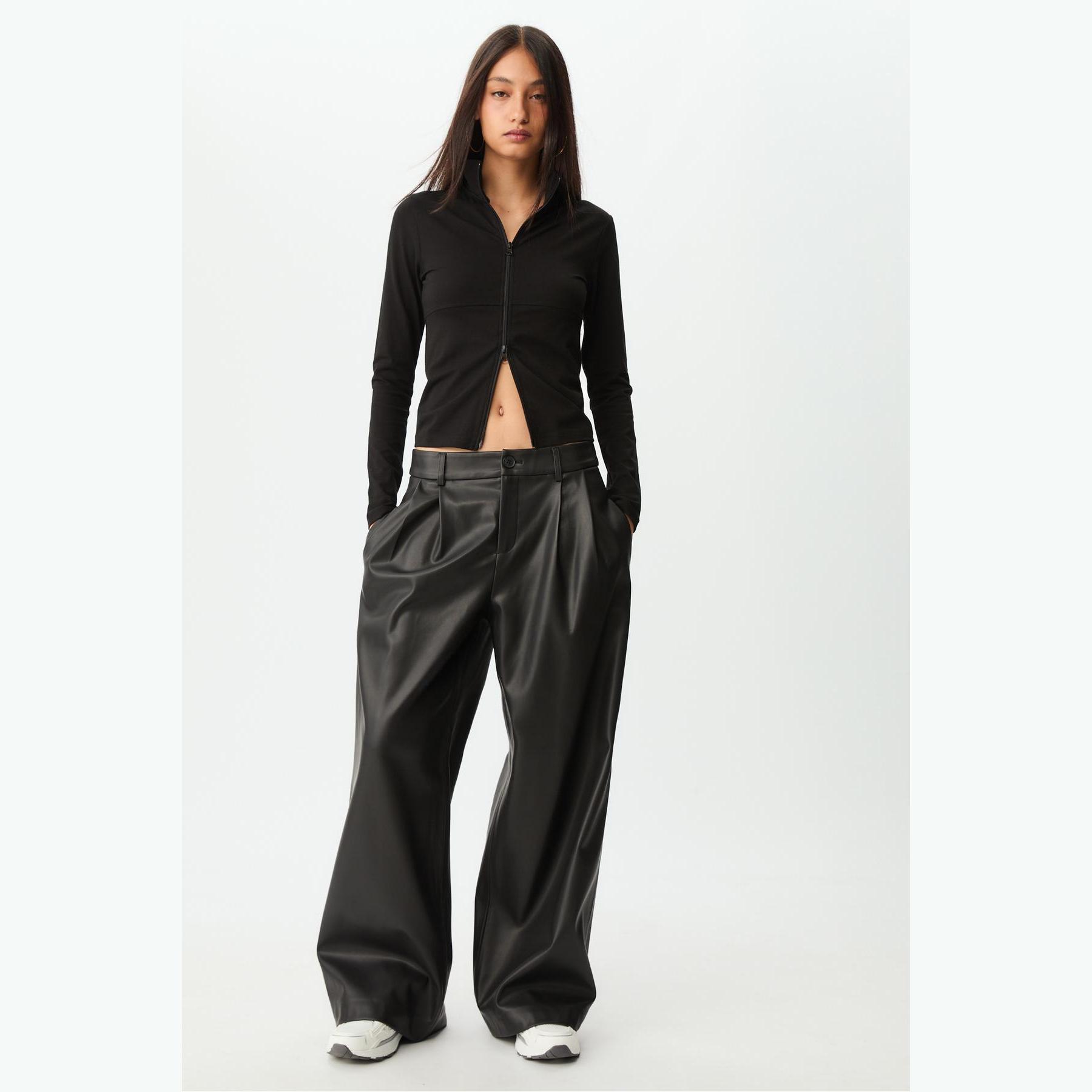 بنطال من الجلد الصناعي بتفاصيل بنس أمامية – أسود من Stradivarius