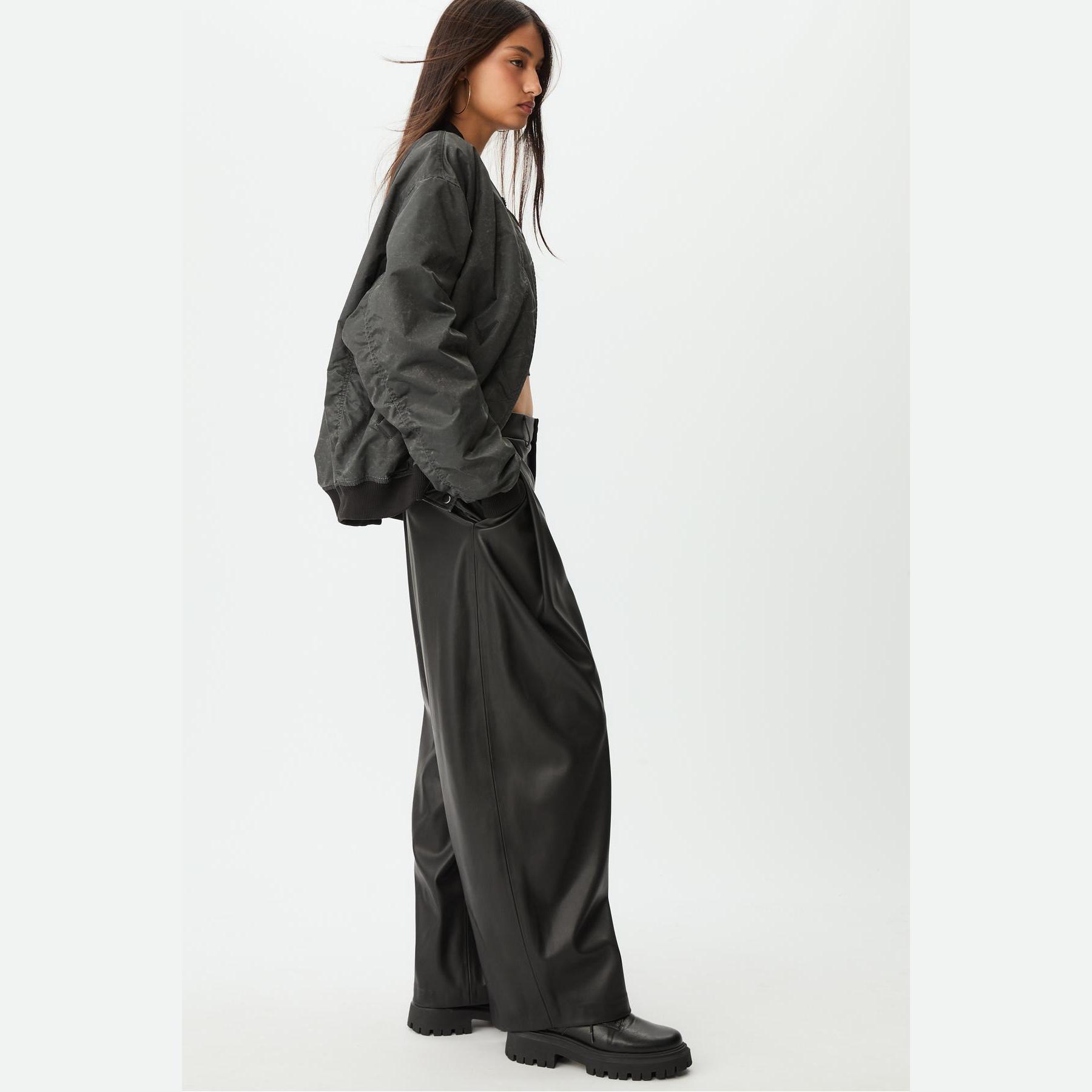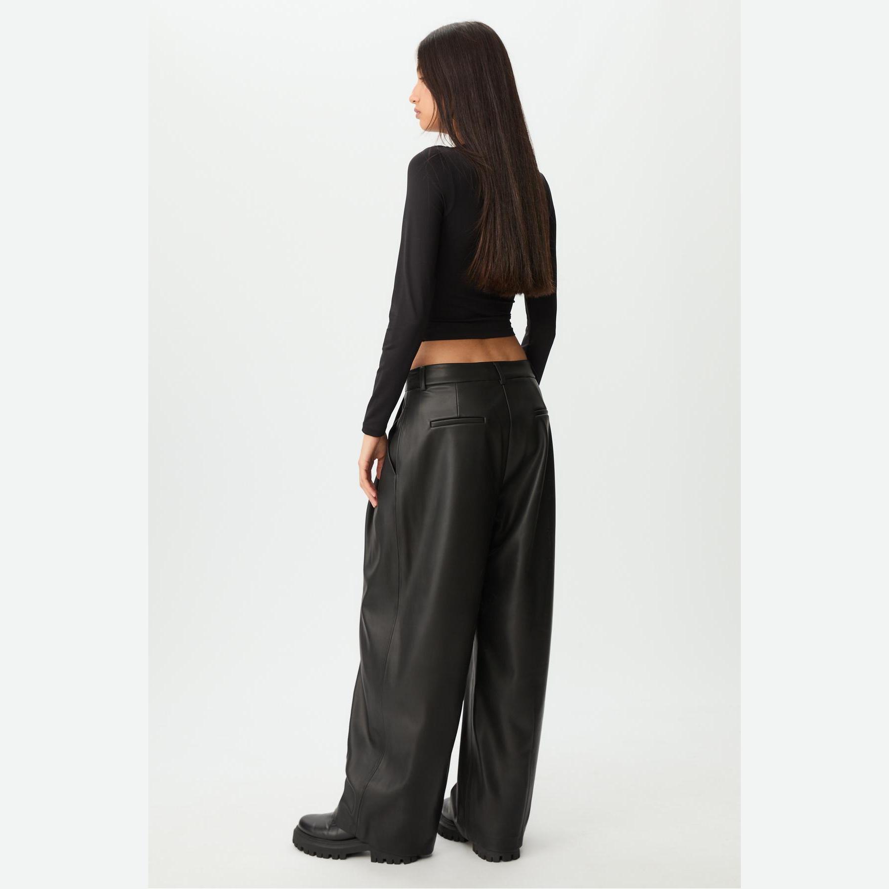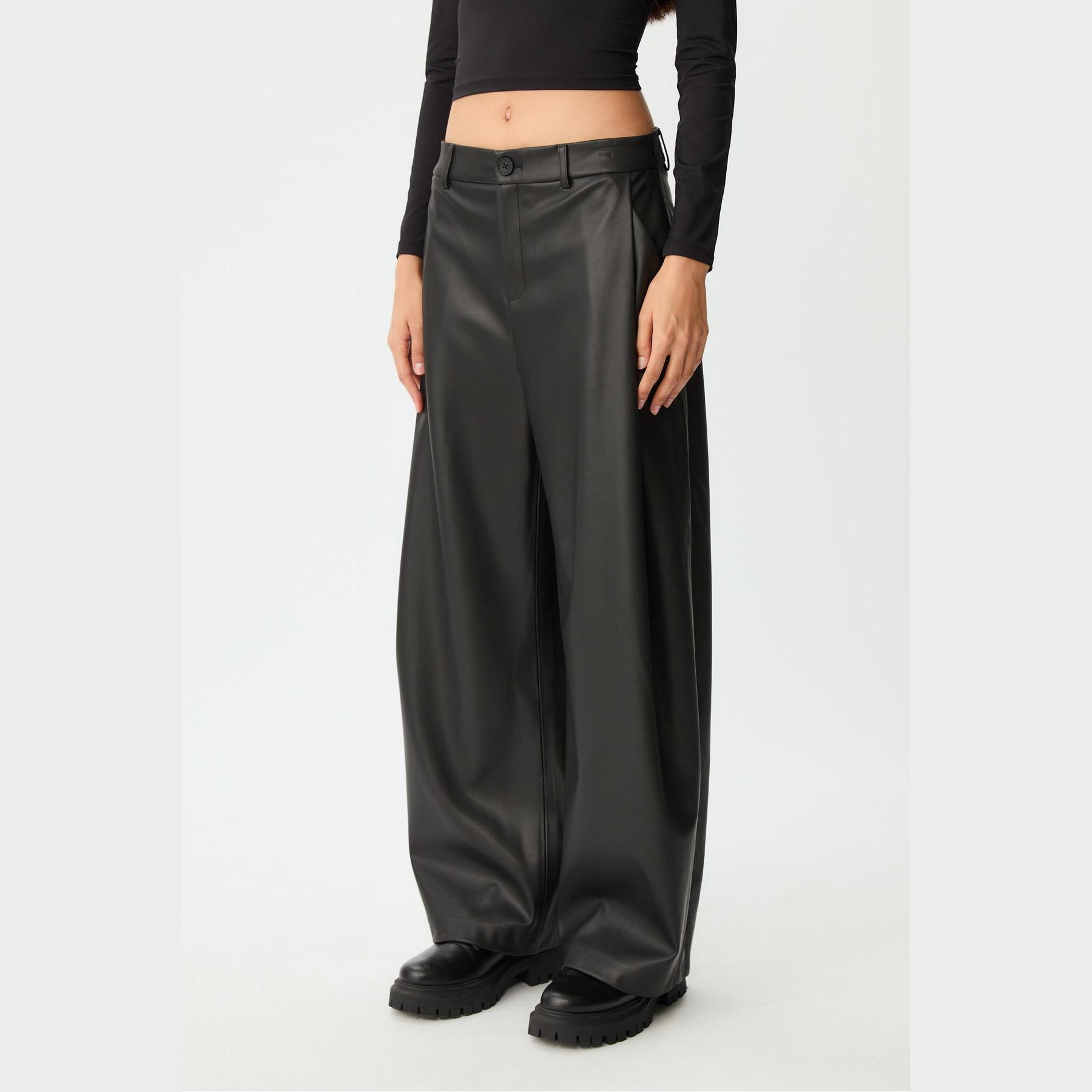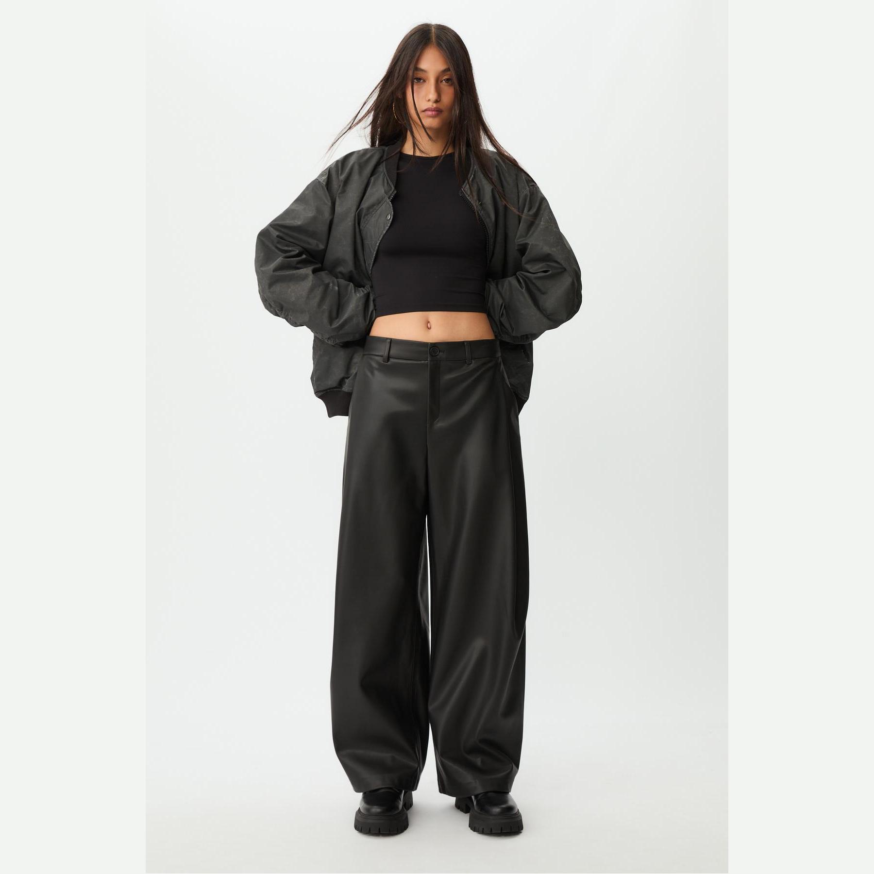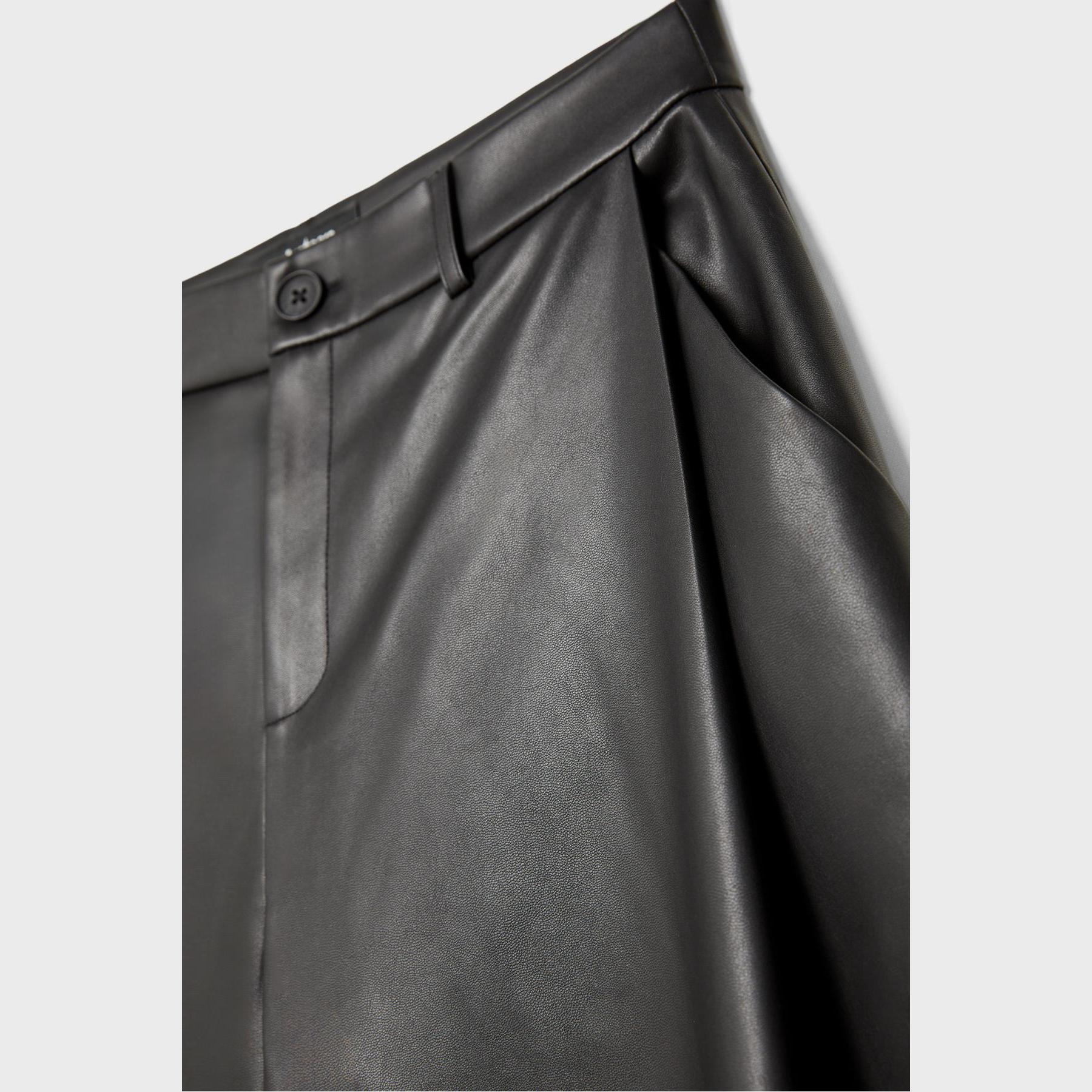 بنطال واسع من الجلد الصناعي بنقشة مربعات – أسود من Stradivarius