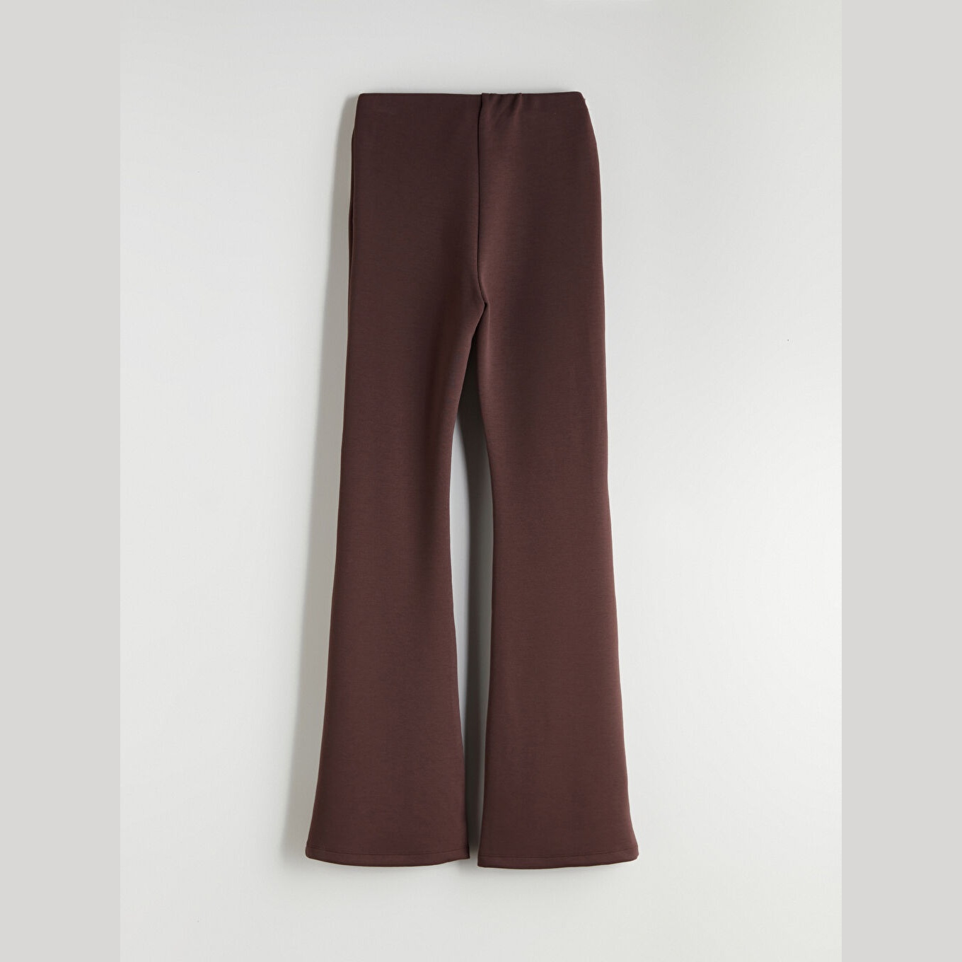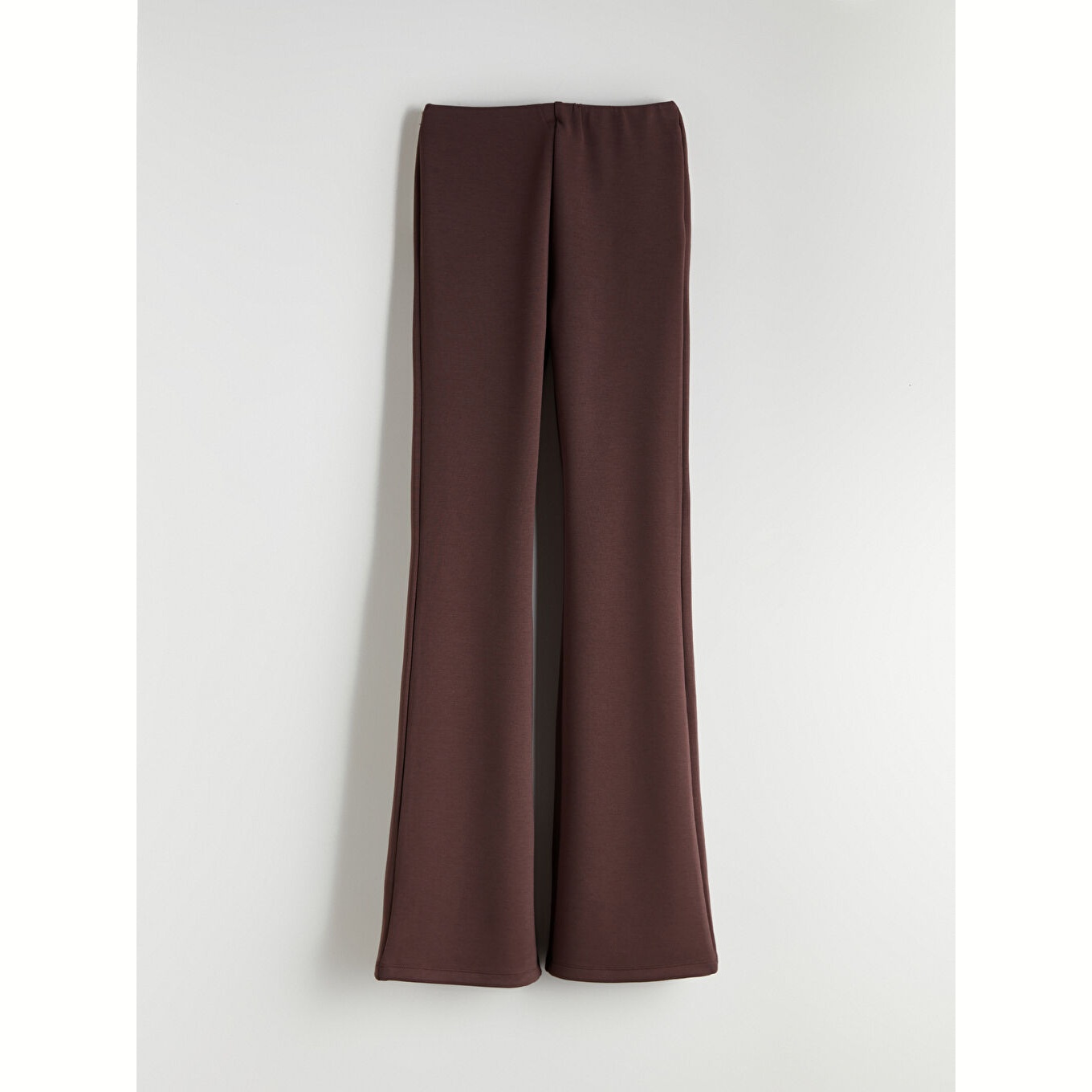 بنطال عملي بلون بني سادة بتصميم Slim Fit – قصة ضيقة مع أرجل واسعة من الأسفل (قصة إسبانية) تضيف لمسة أنيقة وانسيابية. يتميز بخصر مطاطي مريح يضمن ثباتًا دون ضغط، وخامة إنترلوك مرنة بتركيبة %77 بوليستر، %17 فيسكوز، %6 إيلاستان، بسماكة متوسطة إلى خفيفة، بطول كامل يصل إلى الكاحل وما بعده، مثالي للإطلالات اليومية أو العملية أو التنسيقات المحتشمة.