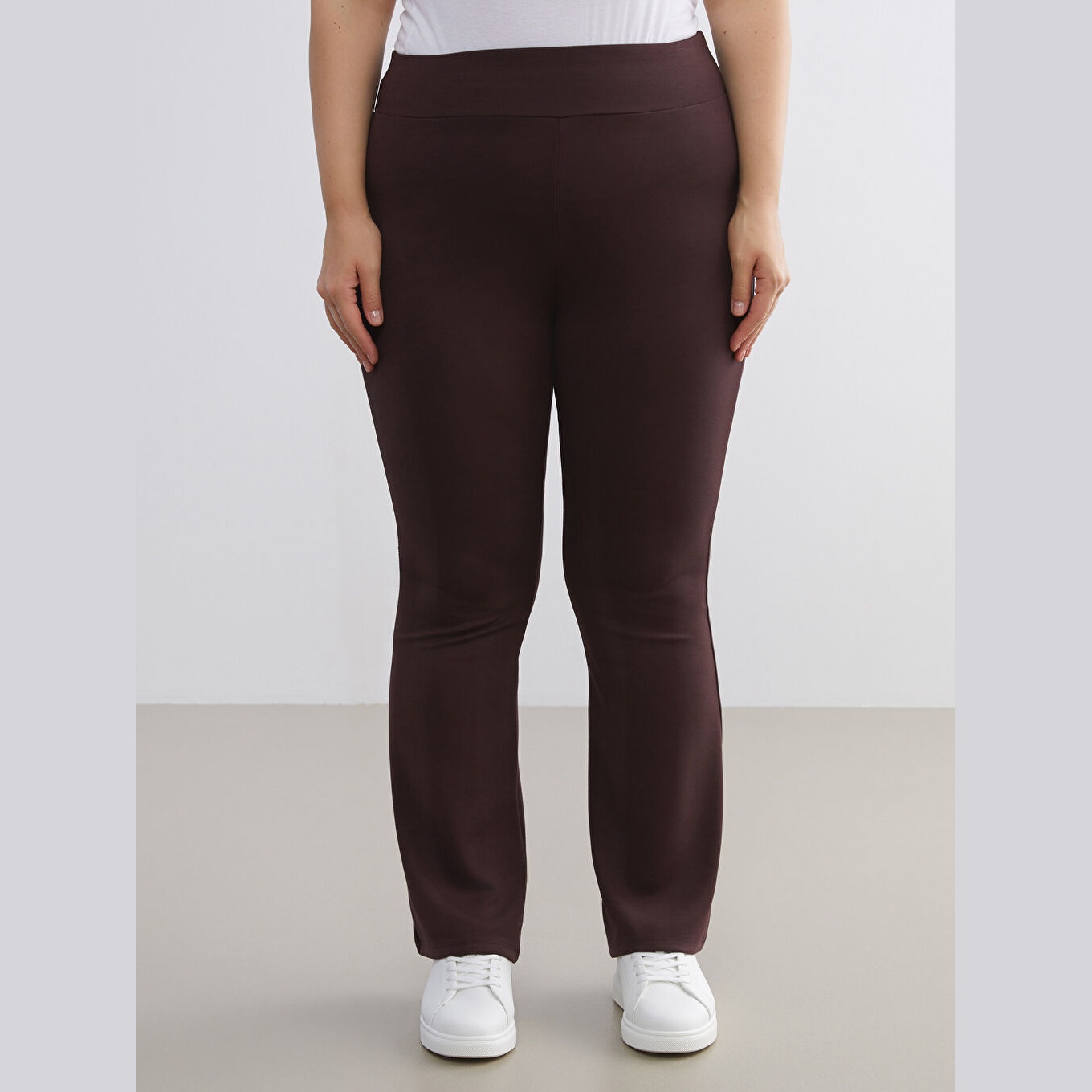 بنطال تَايْت عملي بلون بني سادة من مجموعة LCW Büyük Beden – الأزياء العملية للمقاسات الكبيرة، يتميز بقصة سوبر سكينّي (Super Skinny) ضيقة جدًا من الأعلى، مع أرجل واسعة من الأسفل (قصة إسبانية) تضيف لمسة أنثوية أنيقة. مصنوع من خامة دالغيچ متماسكة ومرنة بتركيبة %51 فيسكوز، %45 بوليستر، %4 إيلاستان، بسماكة متوسطة، بطول كامل يصل إلى الكاحل وما بعده، مع خصر مطاطي مريح يمنحك ثباتًا دون ضغط، مثالي للإطلالات اليومية أو العملية.