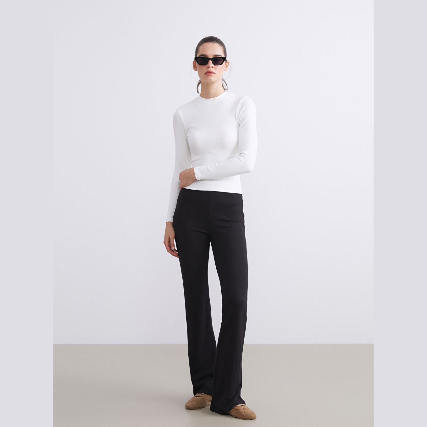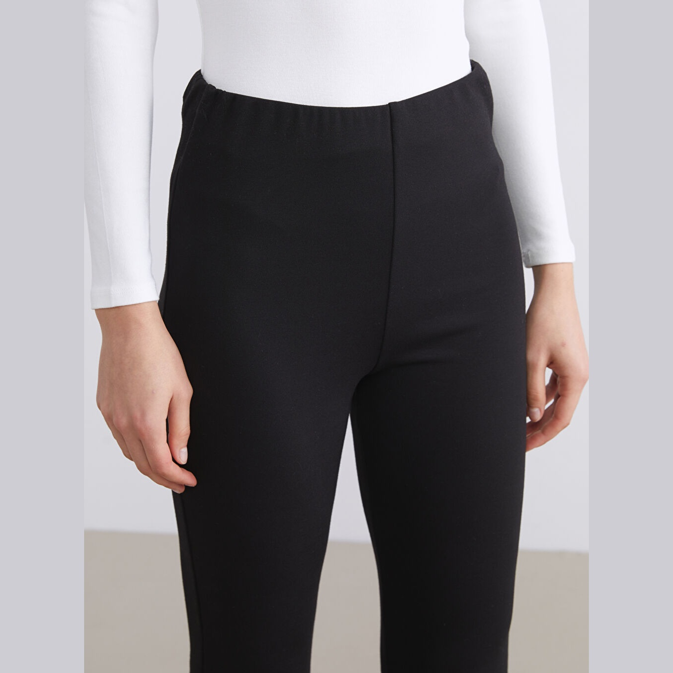 بنطال تَايْت عملي بلون أسود سادة من مجموعة LCW Vision – الأناقة اليومية، يتميز بقصة Slim Fit – ضيقة من الأعلى وواسعة من الأسفل (إسبانية) تضيف لمسة أنثوية أنيقة. الخصر مطاطي مريح يمنحك ثباتًا دون ضغط، والخامة إنترلوك مرنة بتركيبة متوازنة من %48 فيسكوز، %48 بوليستر، %4 إيلاستان، بسماكة متوسطة، بطول كامل يصل إلى الكاحل وما بعده، مثالي للإطلالات اليومية أو العملية.