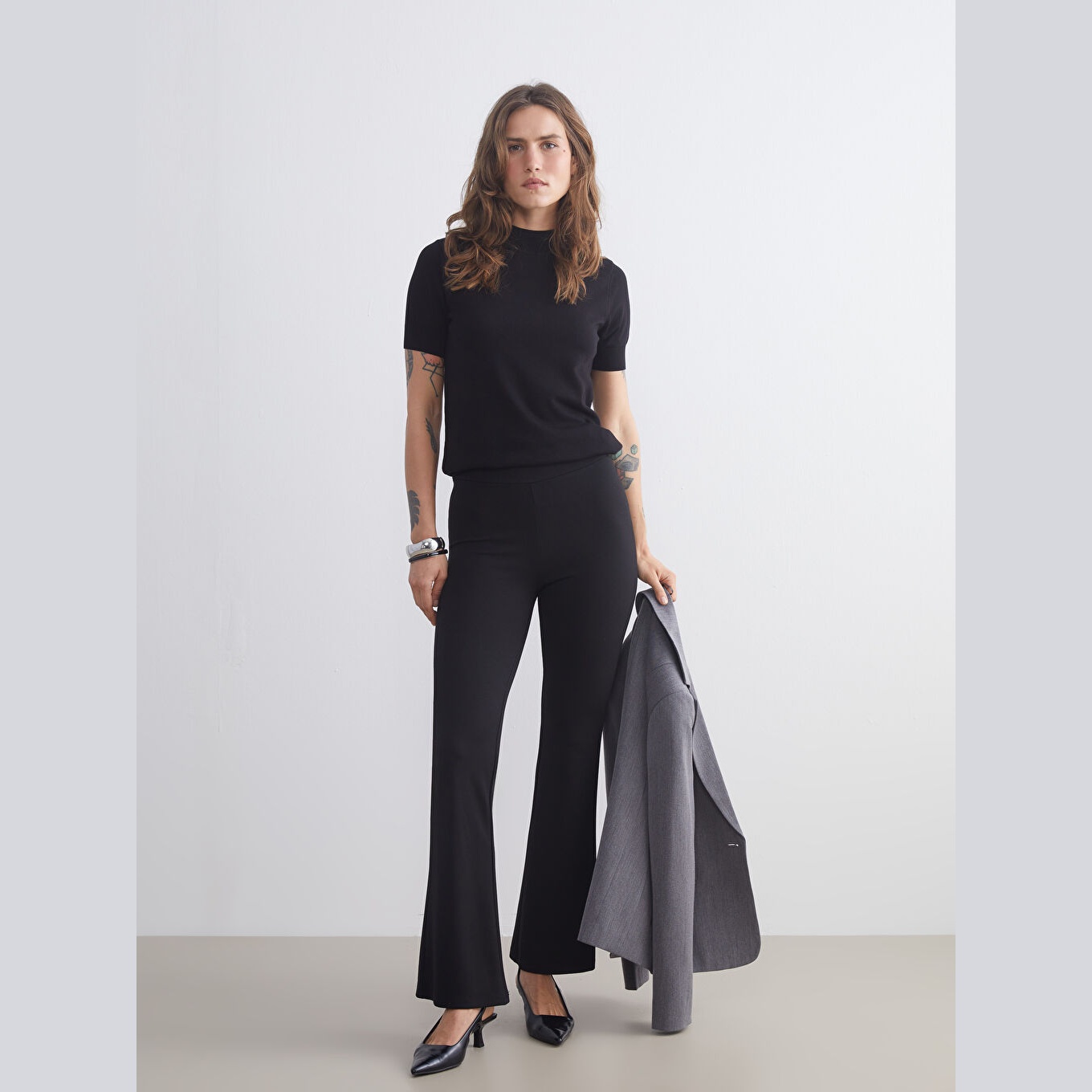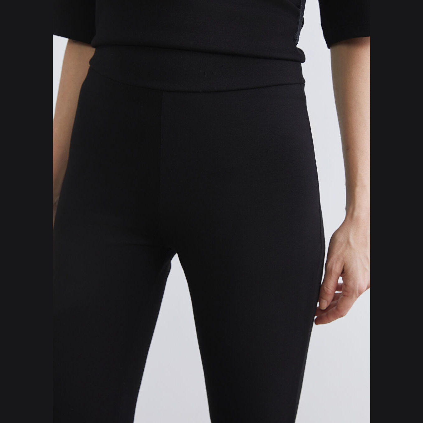تَايْت نسائي بخصر مطاطي وقصة إسبانية – أسود بقماش دالغيچ (قصة ضيقة جدًا، خامة مرنة، تصميم مريح، بطول كامل)