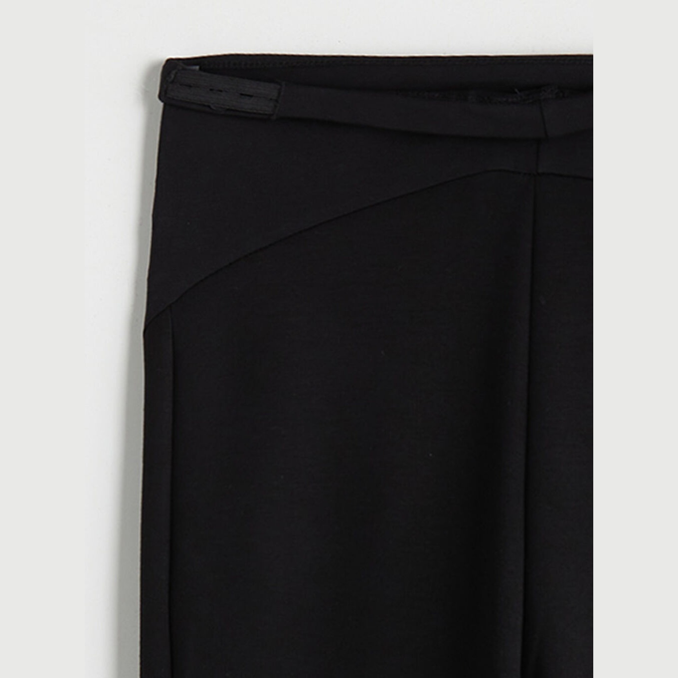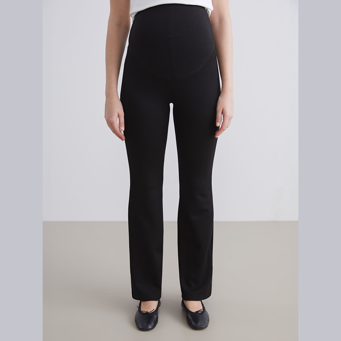 بنطال حملي عملي بلون أسود سادة من مجموعة LCWAIKIKI Maternity – للراحة خلال الحمل وما بعده، يتميز بقصة سوبر سكينّي (Super Skinny) ضيقة جدًا من الأعلى، مع أرجل واسعة من الأسفل (قصة إسبانية) تضيف لمسة أنثوية أنيقة. الخصر مطاطي مريح مصمم ليتكيف مع شكل الجسم خلال الحمل، والخامة إنترلوك مرنة بتركيبة مزدوجة:
