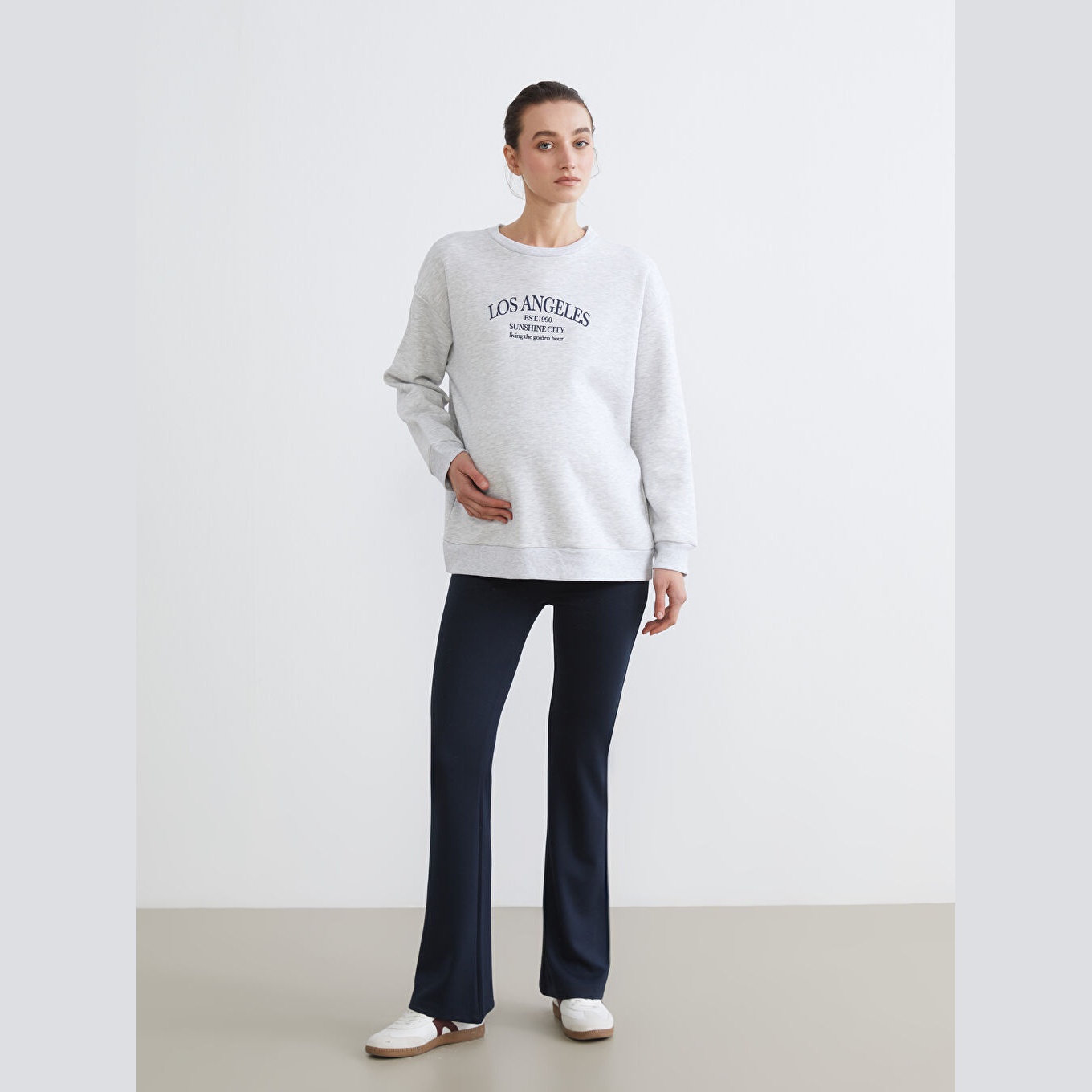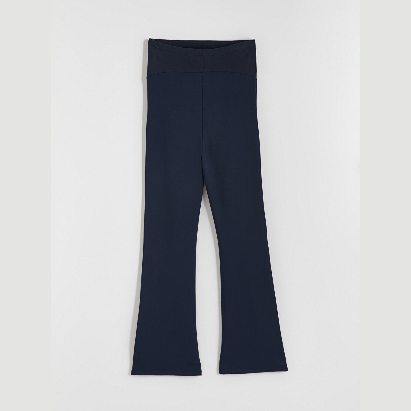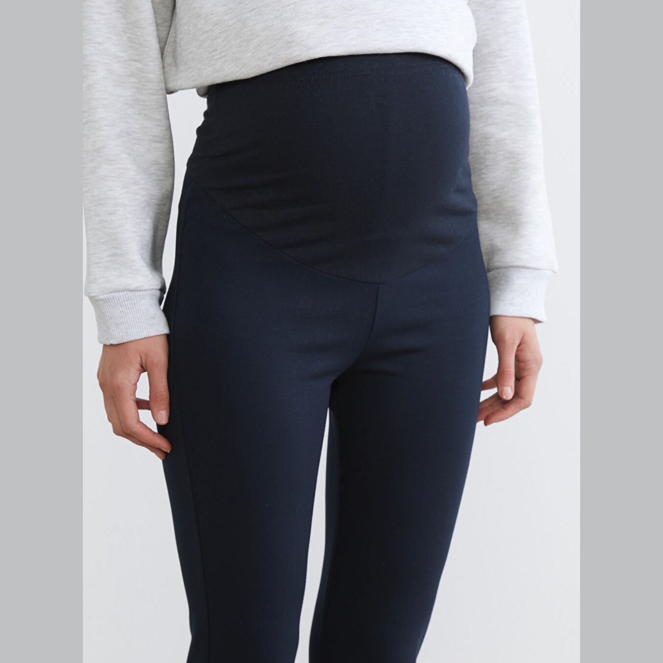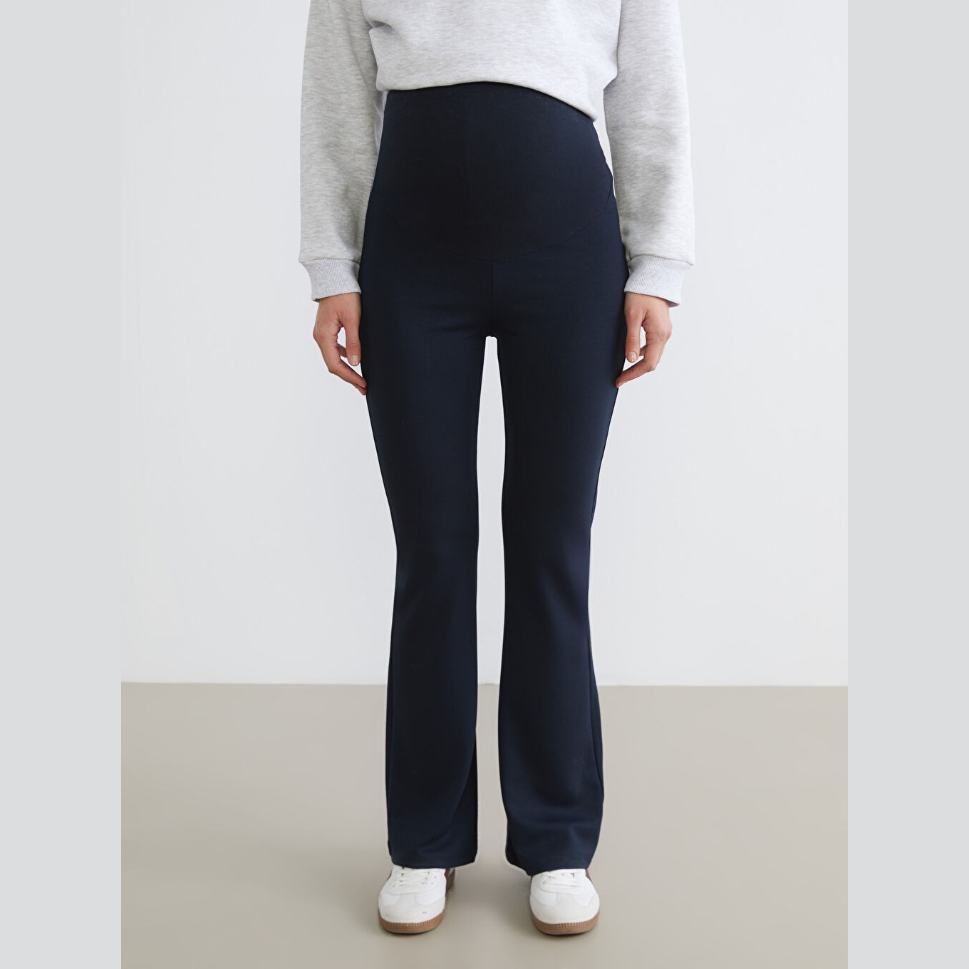 بنطال حملي بلون كحلي سادة من مجموعة LCWAIKIKI Maternity – للراحة خلال الحمل وما بعده، يتميز بقصة سوبر سكينّي (Super Skinny) ضيقة جدًا من الأعلى، مع أرجل واسعة من الأسفل (قصة إسبانية – Flare Silhouette) تضيف لمسة أنثوية أنيقة. الخصر مرتفع ومصمم خصيصًا لتوفير دعم للبطن، والخامة إنترلوك مرنة بتركيبة مزدوجة: