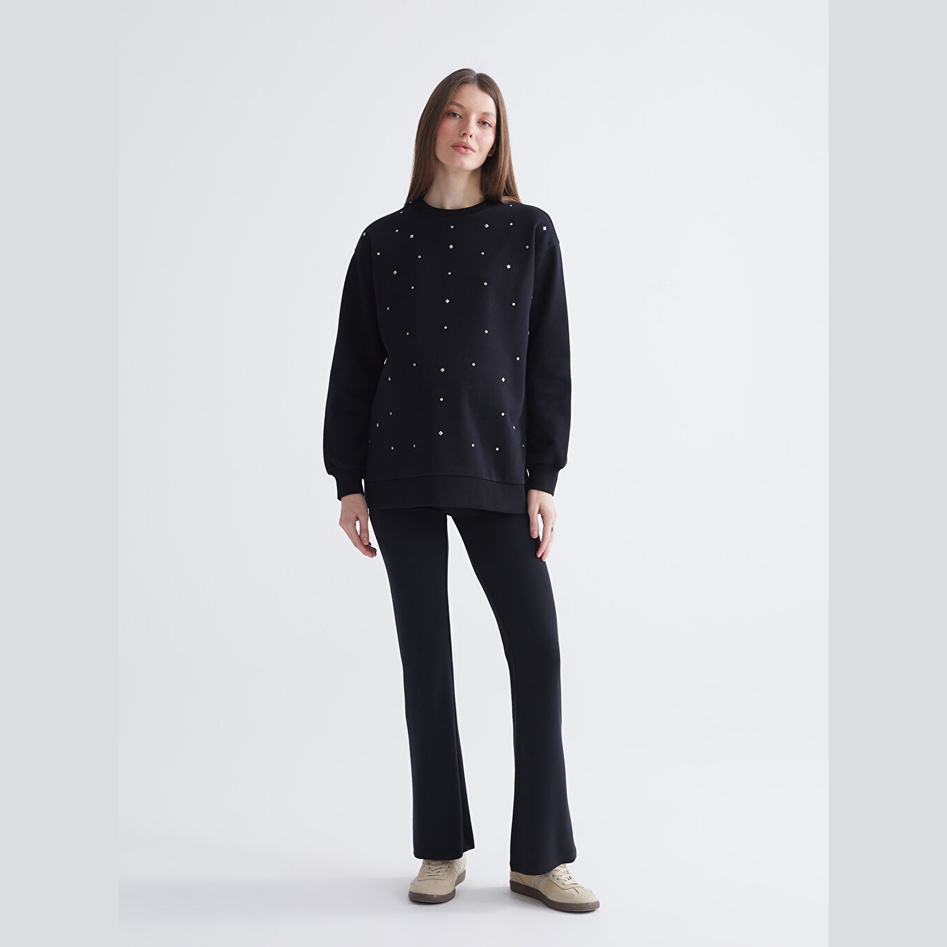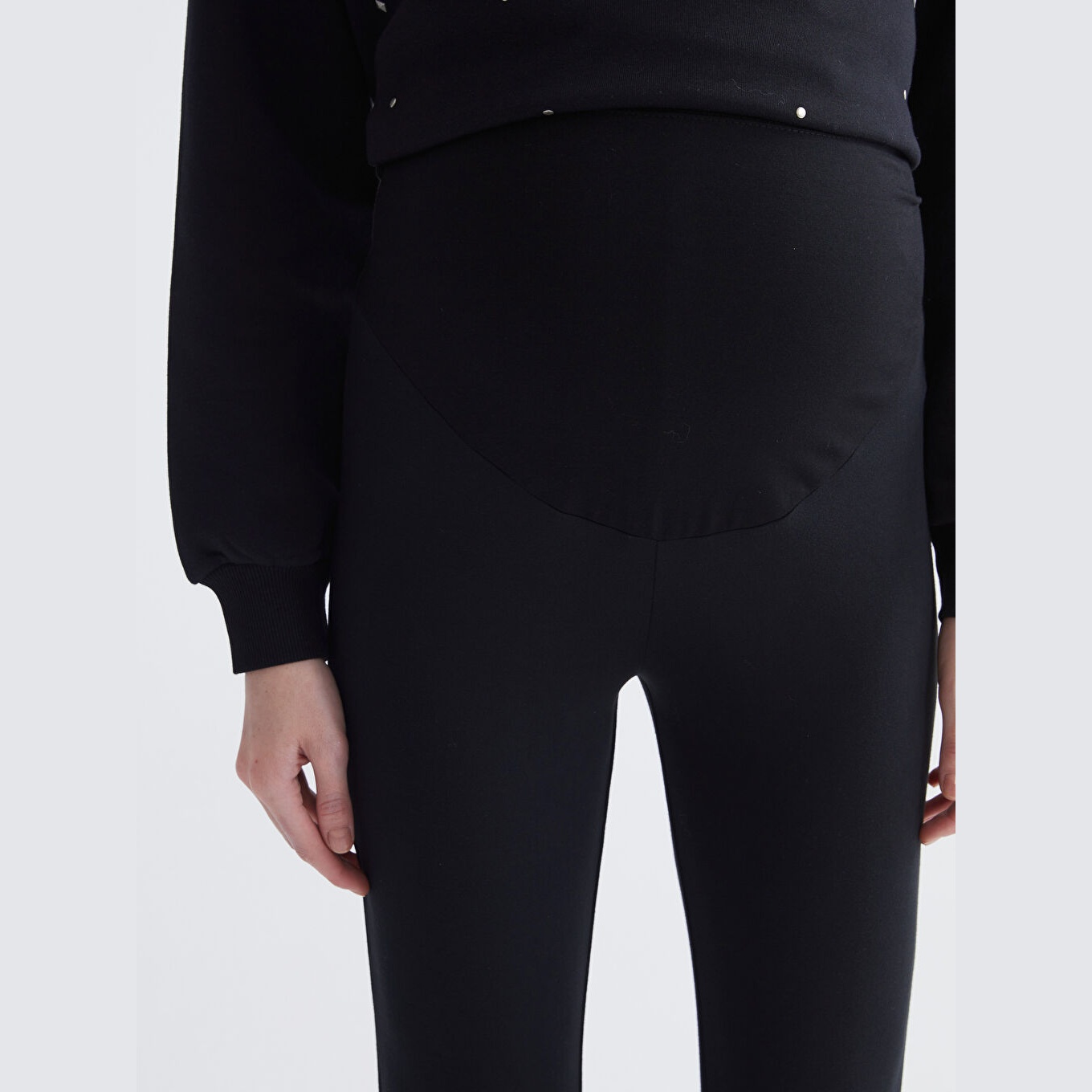 بنطال حملي بلون أسود سادة من مجموعة LCWAIKIKI Maternity – للراحة خلال الحمل، يتميز بقصة سوبر سكينّي (Super Skinny) ضيقة جدًا من الأعلى، مع أرجل واسعة من الأسفل (قصة إسبانية) تضيف لمسة أنثوية أنيقة. الخصر لوحي مرن مصمم خصيصًا لتوفير دعم للبطن خلال فترات الحمل، والخامة إنترلوك مرنة بتركيبة مزدوجة: