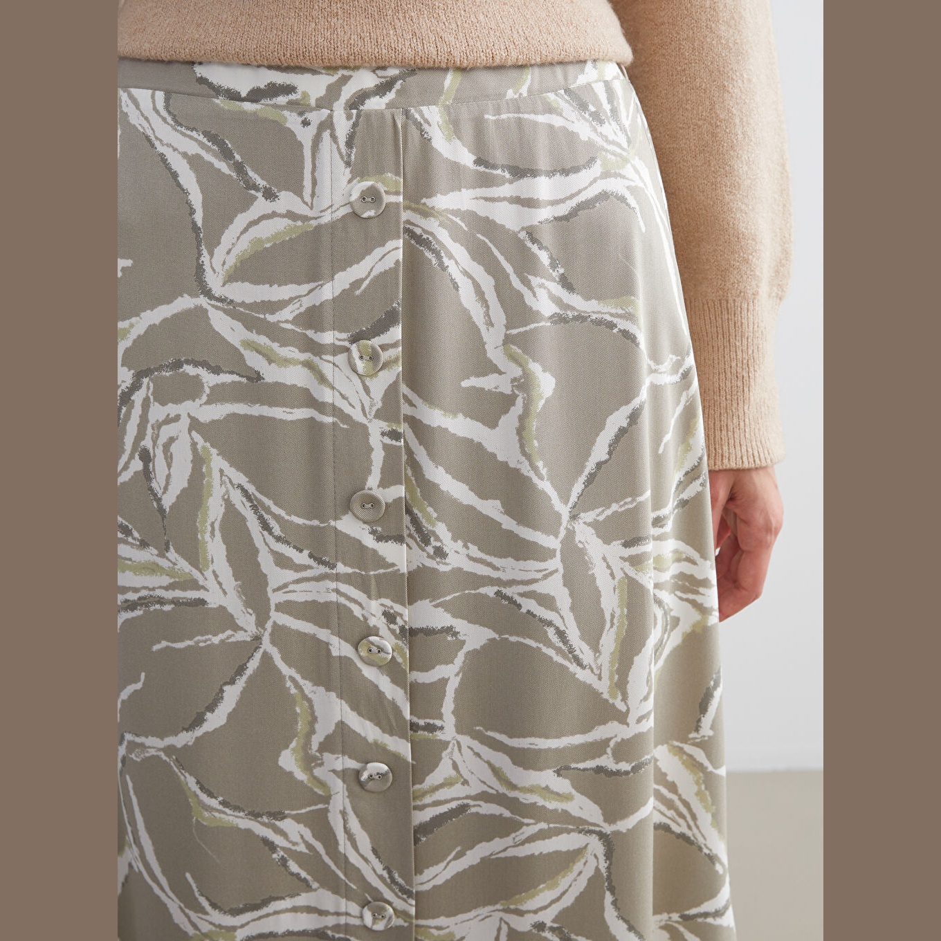 تنورة نسائية بخصر مطاطي وقصة A – أخضر مزخرف (قصة واسعة، تصميم طويل، خامة ناعمة، بدون بطانة)