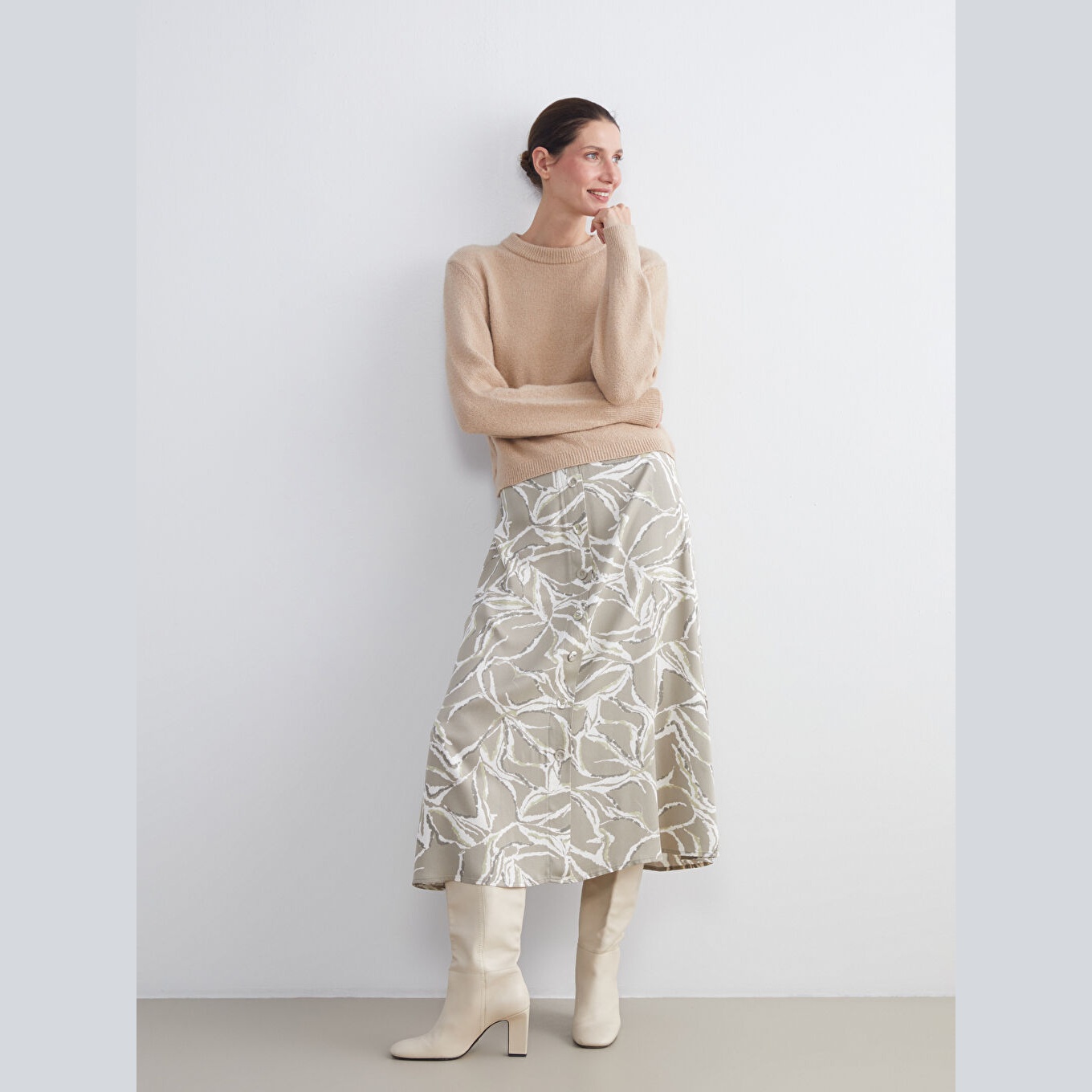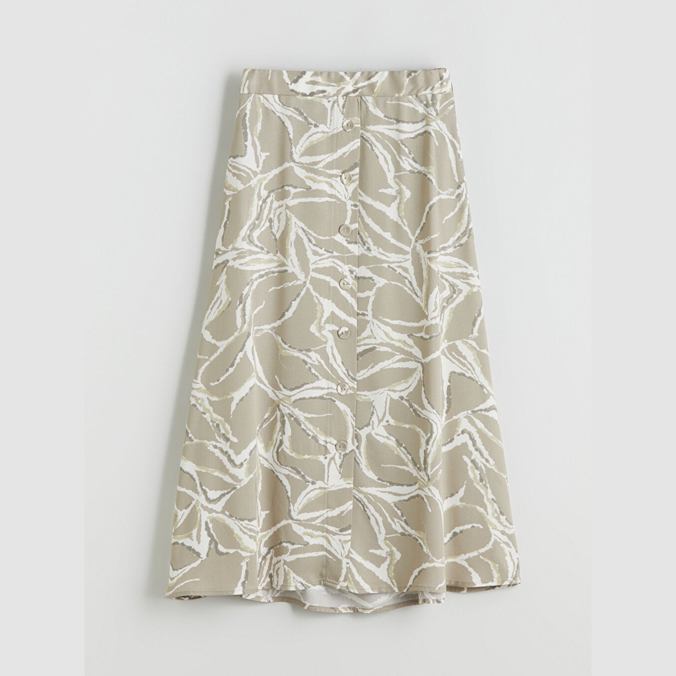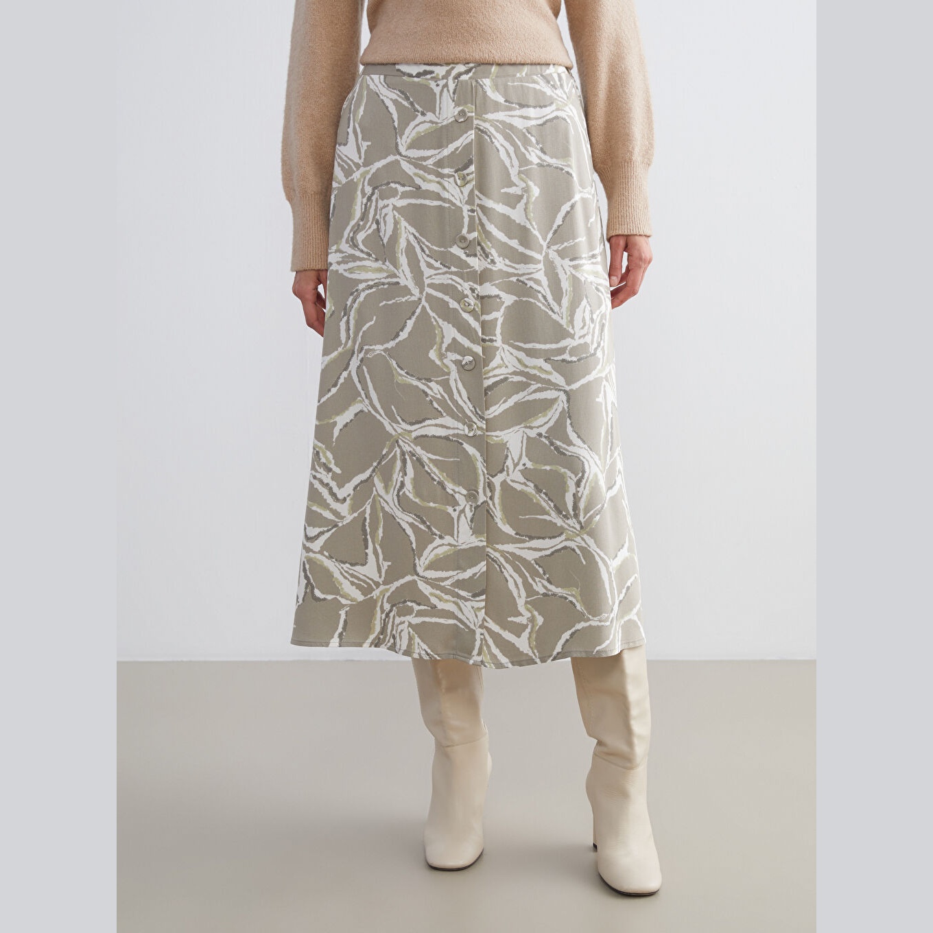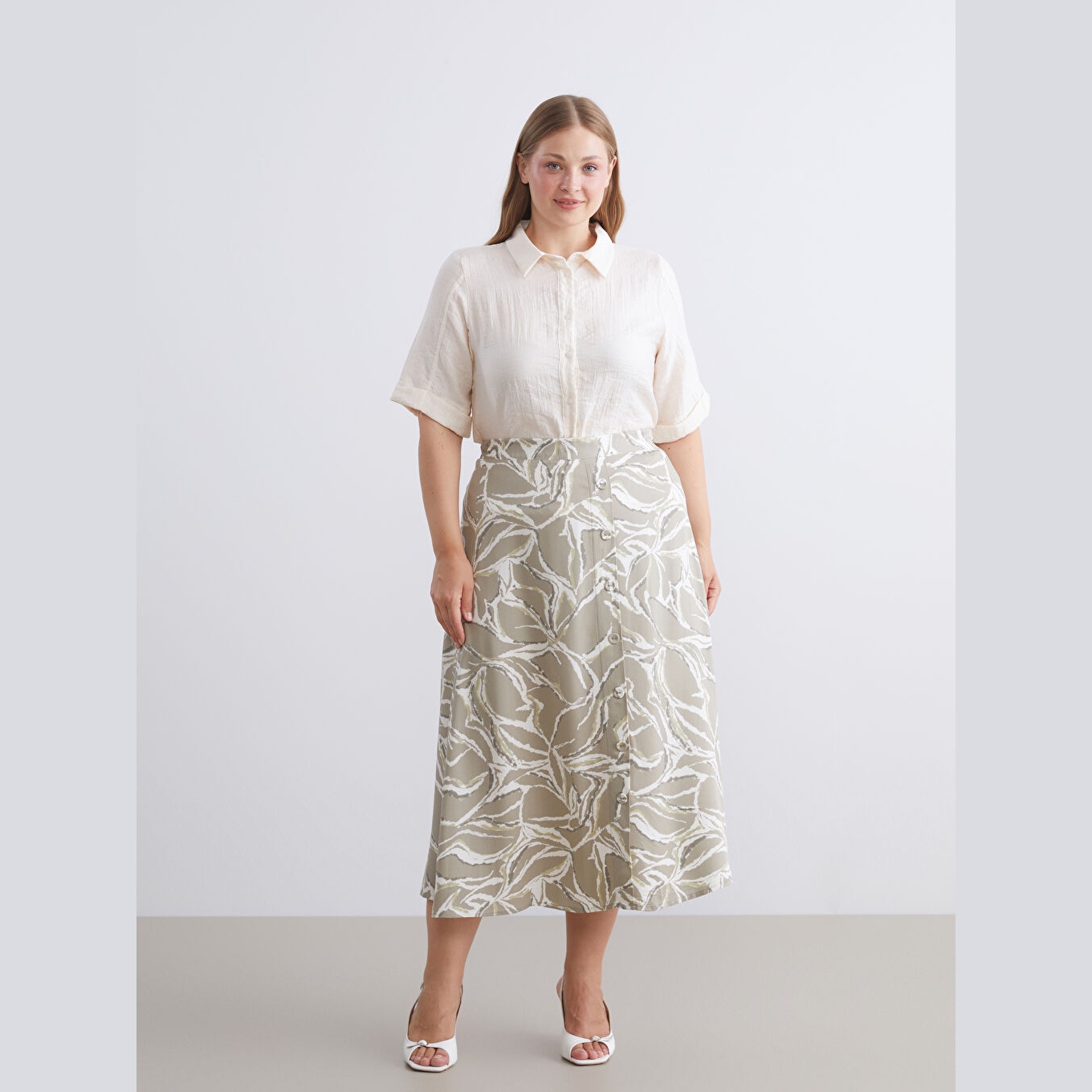 تنورة أنثوية أنيقة بلون أخضر مزخرف من مجموعة LCW Grace – كبير الحجم، تتميز بقصة A-line واسعة تمنحك حرية حركة وانسيابية، مع خصر مطاطي مريح يضمن ثباتًا وراحة طوال اليوم. مصنوعة من خامة ناعمة 100% فيسكوز، بدون بطانة، وبطول طويل يصل إلى الكاحل تقريبًا، مثالية للإطلالات اليومية أو الصيفية الراقية.