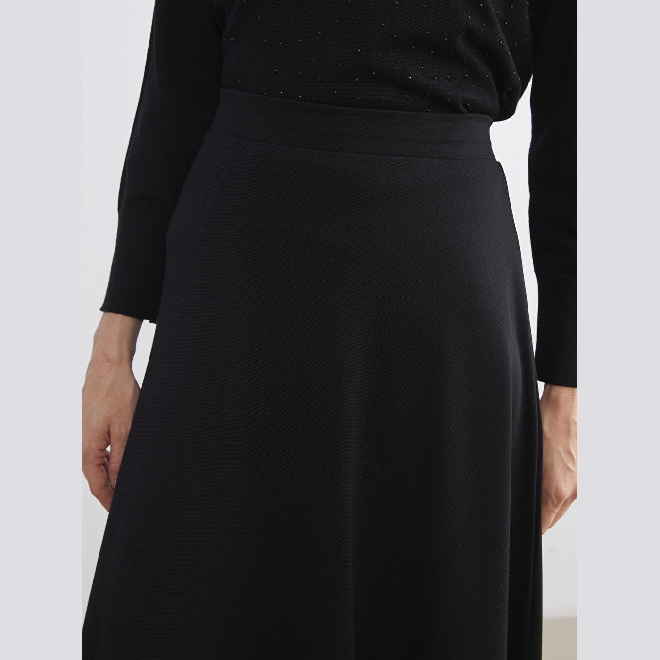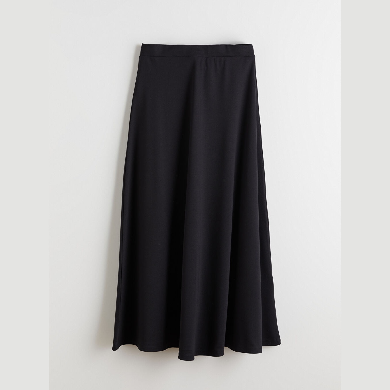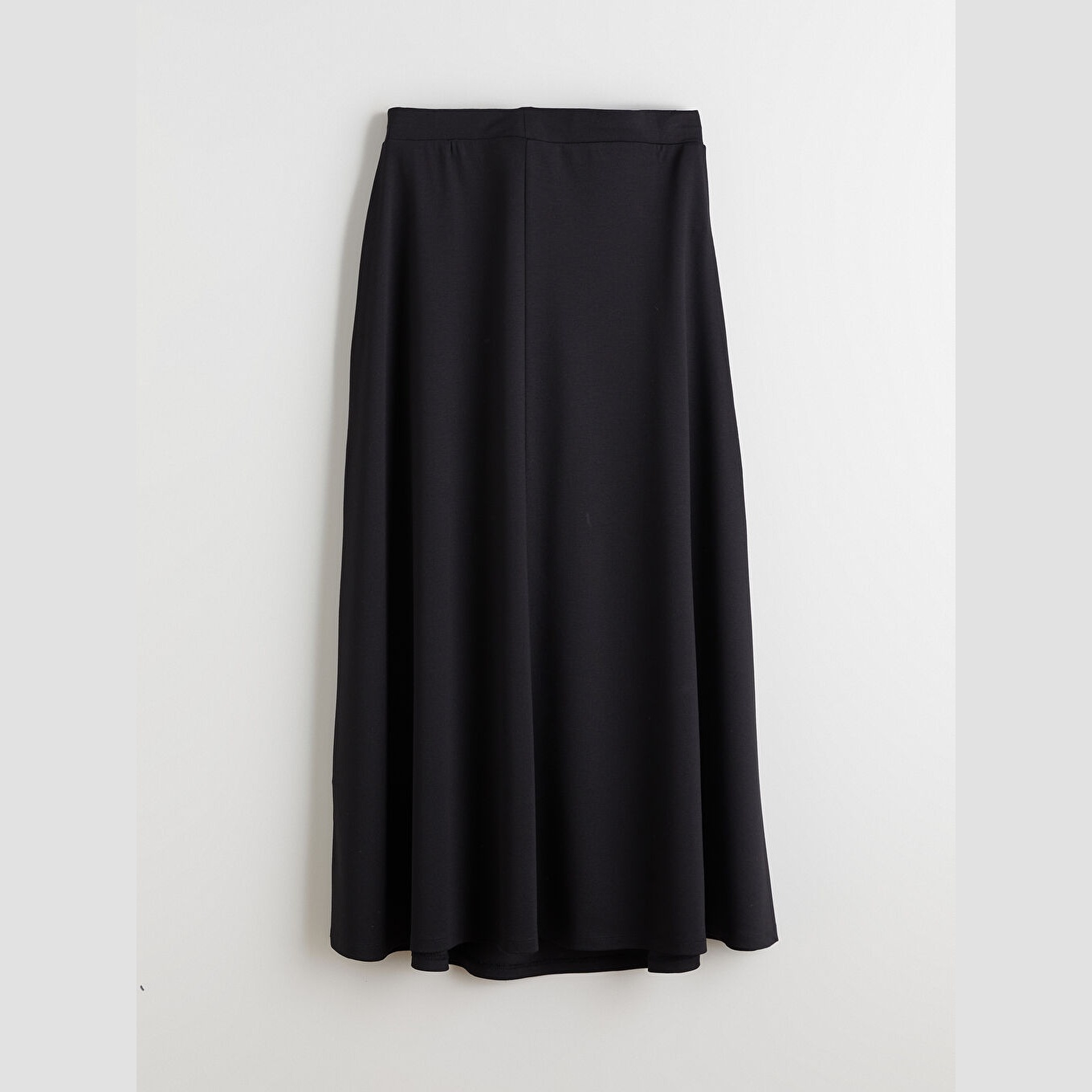 تنورة أنيقة بلون أسود سادة من مجموعة LCW Büyük Beden – للراحة والأناقة المحتشمة، تتميز بقصة A-line واسعة تمنحك انسيابية وحركة مريحة، مع خصر عادي يضمن ثباتًا وأناقة كلاسيكية. مصنوعة من خامة إنترلوك ناعمة ومطاطية بتركيبة %69 فيسكوز، %27 بوليستر، %4 إيلاستان، بدون بطانة، وبطول طويل يصل إلى الكاحل تقريبًا، مثالية للإطلالات اليومية أو الرسمية المحتشمة.