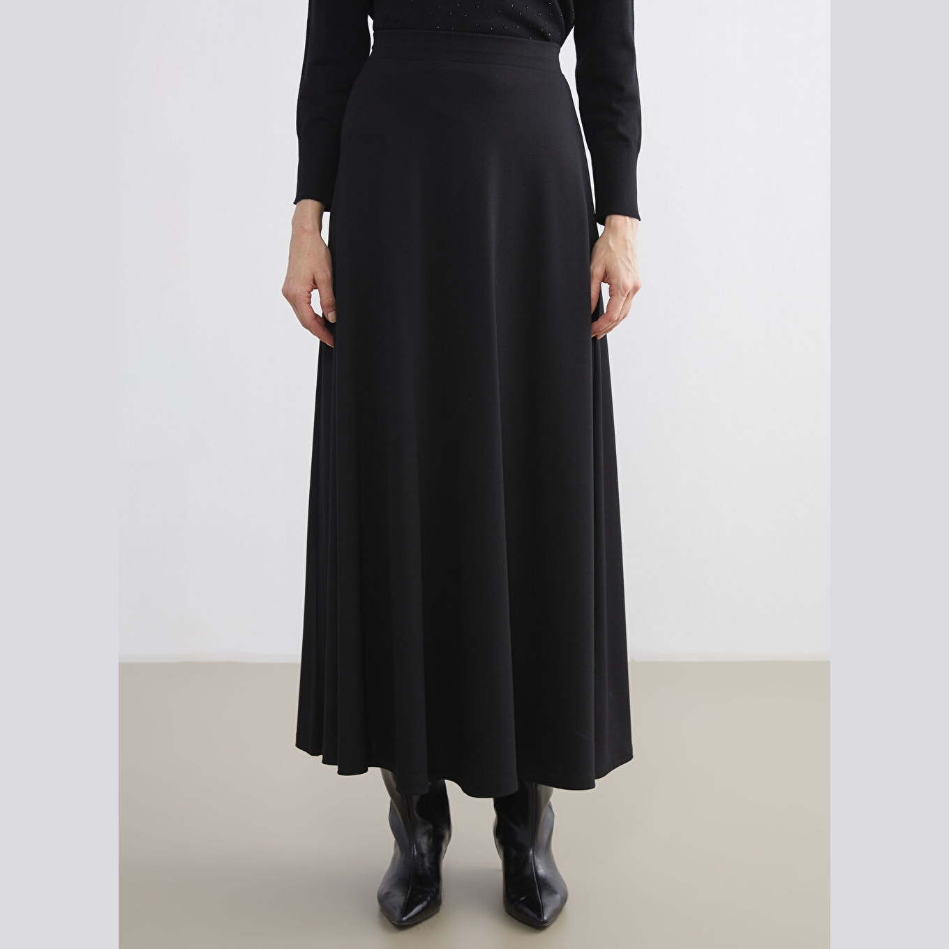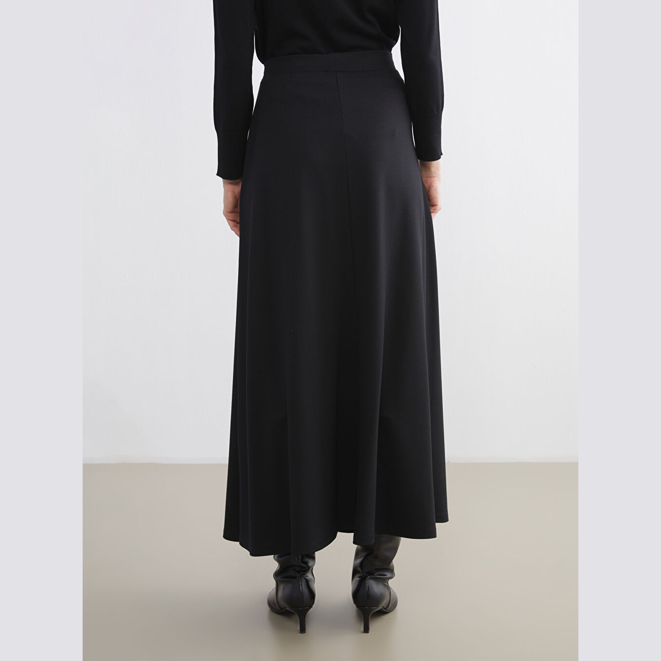 تنورة نسائية بخصر عادي وقصة A – أسود عملي (قصة مريحة، تصميم طويل، بدون بطانة)
