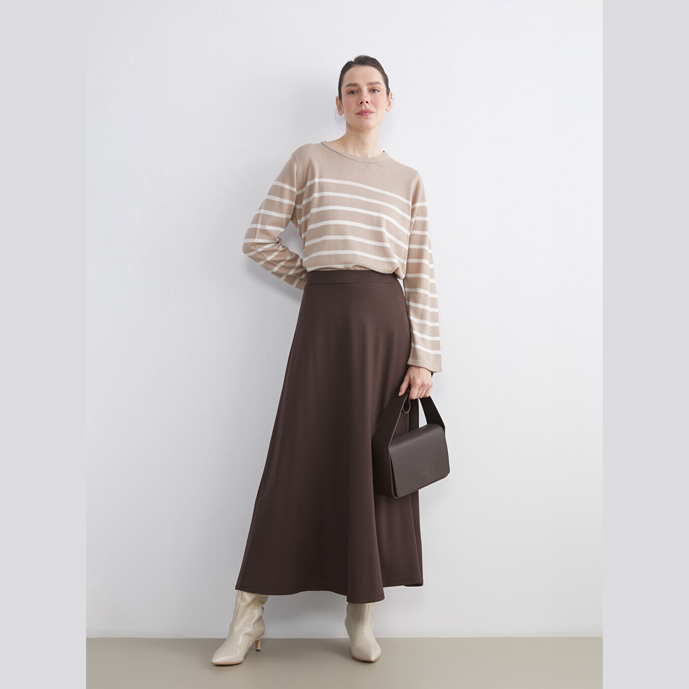 تنورة أنيقة بلون أنثراسايت سادة (رمادي غامق) من مجموعة LCW Büyük Beden – للراحة والأناقة المحتشمة، تتميز بقصة A-line واسعة تمنحك انسيابية وحركة مريحة، مع خصر عادي يضمن ثباتًا وأناقة كلاسيكية. مصنوعة من خامة إنترلوك ناعمة ومطاطية بتركيبة %71 فيسكوز، %27 بوليستر، %2 إيلاستان، بدون بطانة، وبطول طويل يصل إلى الكاحل تقريبًا، مثالية للإطلالات اليومية أو الرسمية المحتشمة.