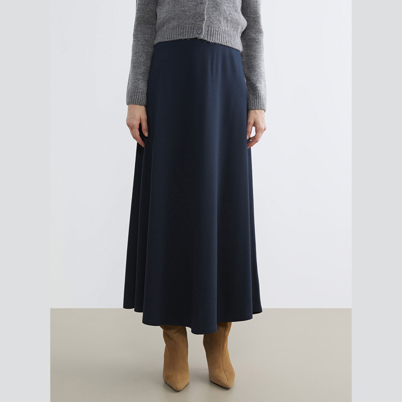 تنورة أنيقة بلون كحلي سادة من مجموعة LCW Büyük Beden – للراحة والأناقة المحتشمة، تتميز بقصة A-line واسعة تمنحك انسيابية وحركة مريحة، مع خصر عادي يضمن ثباتًا وأناقة كلاسيكية. مصنوعة من خامة إنترلوك ناعمة ومطاطية بتركيبة %69 فيسكوز، %27 بوليستر، %4 إيلاستان، بدون بطانة، وبطول طويل يصل إلى الكاحل تقريبًا، مثالية للإطلالات اليومية أو الرسمية المحتشمة.