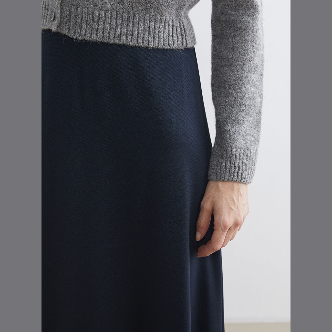 تنورة نسائية بخصر عادي وقصة A – كحلي عملي (قصة واسعة، تصميم طويل، بدون بطانة)