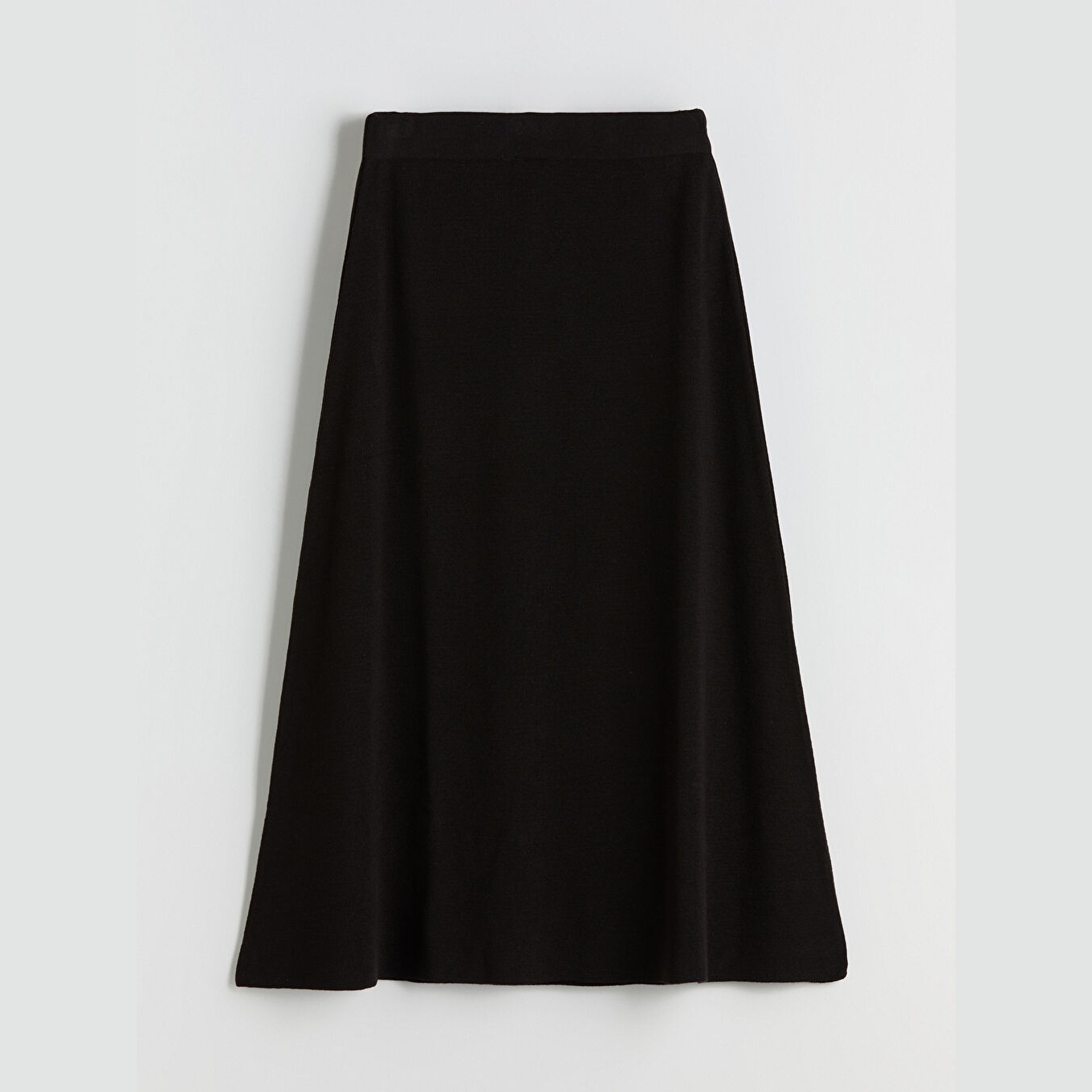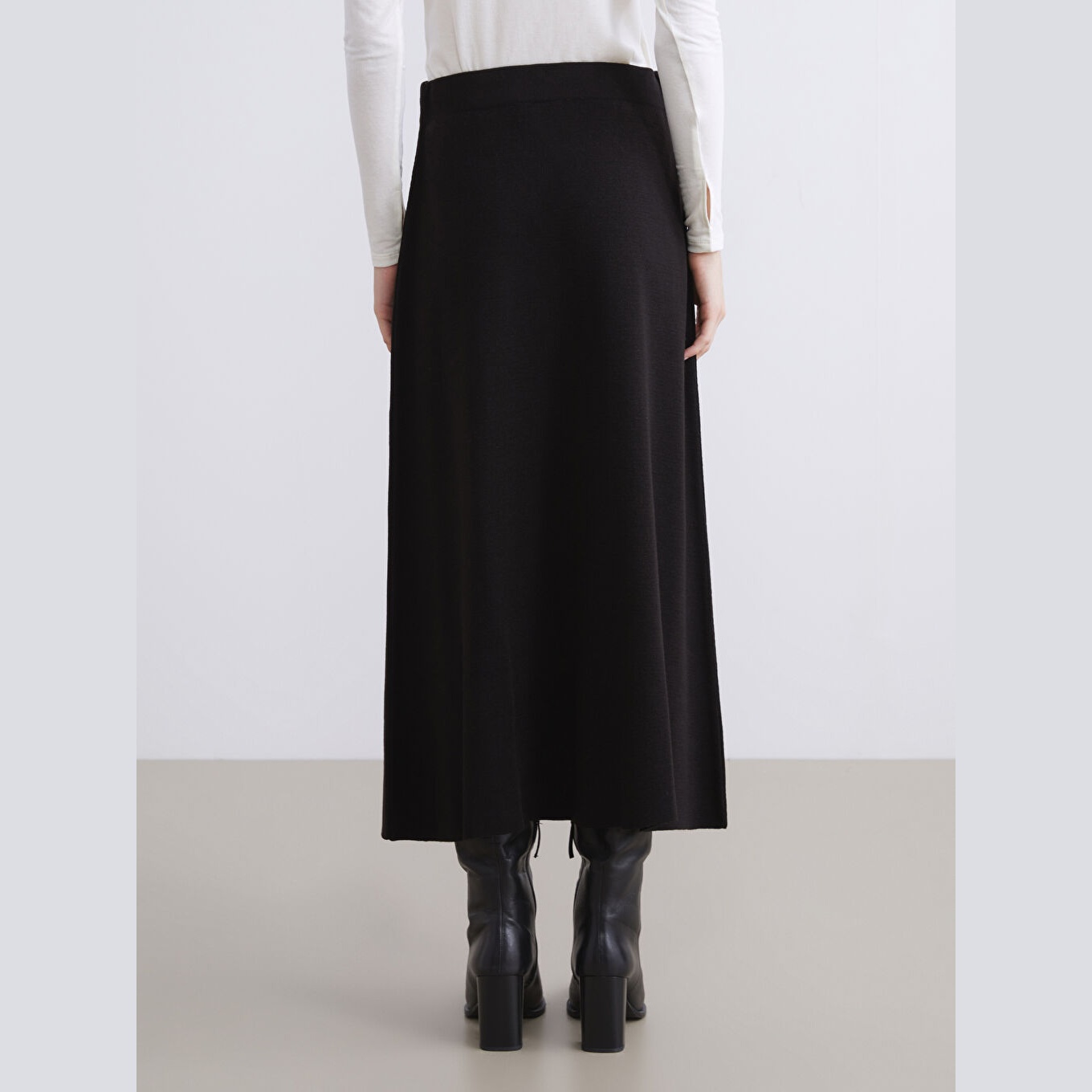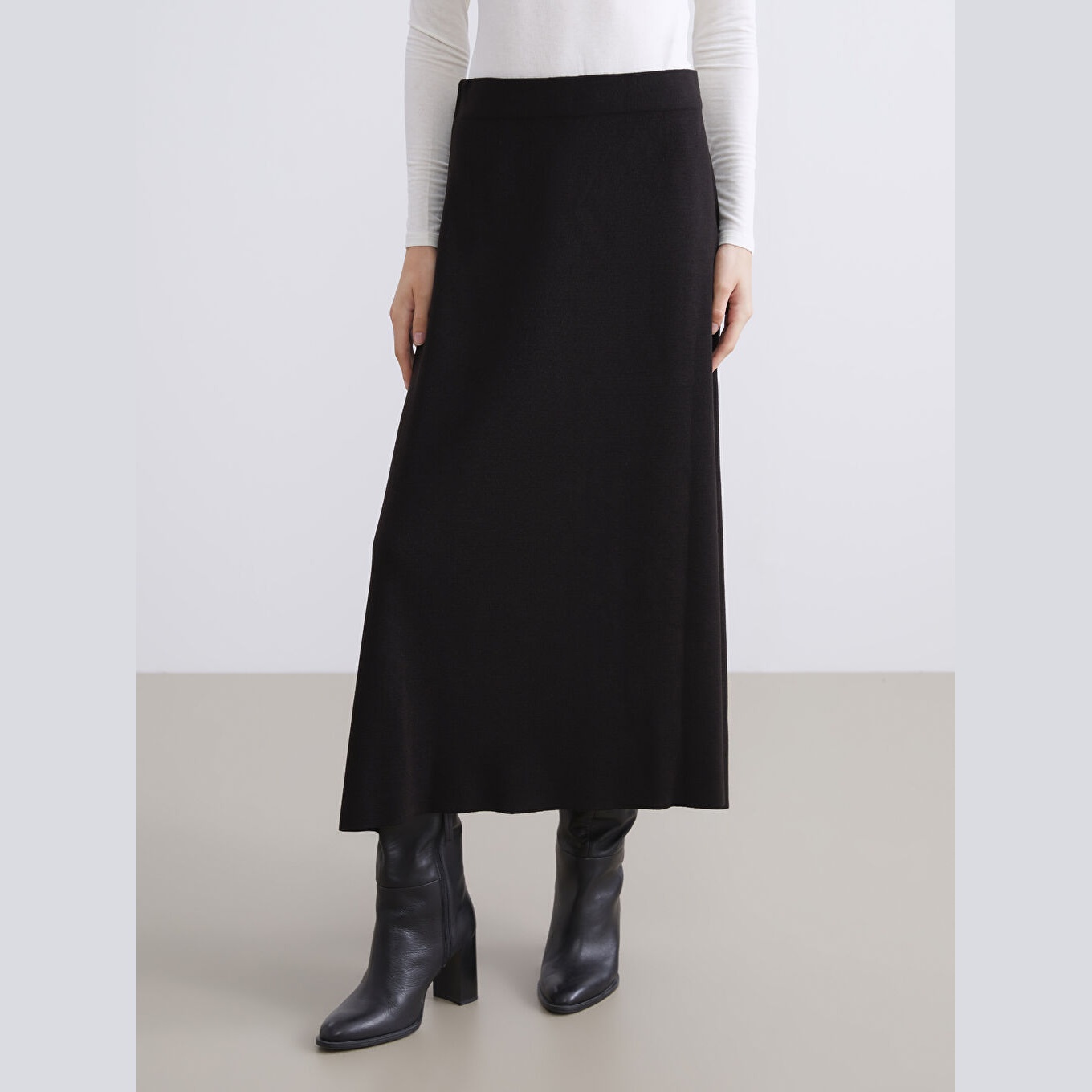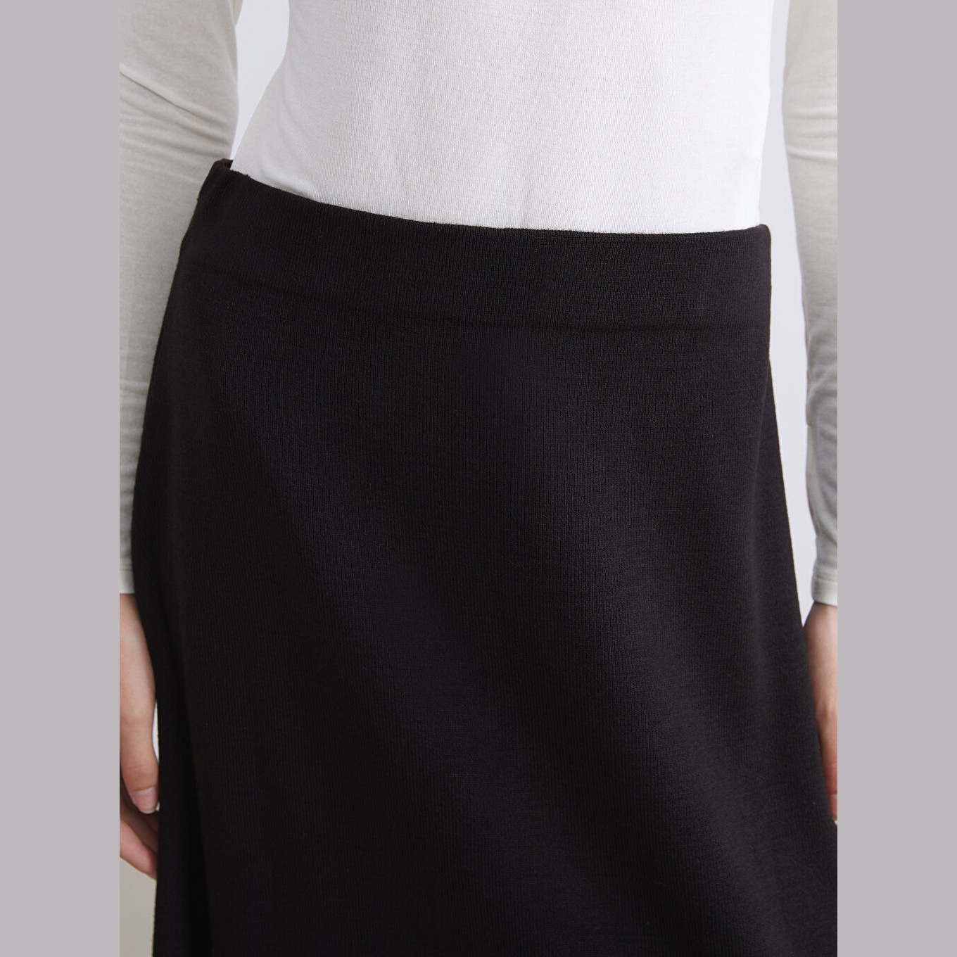 تنورة نسائية بخصر مطاطي وقصة A – أسود تريكو (قصة واسعة، تصميم طويل، بدون بطانة)