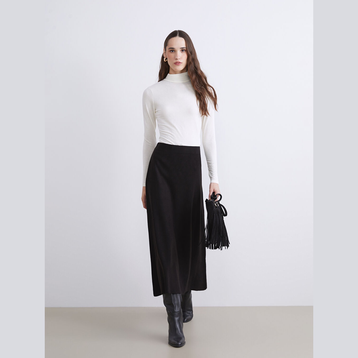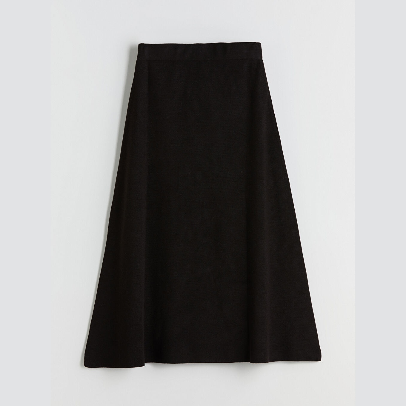 تنورة أنيقة بلون أسود سادة من مجموعة LCW Tesettür Giyim – لأناقة يومية محتشمة، تأتي بقصة A-line واسعة تمنحك انسيابية مريحة، مع خصر مطاطي عملي يضمن ثباتًا وراحة طوال اليوم. مصنوعة من خامة تريكو متوسطة السماكة بتركيبة %100 أكريليك، بدون بطانة، وبطول طويل يصل إلى الكاحل تقريبًا، مثالية للإطلالات الخريفية والشتوية المحتشمة.
