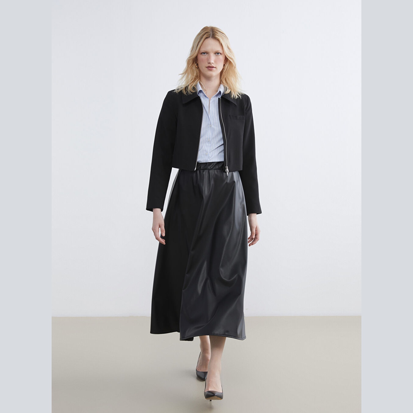 تنورة أنيقة بلون أسود لامع من مجموعة LCW Tesettür Giyim – لأناقة عصرية ومحتشمة، تأتي بقصة كلوش واسعة (A Kesim) تمنحك حركة انسيابية أنثوية، مع خصر مطاطي عملي يضمن ثباتًا وراحة طوال اليوم. مصنوعة من خامة جلد صناعي متوسط السماكة بتركيبة خارجية من %100 بوليستر مع طبقة تغليف من %100 بولي فينيل كلوريد (PVC)، بدون بطانة، وبطول ميدي يصل إلى منتصف الساق تقريبًا، مثالية للإطلالات الخريفية والشتوية الجريئة والمحتشمة.