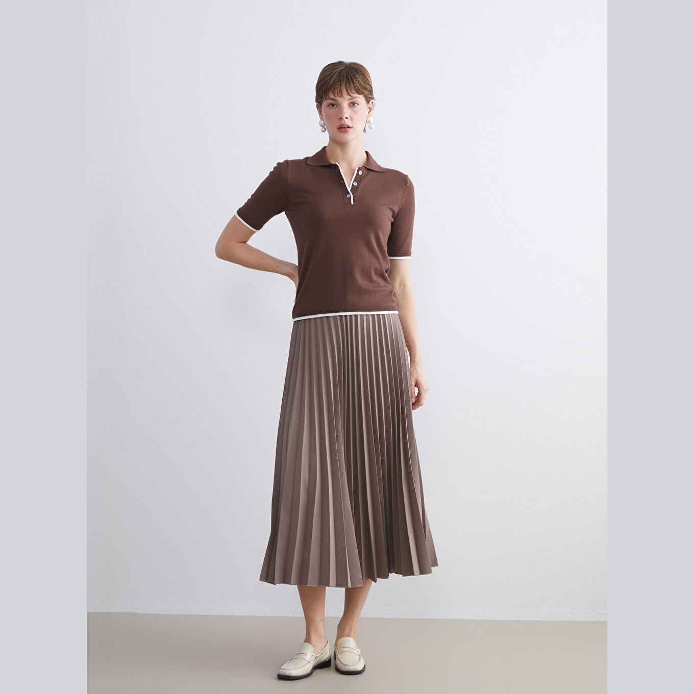 تنورة أنيقة بلون بني سادة دافئ من مجموعة LCWAIKIKI Classic – لأناقة ناعمة ومحتشمة، تأتي بقصة بليسيه واسعة (Loose Fit Pileli) تمنحك حركة انسيابية أنثوية، مع خصر مطاطي عملي يضمن ثباتًا وراحة طوال اليوم. مصنوعة من خامة شيفون خفيفة ومريحة بتركيبة %88 بوليستر، %12 إيلاستان، بدون بطانة، وبطول ميدي يصل إلى منتصف الساق تقريبًا، مثالية للإطلالات الربيعية أو الصيفية المحتشمة.