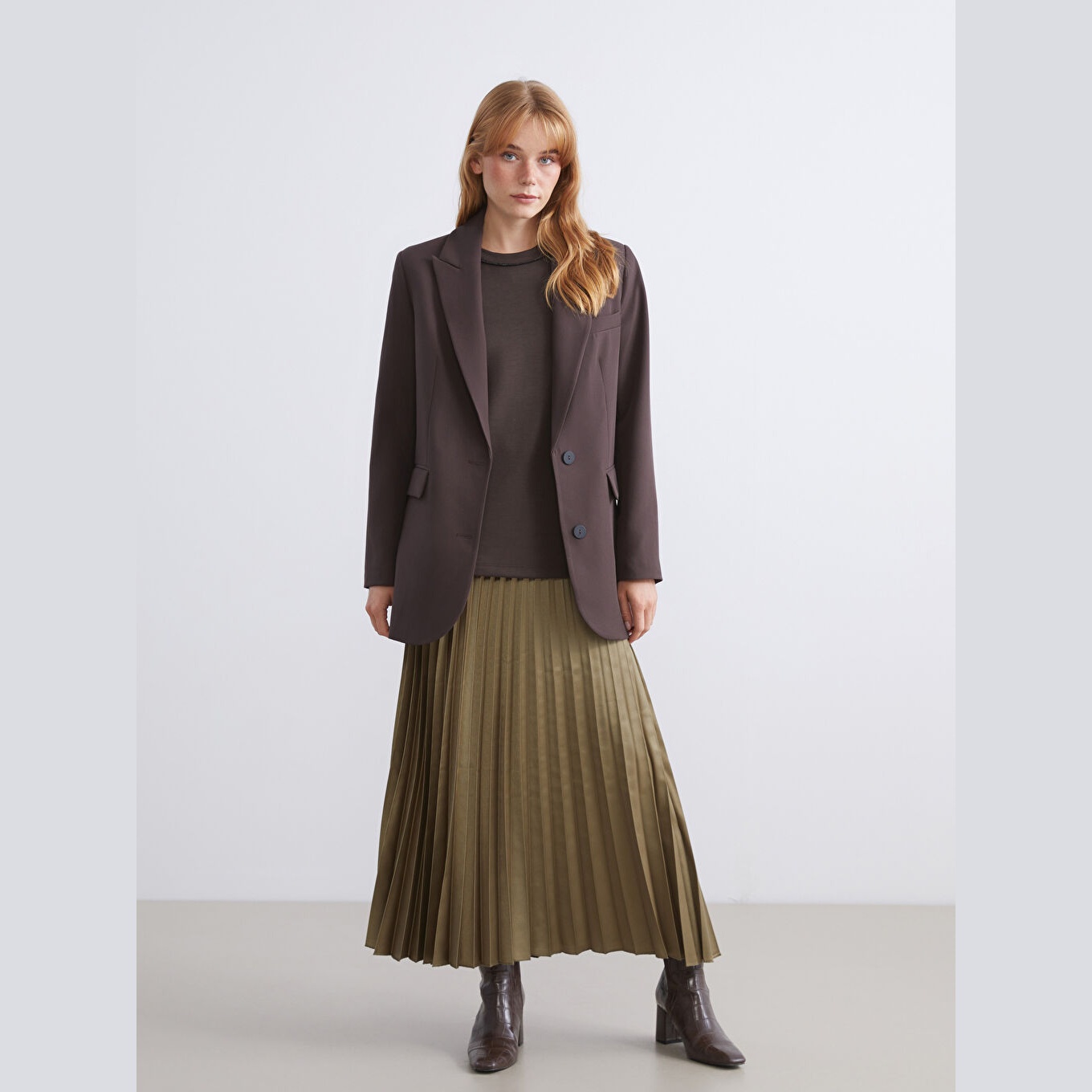 تنورة أنيقة بلون كاكي لامع من مجموعة LCW Tesettür Giyim – لأناقة ناعمة ومحتشمة، تتميز بقصة بليسيه فضفاضة (Loose Fit Pileli) تمنحك حركة انسيابية أنثوية، مع خصر مطاطي عملي يضمن ثباتًا وراحة طوال اليوم. مصنوعة من خامة ساتان خفيفة ولامعة بتركيبة %94 بوليستر، %6 إيلاستان، بدون بطانة، وبطول ميدي يصل إلى منتصف الساق تقريبًا، مثالية للإطلالات اليومية أو الرسمية المحتشمة في المواسم المعتدلة.