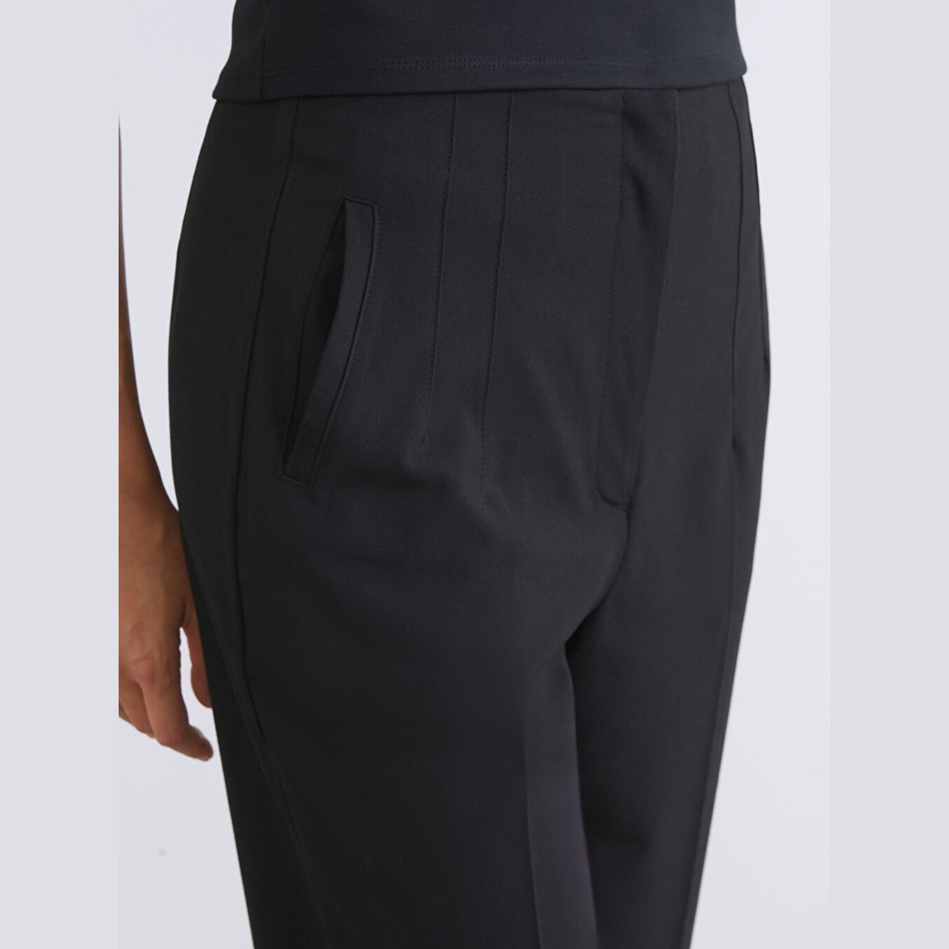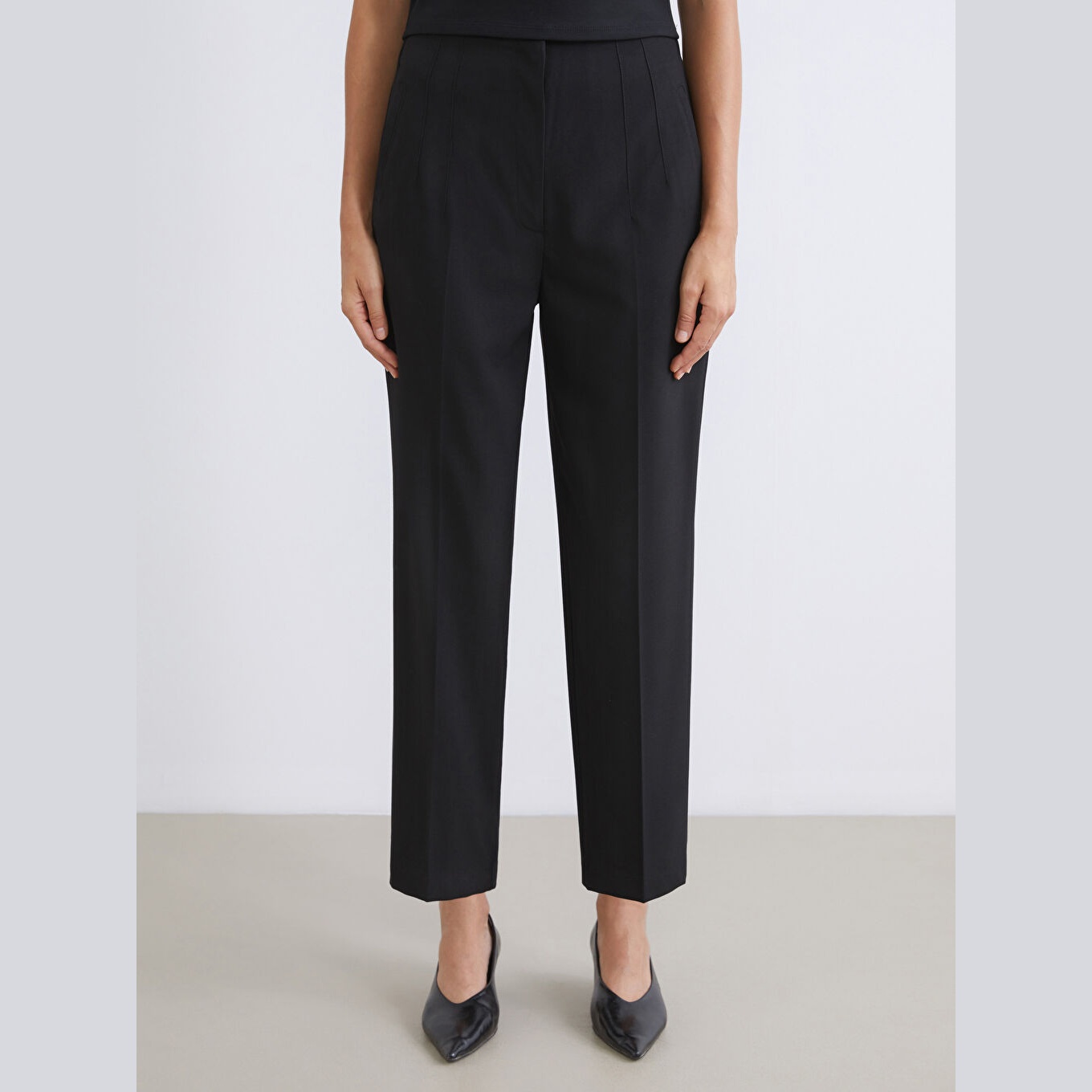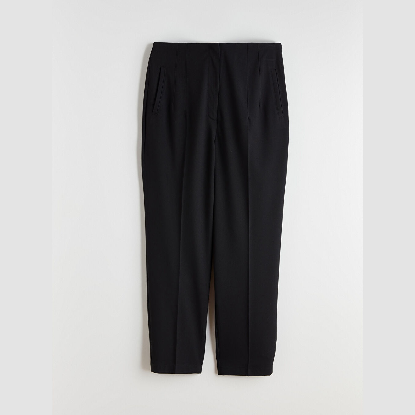 بنطال نسائي بقصة جزرة – أسود (قصة مريحة، خصر عالي، خامة مزدوجة)