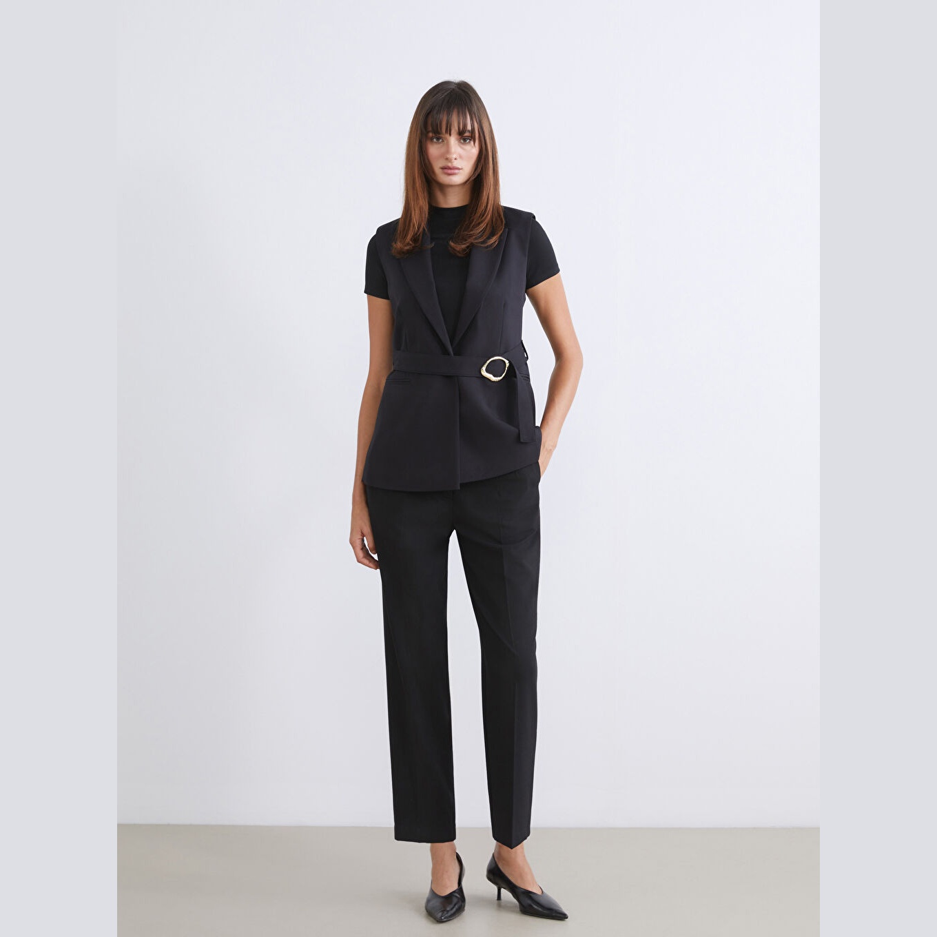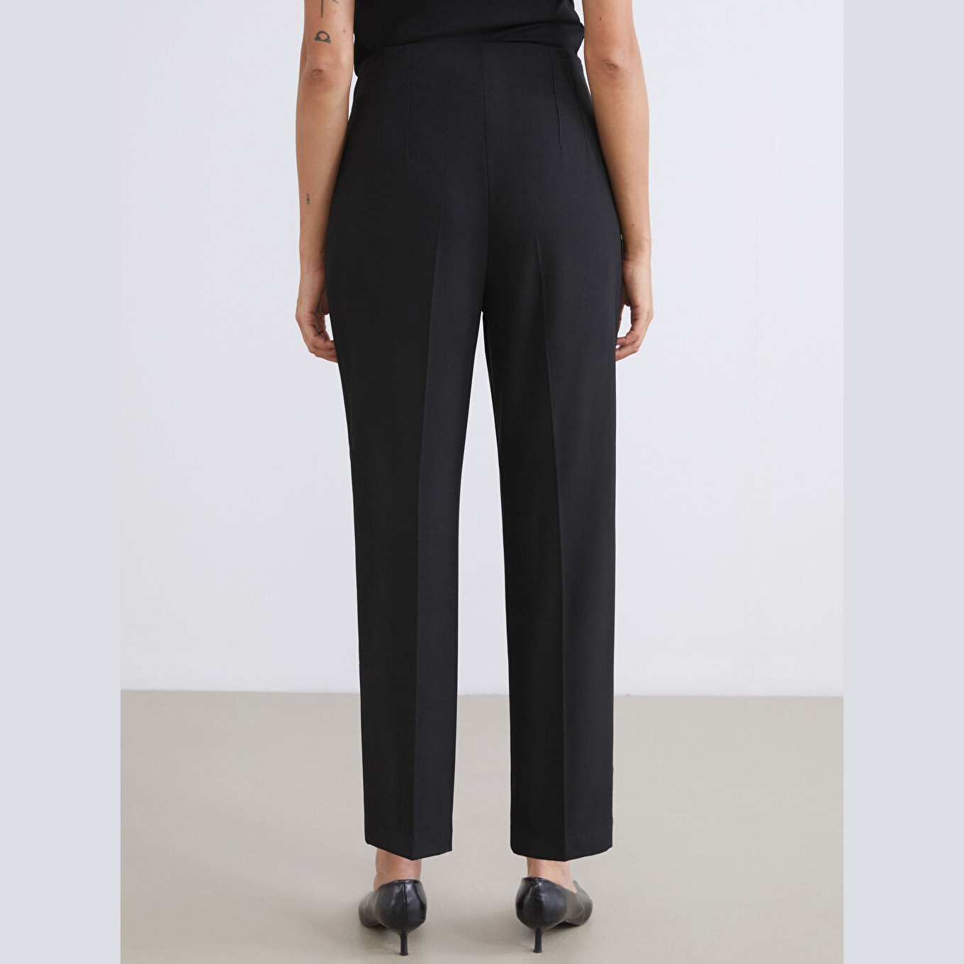 بنطال أنيق بلون أسود سادة كلاسيكي من مجموعة LCW Büyük Beden – لأناقة عملية ومحتشمة، يتميز بقصة جزرة (Carrot Fit) التي تتسع عند الورك وتضيق تدريجيًا نحو الكاحل، ما يمنحك مظهرًا عصريًا وانسيابيًا. يأتي بتصميم خصر عالي يعزز الثبات والراحة، ومصنوع من قماش مزدوج الوجه بتركيبة مرنة ومريحة تشمل %63 بوليستر، %32 فيسكوز، %5 إيلاستان، ما يجعله مثاليًا للإطلالات اليومية أو العملية في المواسم المعتدلة.