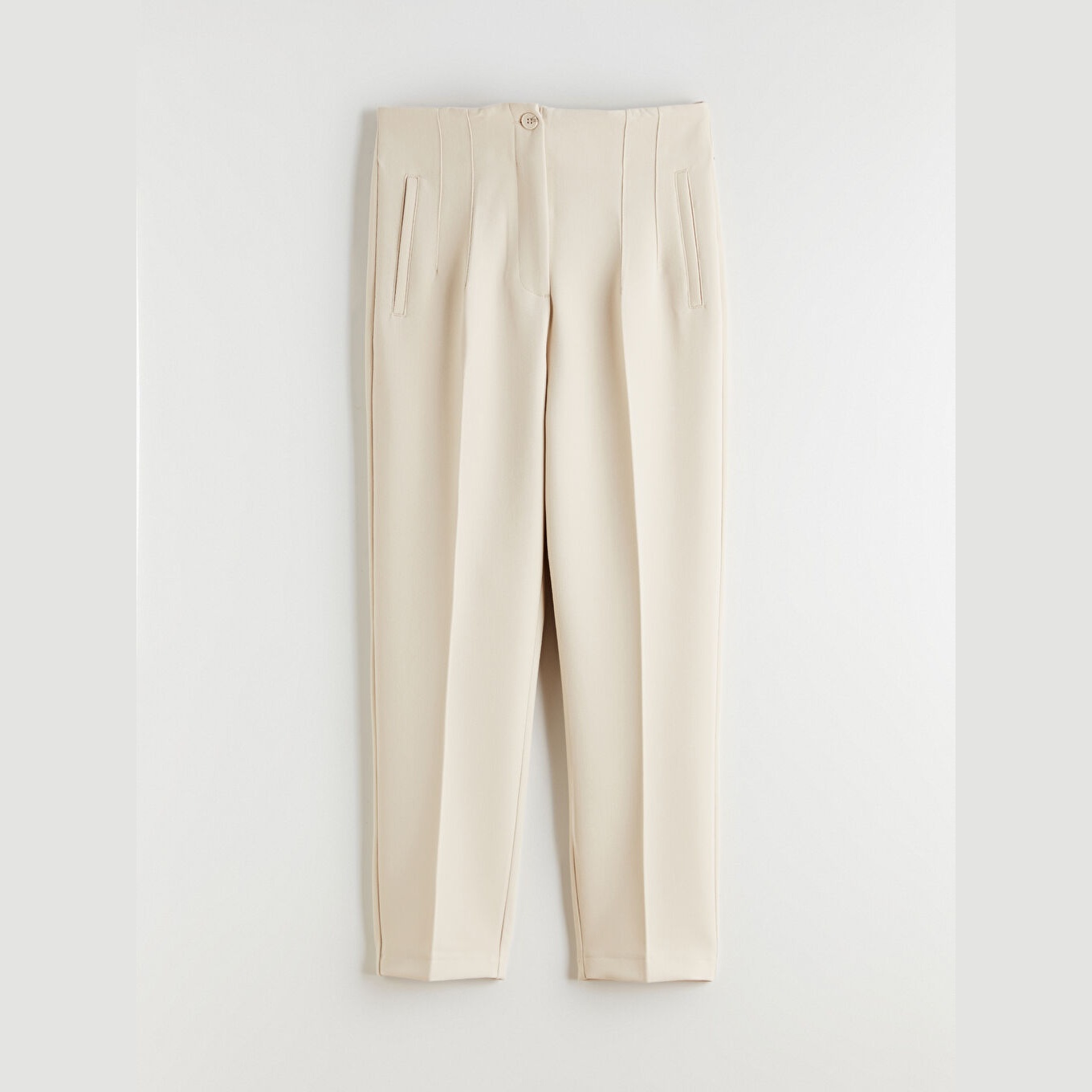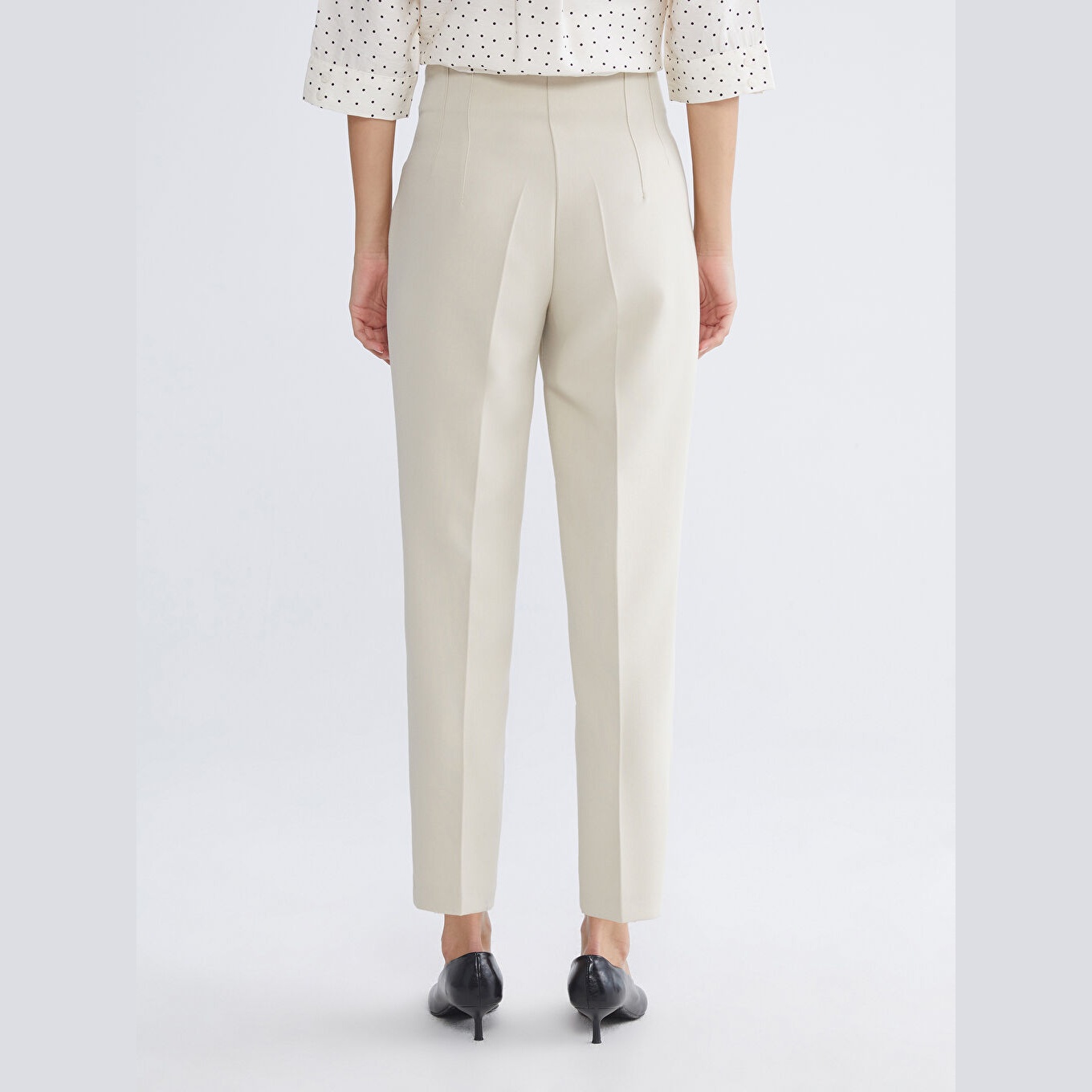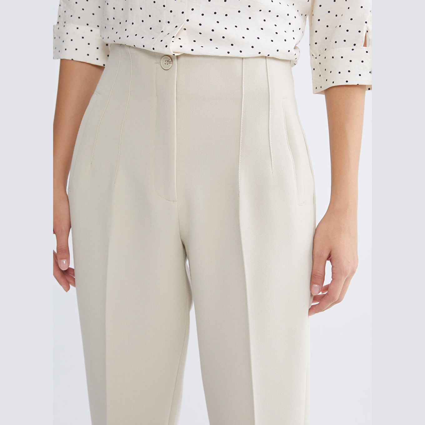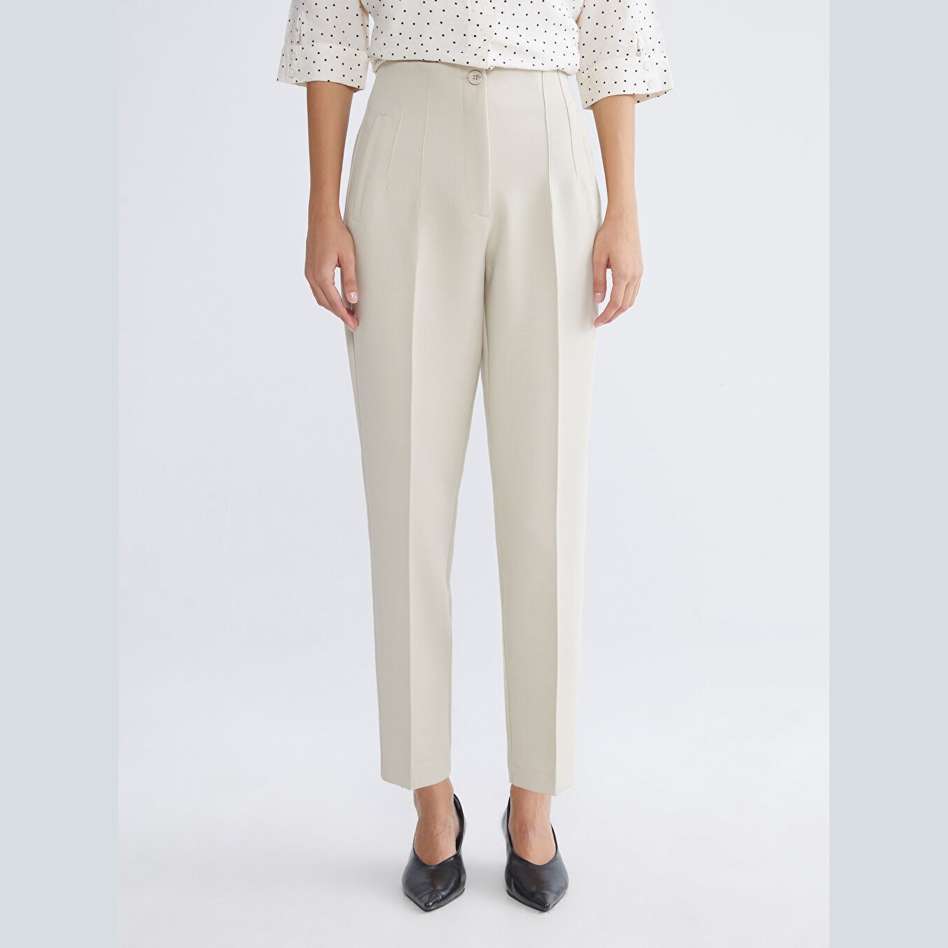 بنطال نسائي بخصر عالي وقصة جزرة – بيج بليسيه (قصة مريحة، أرجل ضيقة، خامة بولي فيسكوز مرنة)