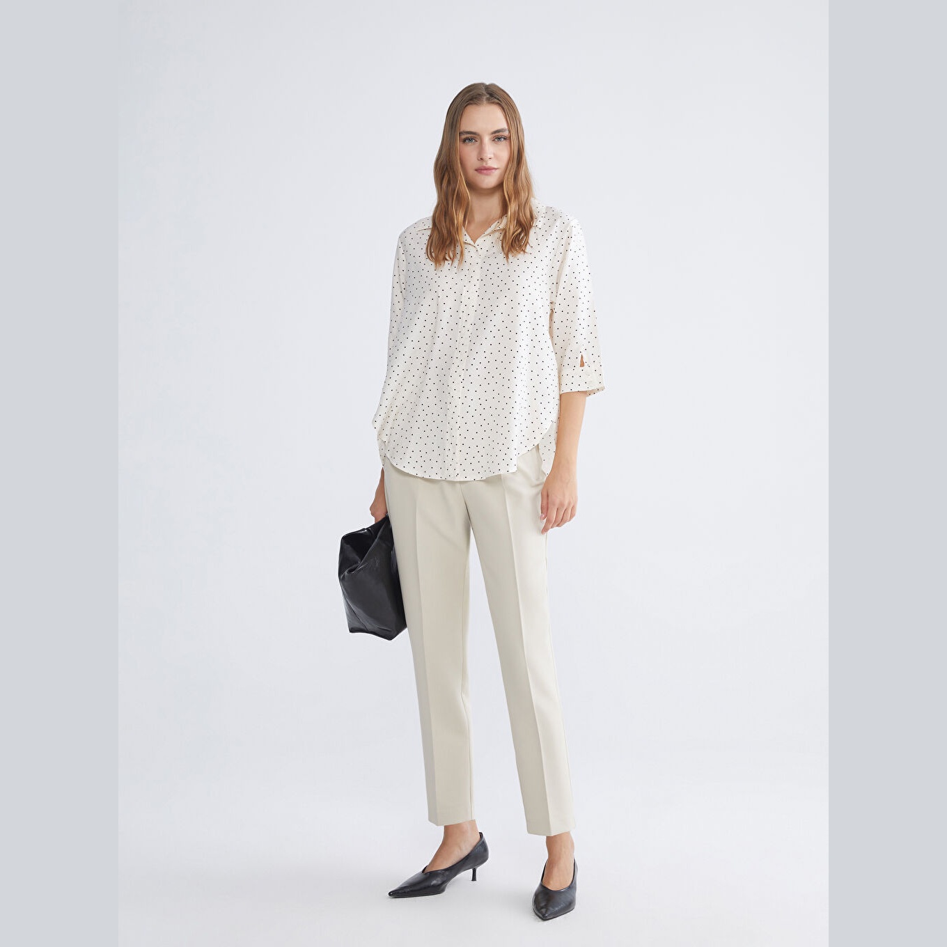 بنطال أنيق بلون بيج سادة ناعم من مجموعة LCW Büyük Beden – لأناقة عملية ومحتشمة، يتميز بقصة جزرة (Regular Fit) التي تتسع عند الورك وتضيق تدريجيًا نحو الكاحل، مع خصر عالي يعزز الثبات ويبرز القوام. تصميمه البليسيه يضيف لمسة أنثوية ناعمة، وهو مصنوع من خامة بوليفيسكوز مرنة ومريحة بتركيبة %73 بوليستر، %21 فيسكوز، %6 إيلاستان، ما يجعله مثاليًا للإطلالات اليومية أو العملية في المواسم المعتدلة.