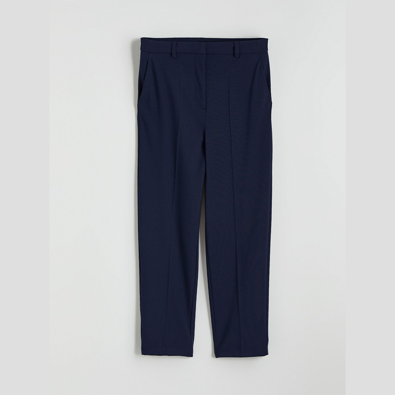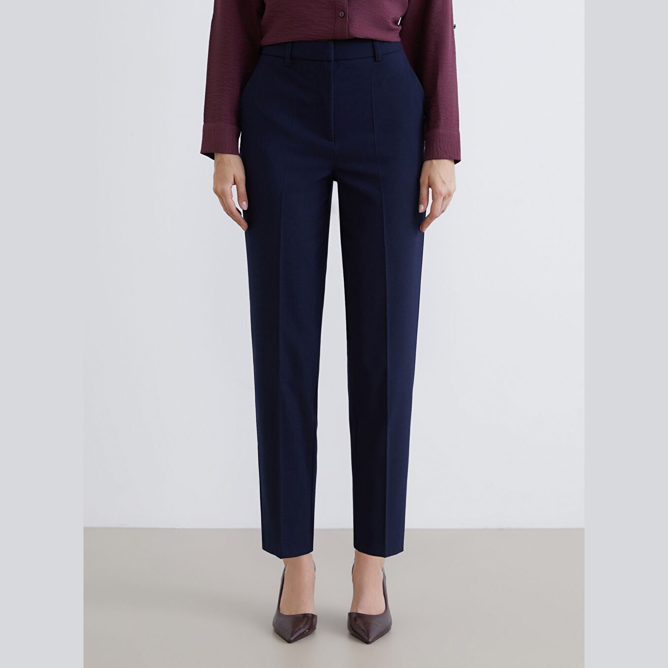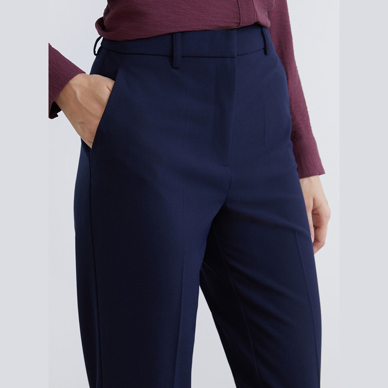 بنطال نسائي بخصر عالي – كحلي بقصة مريحة (أرجل ضيقة، خامة بولي فيسكوز مرنة)