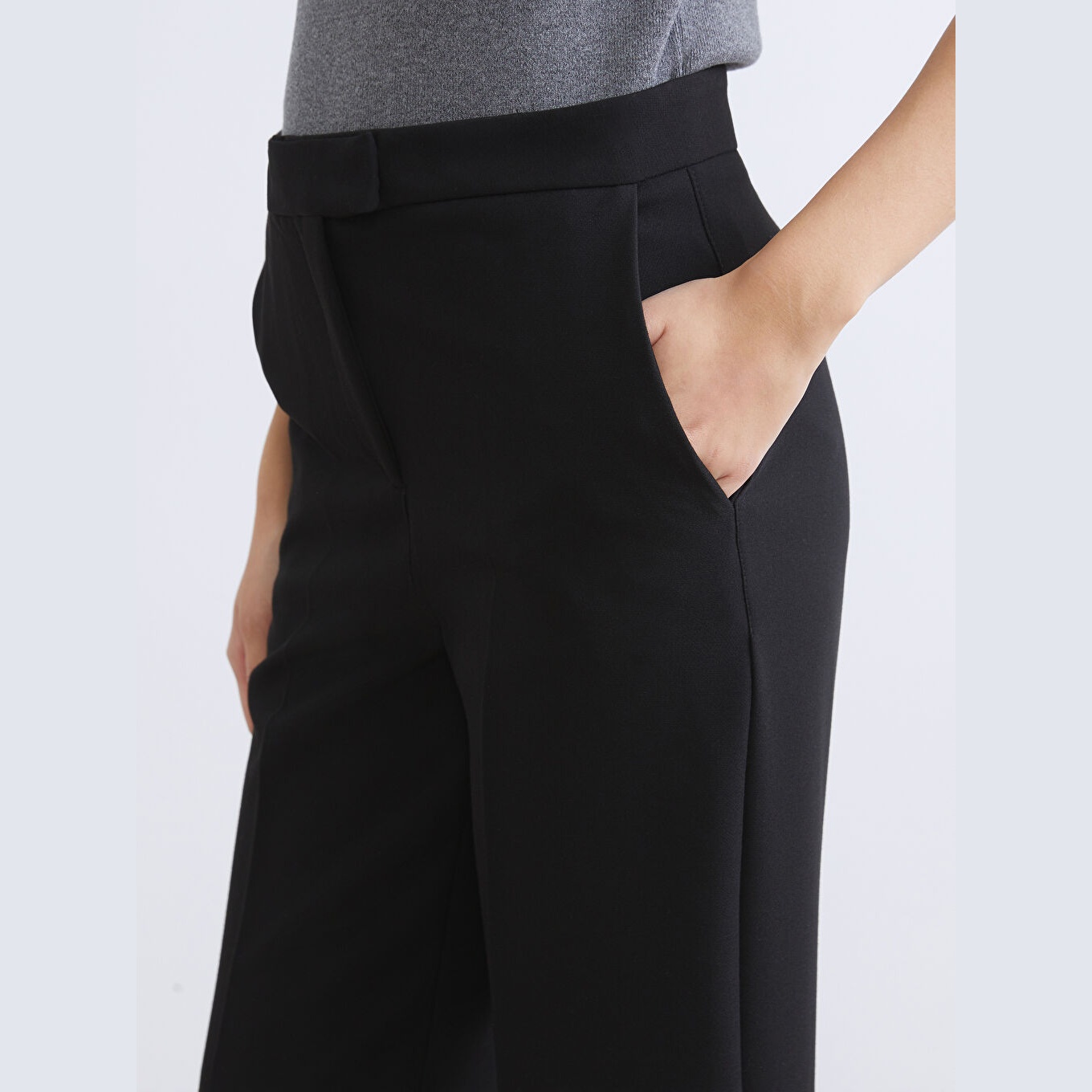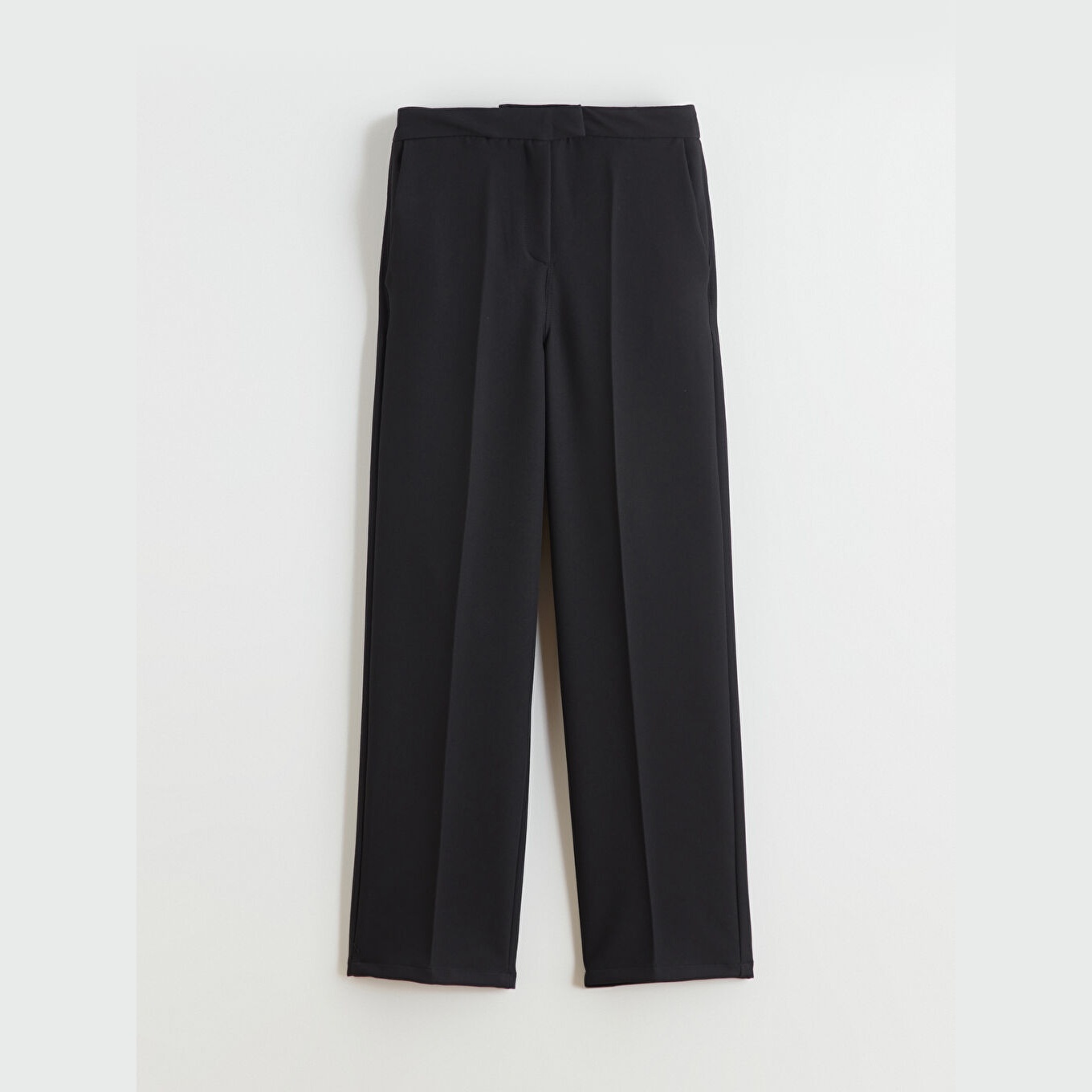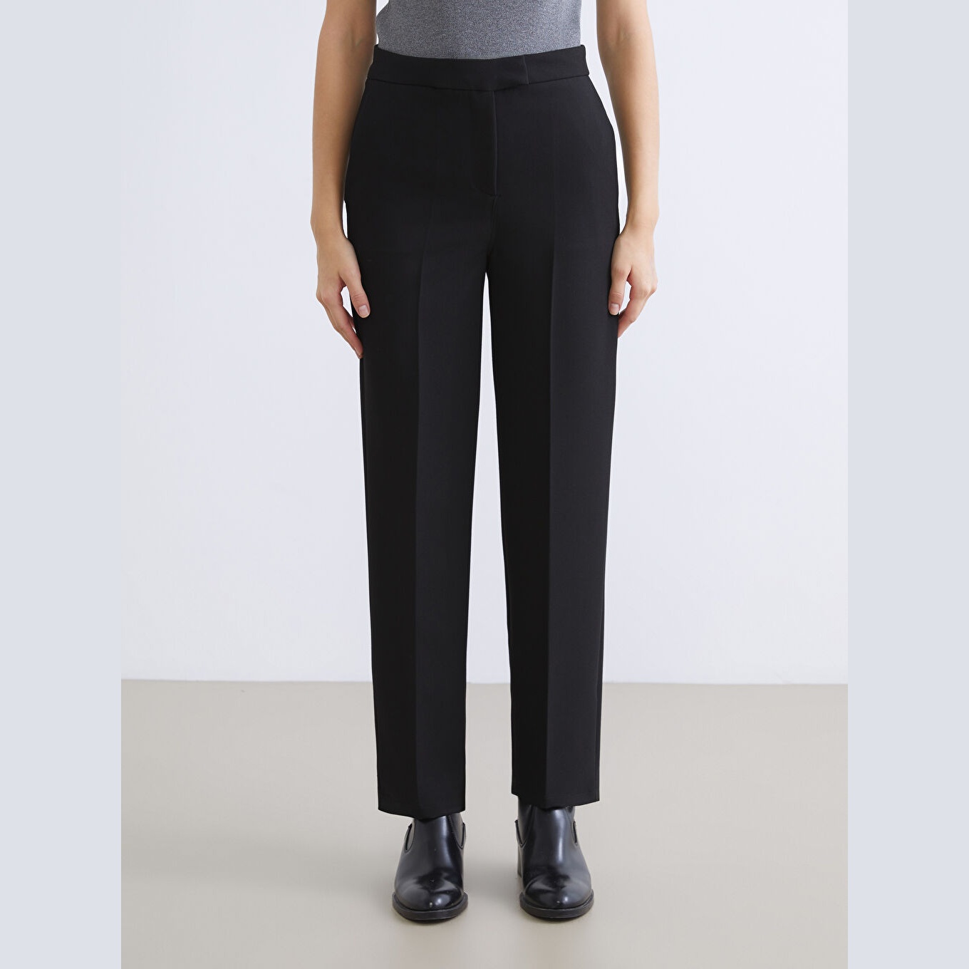 بنطال نسائي بخصر عادي – أسود بقصة مستقيمة (قصة مريحة، أرجل مستقيمة، خامة بولي فيسكوز مرنة)