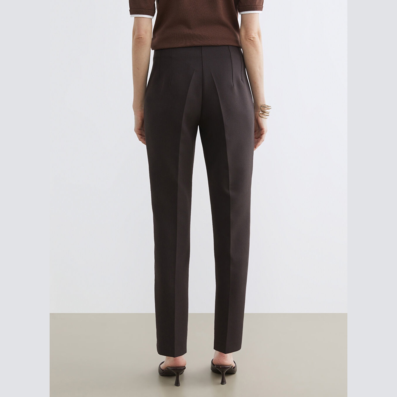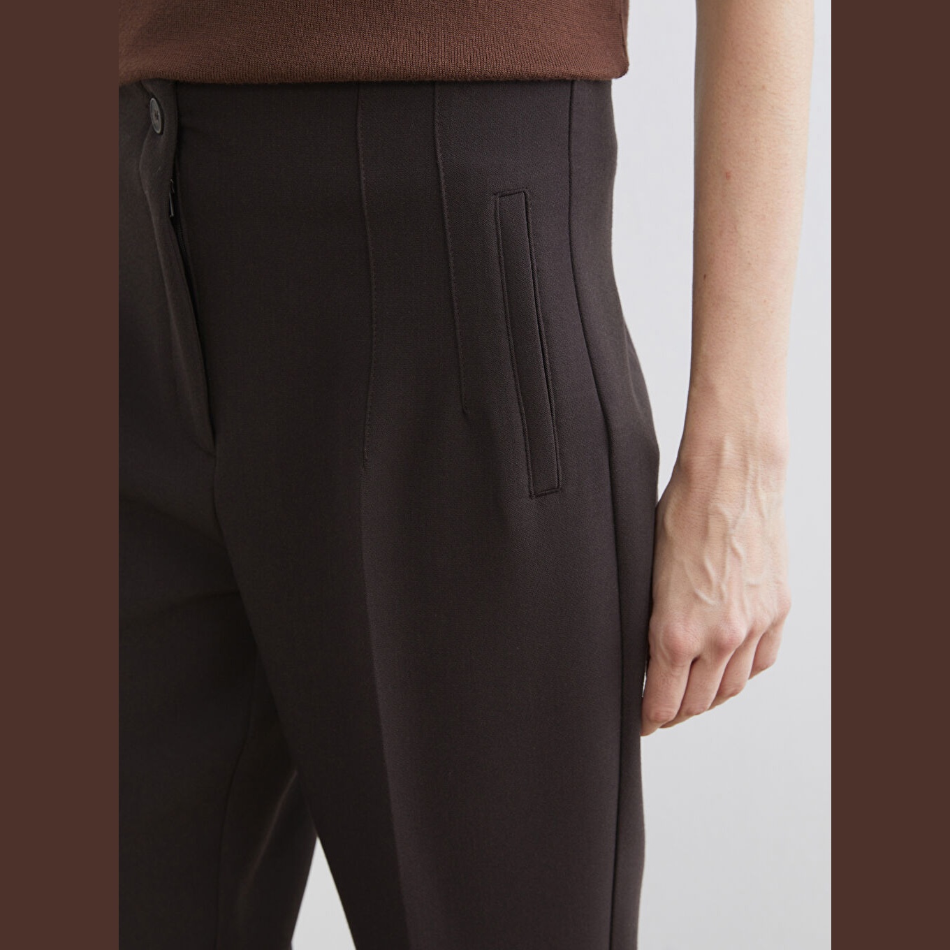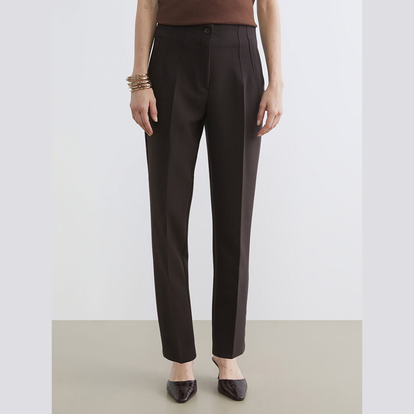 بنطال نسائي بخصر عالي – بني بقصة سيجاريت (قصة ضيقة، أرجل مدببة، خامة مزدوجة مرنة)