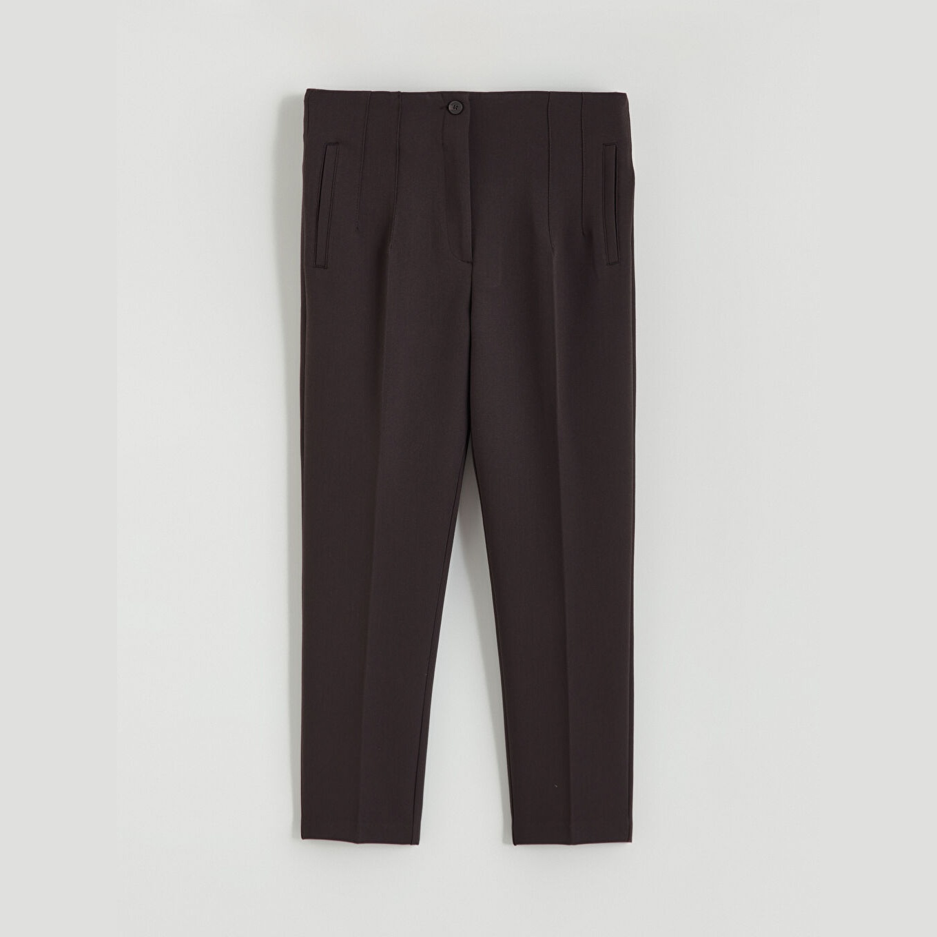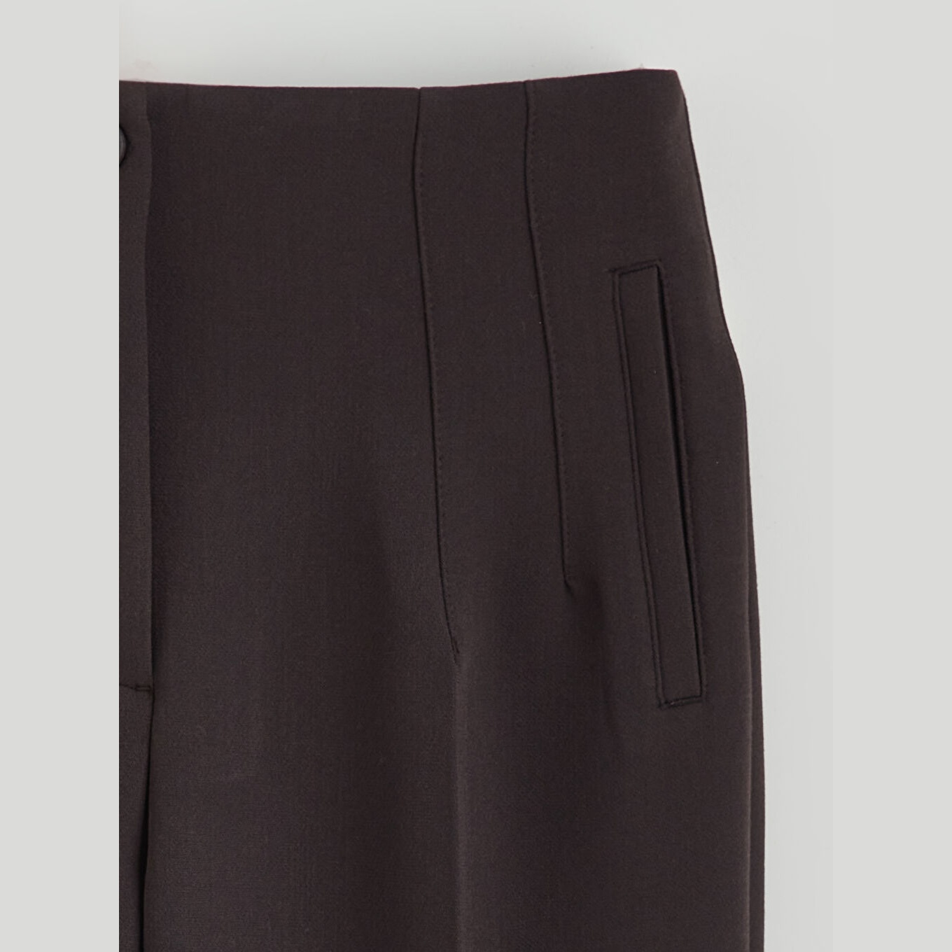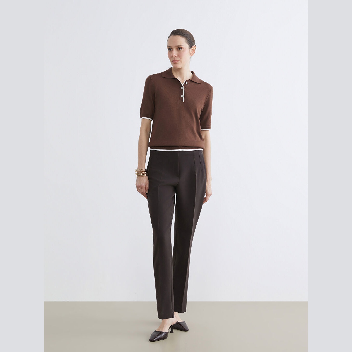بنطال نسائي بخصر عالي – بني بقصة سيجاريت (قصة ضيقة، أرجل مدببة، خامة مزدوجة مرنة)
