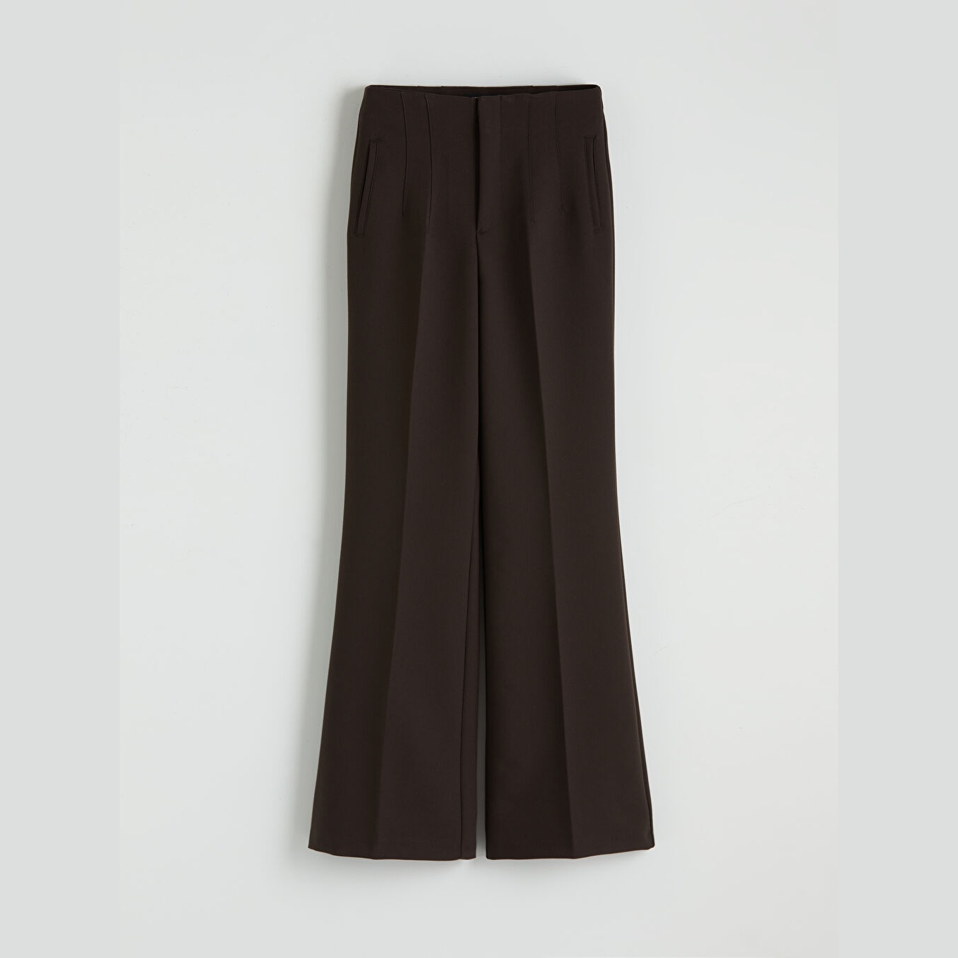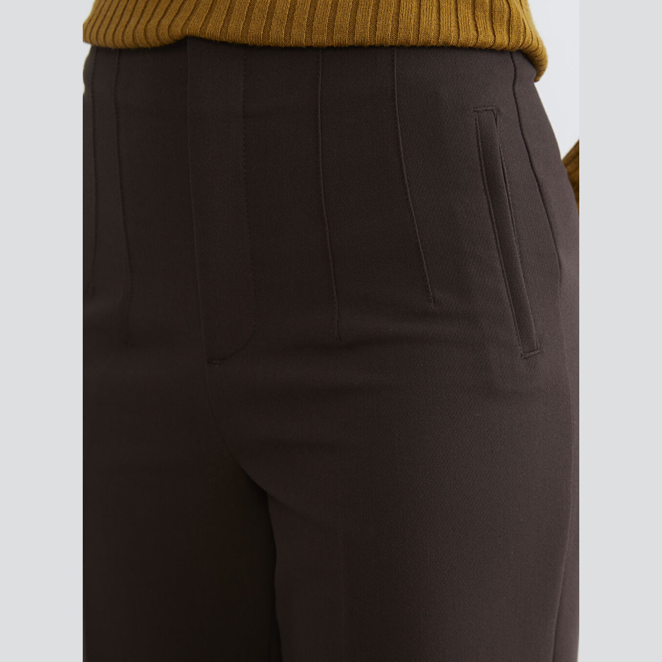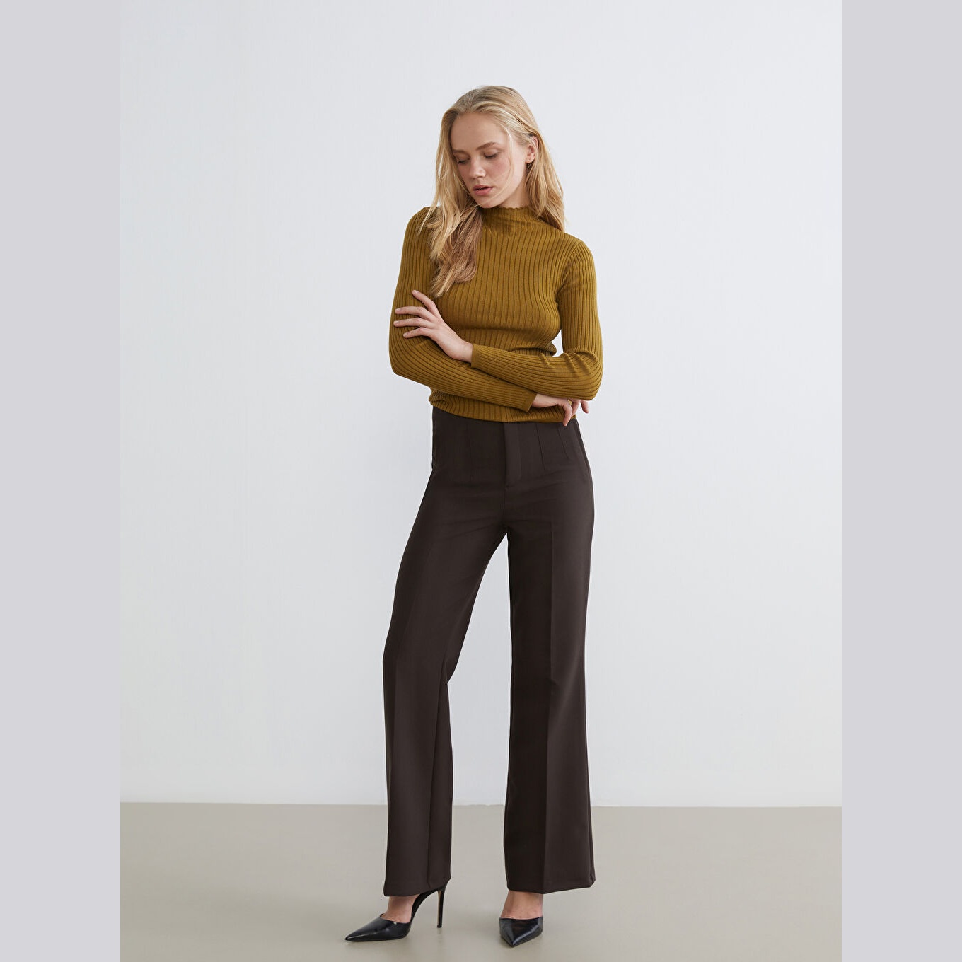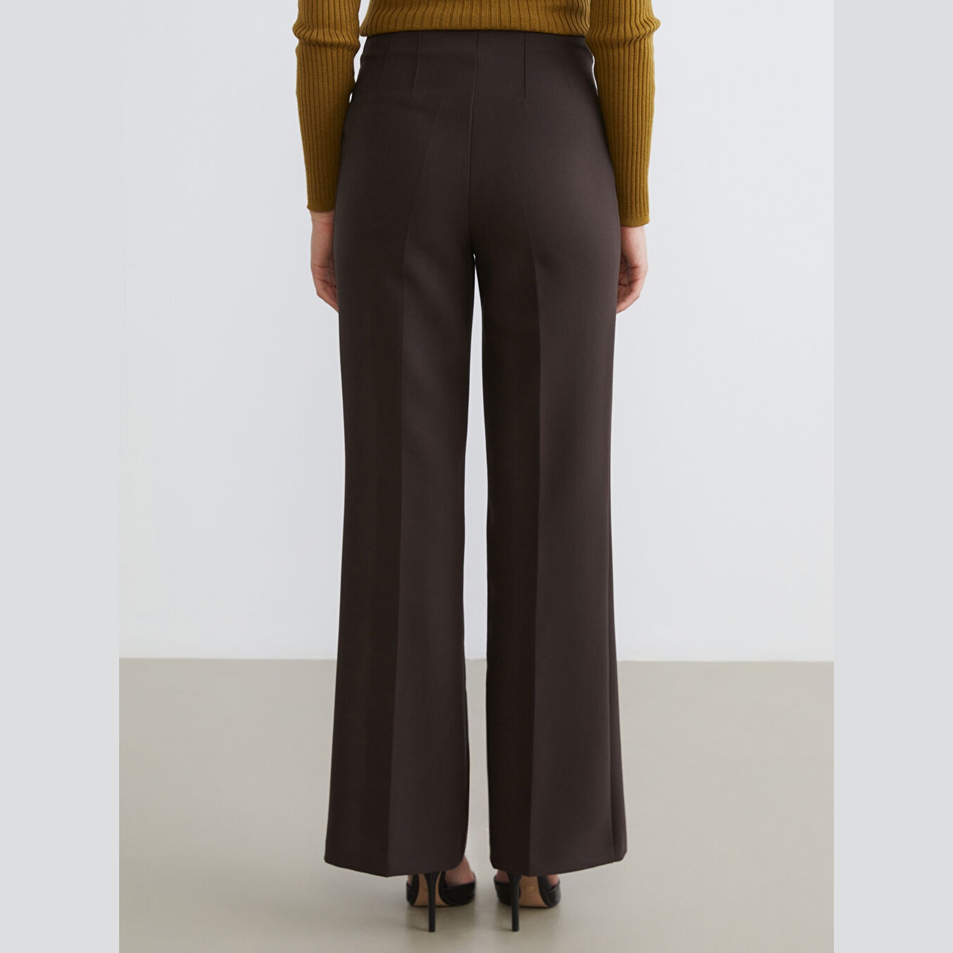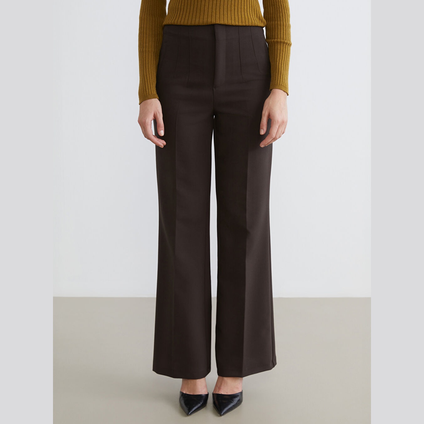 بنطال نسائي بخصر عالي – بني بقصة ضيقة وأرجل واسعة (قصة Slim، خامة بولي فيسكوز مرنة)