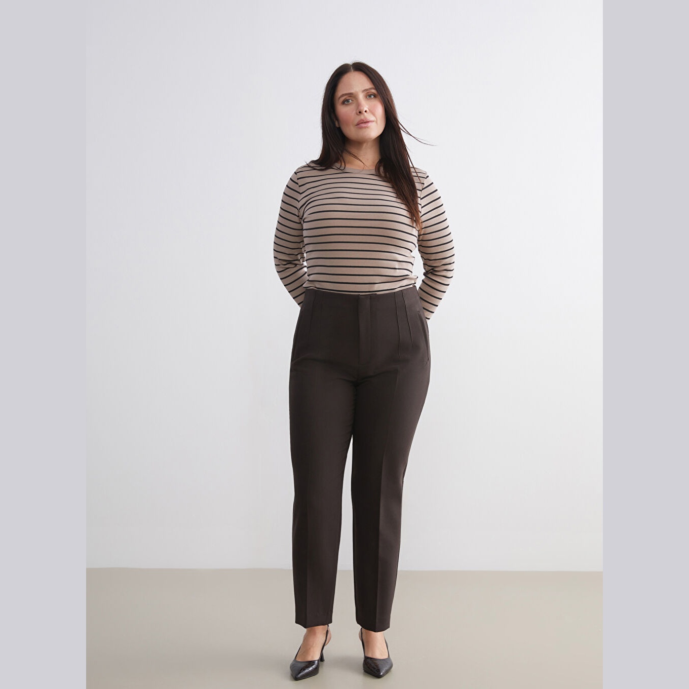 بنطال أنيق بلون بني سادة دافئ من مجموعة LCW Büyük Beden – لأناقة عملية ومحتشمة، يتميز بقصة جزرة (Carrot Fit) التي تتسع عند الورك وتضيق تدريجيًا نحو الكاحل، مع خصر عالي يعزز الثبات ويبرز القوام. مصنوع من خامة بوليفيسكوز مرنة ومريحة بتركيبة %72 بوليستر، %22 فيسكوز، %6 إيلاستان، ما يجعله مثاليًا للإطلالات اليومية أو العملية في المواسم المعتدلة.