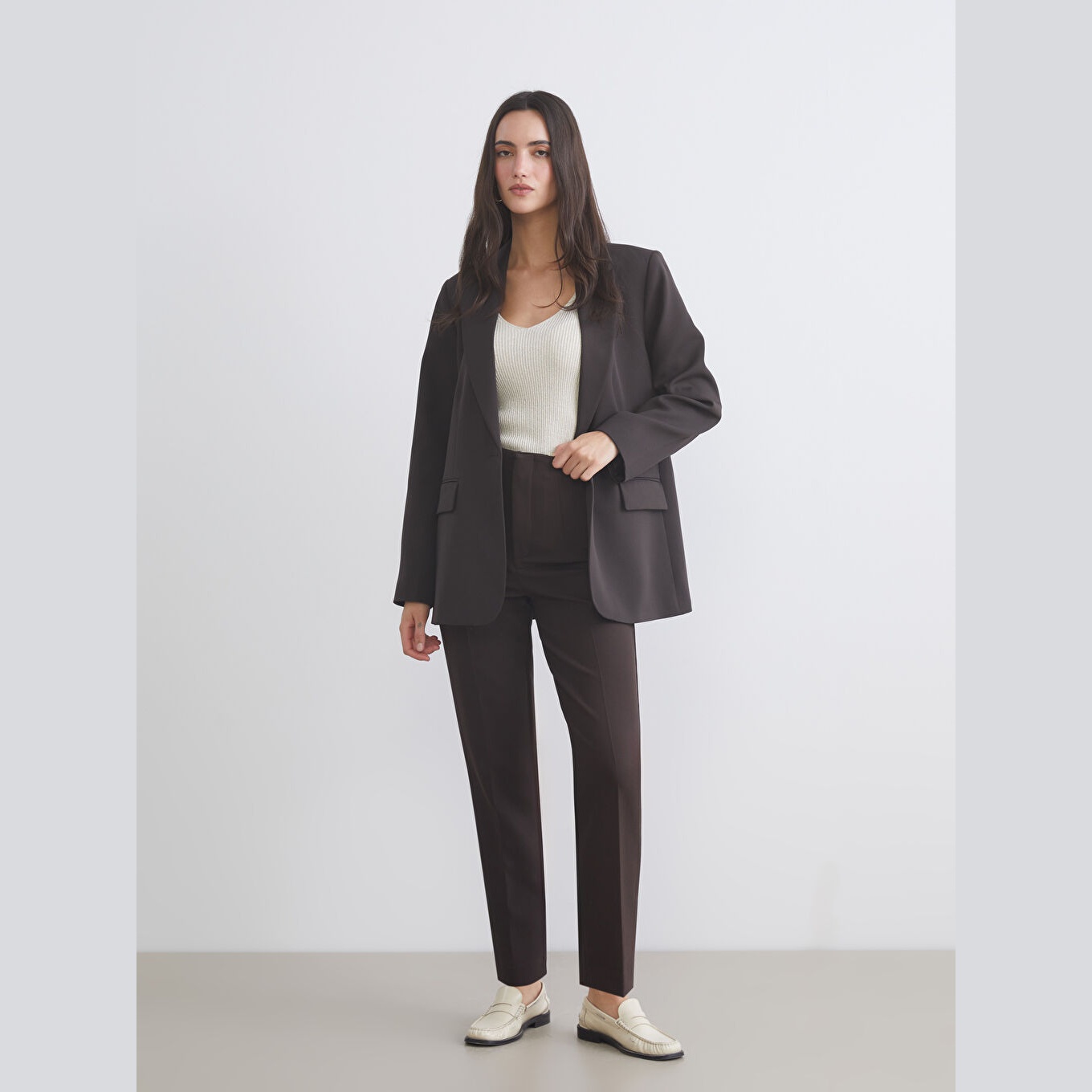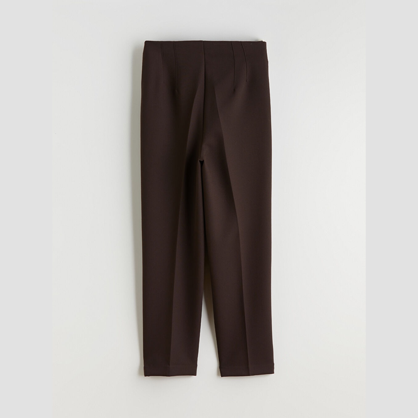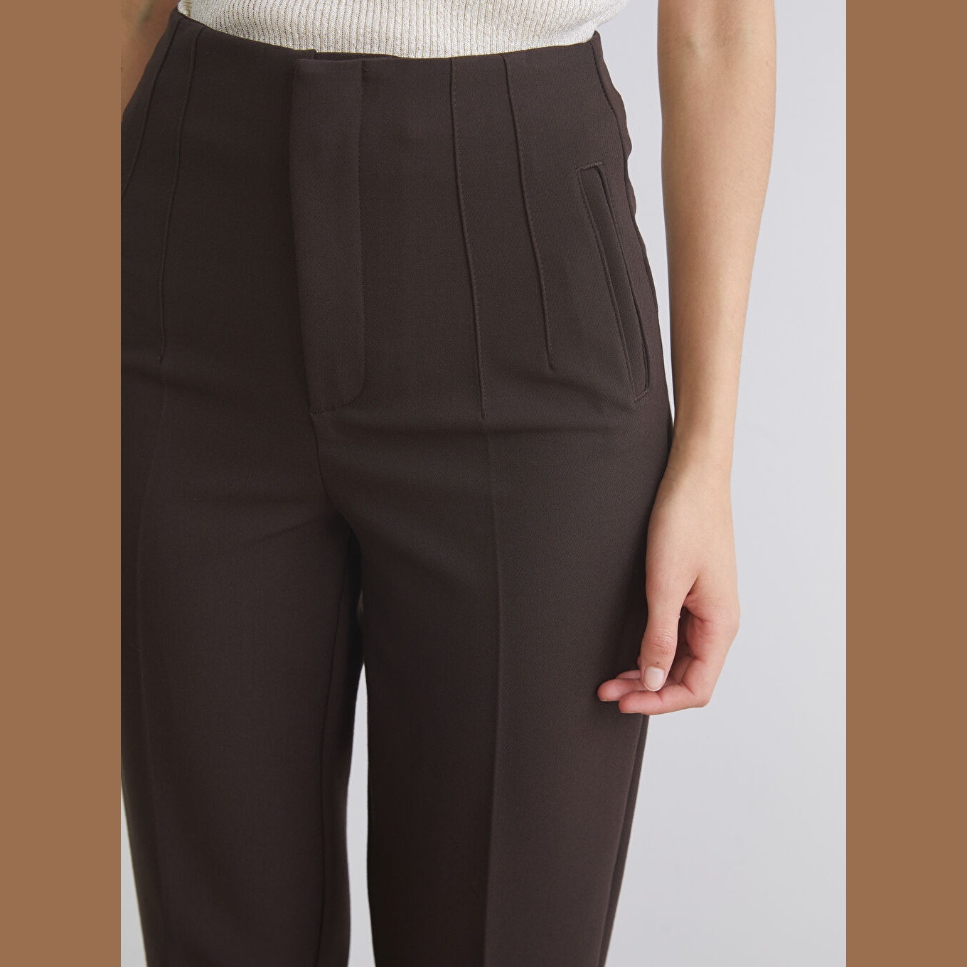 بنطال نسائي بخصر عالي – بني بقصة جزرة (قصة مريحة، أرجل ضيقة، خامة بولي فيسكوز مرنة)