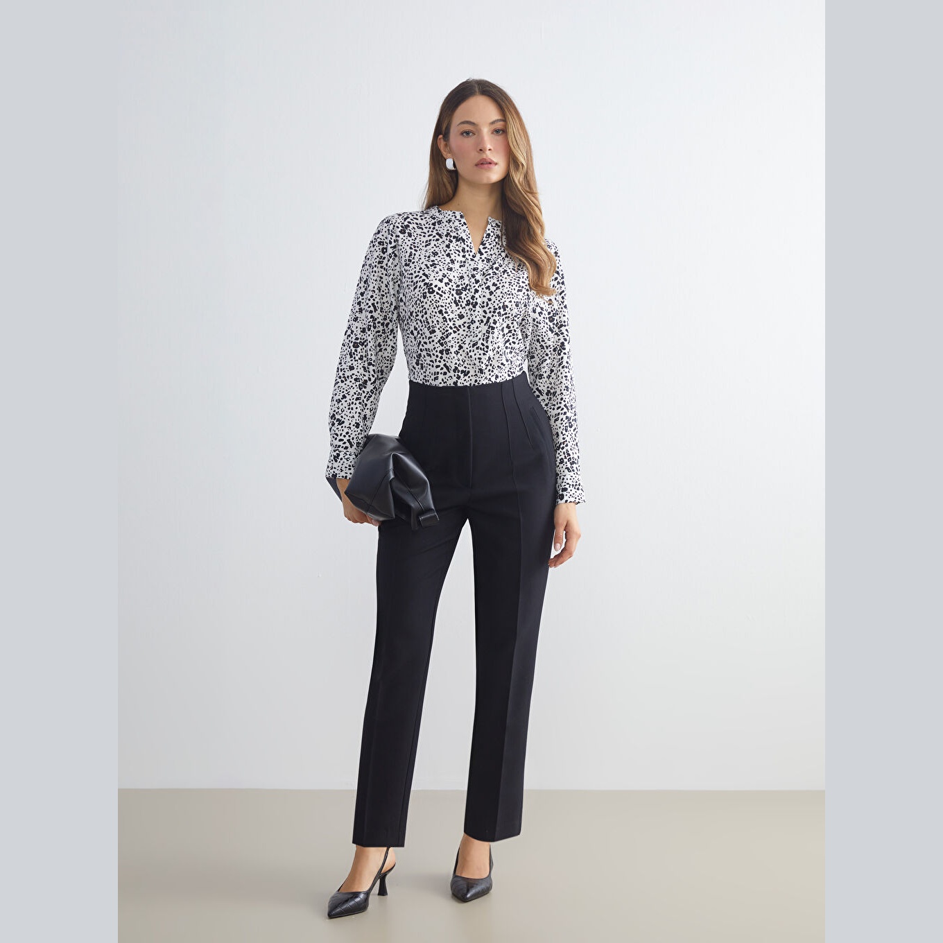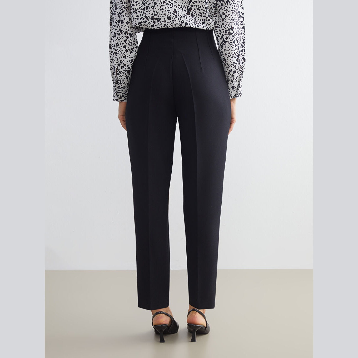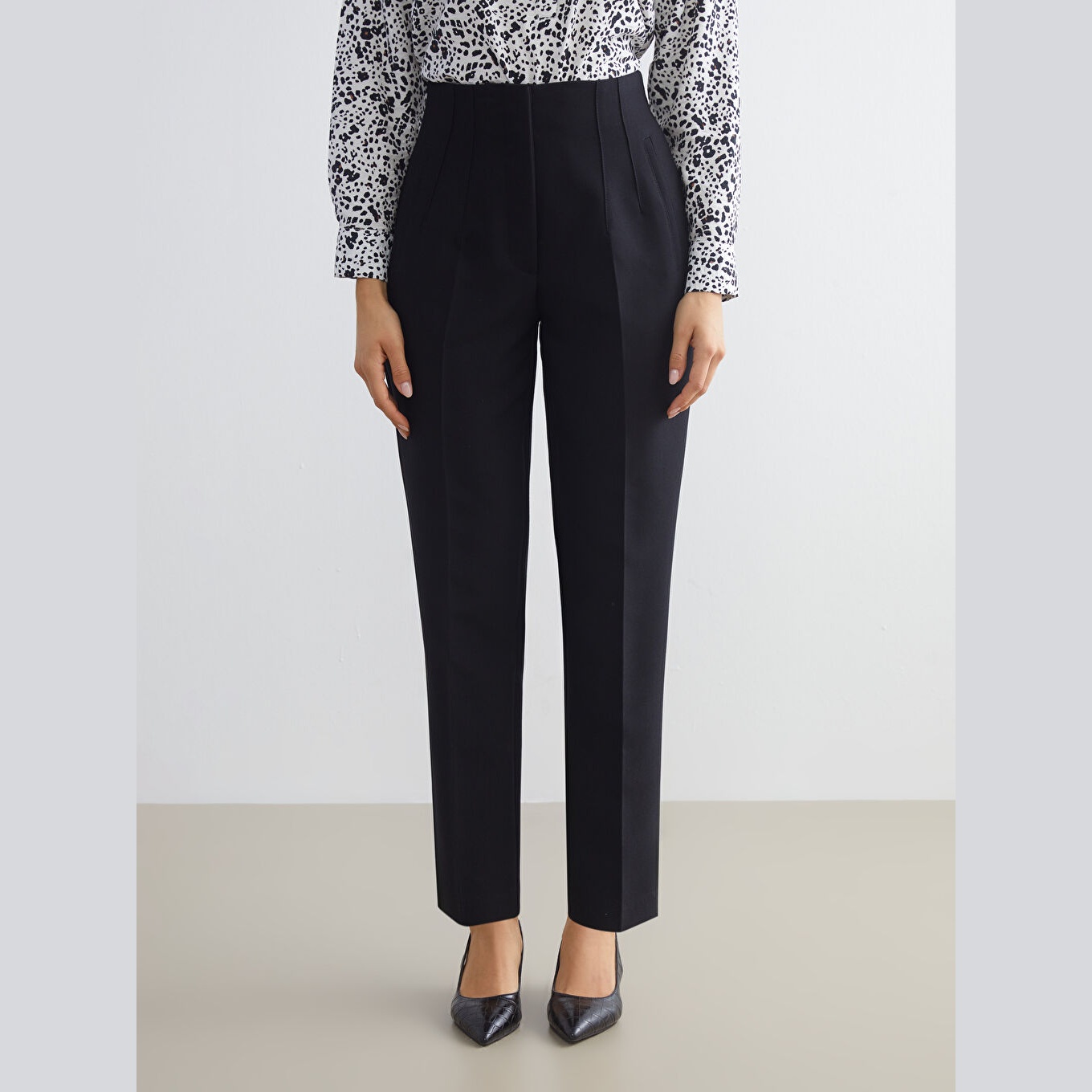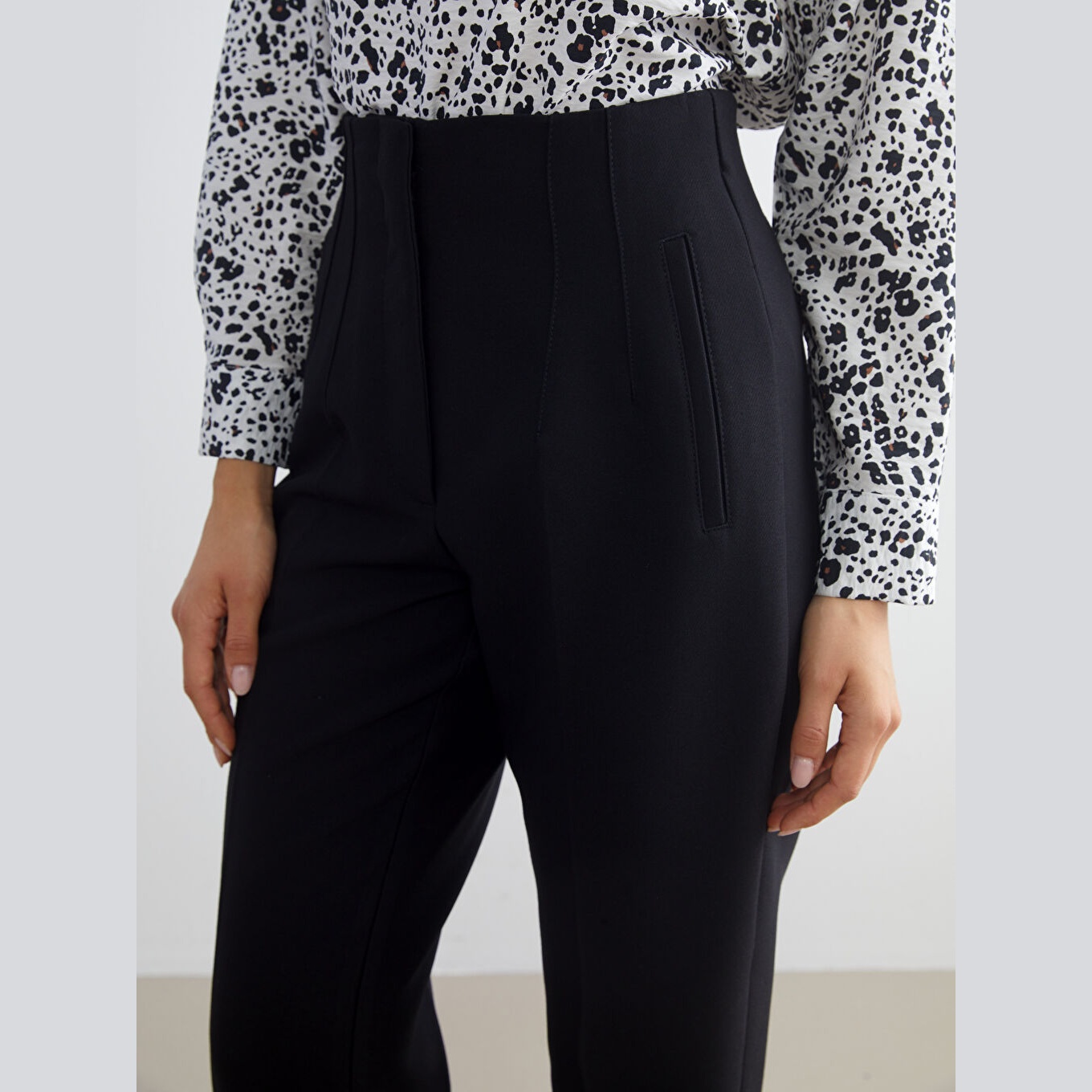 بنطال نسائي بخصر عالي – أسود بقصة سيجاريت (قصة ضيقة، أرجل مدببة، خامة بولي فيسكوز مرنة)