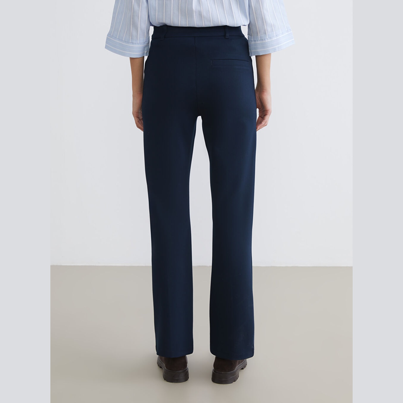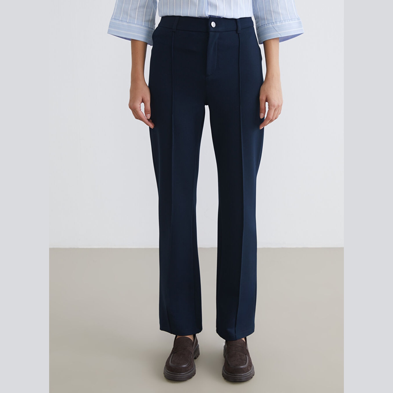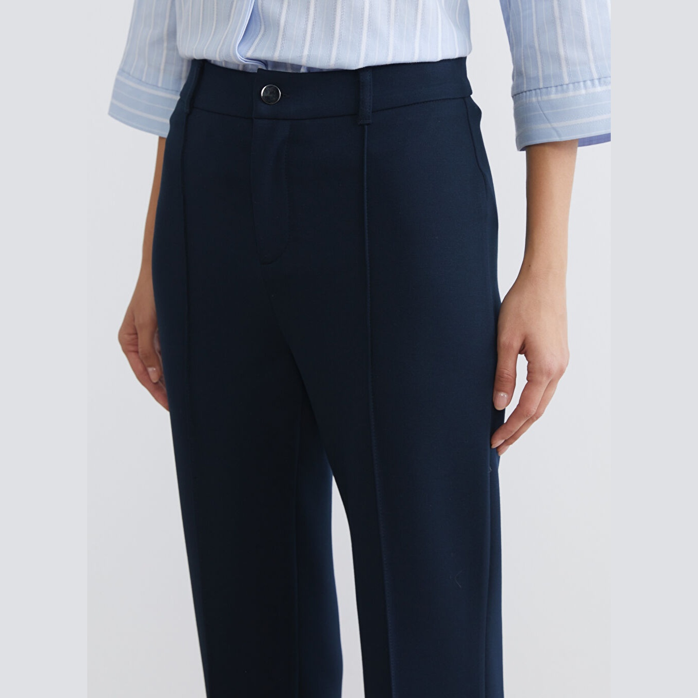 بنطال نسائي بخصر عالي – كحلي بقصة ضيقة وأرجل إسبانية (قصة Slim، خامة بونتي مرنة)