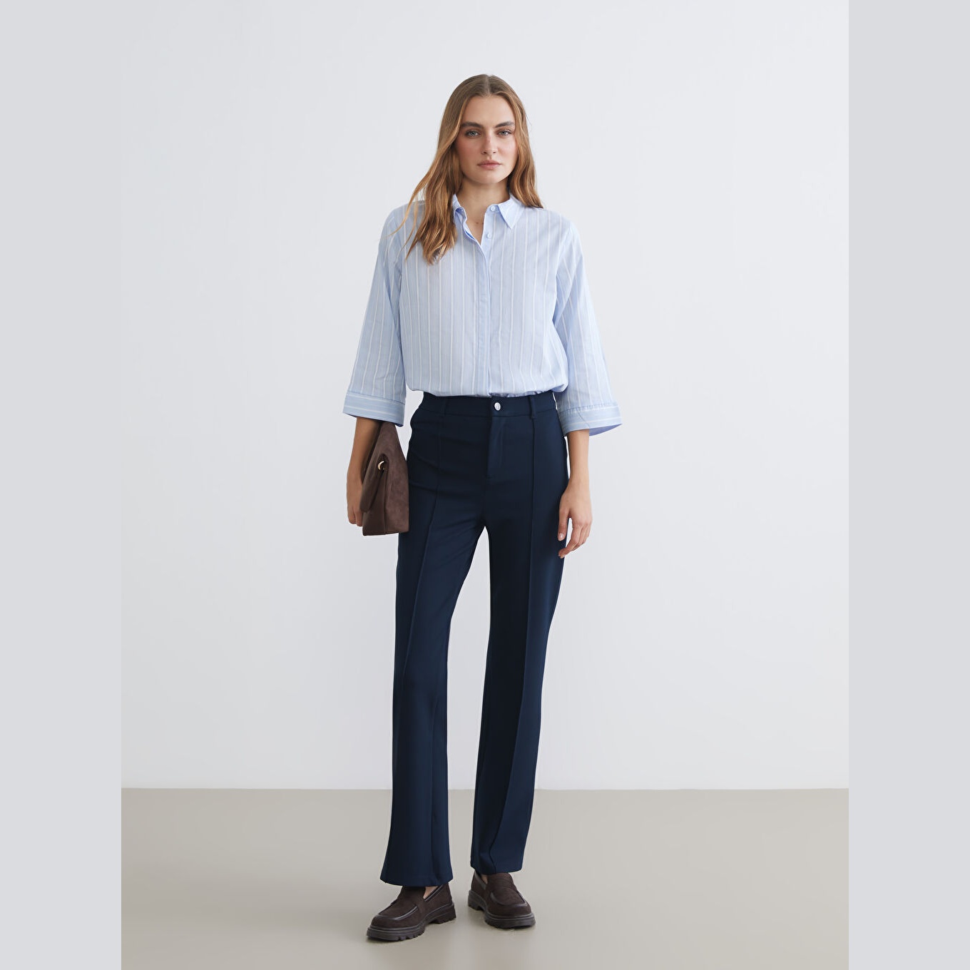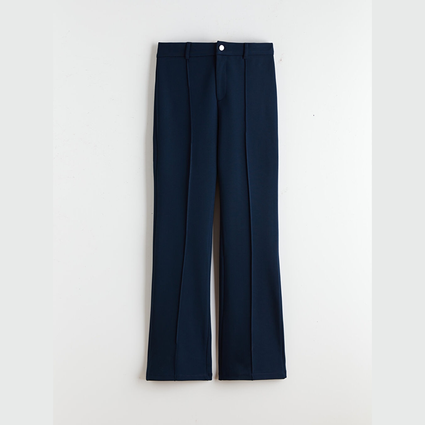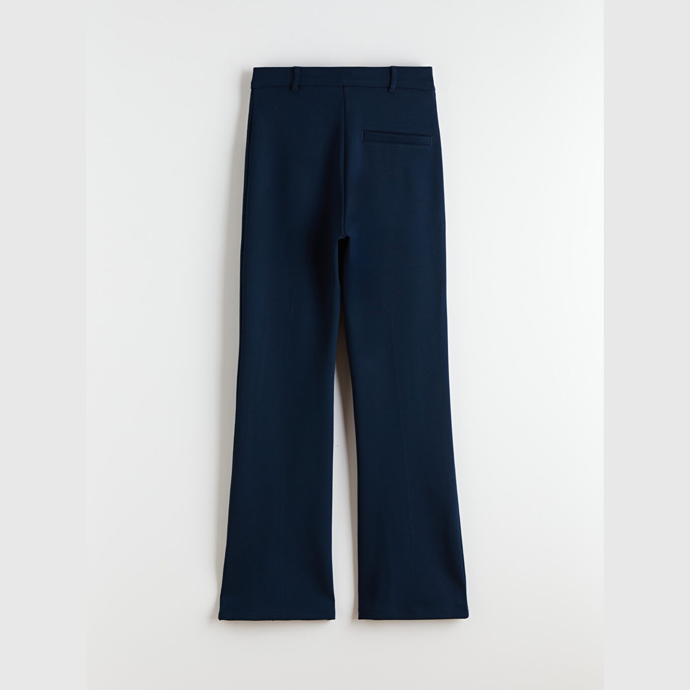 بنطال نسائي بخصر عالي – كحلي بقصة ضيقة وأرجل إسبانية (قصة Slim، خامة بونتي مرنة)