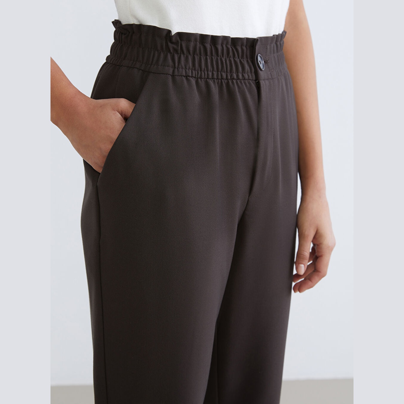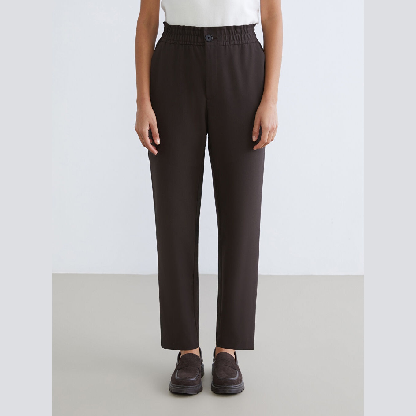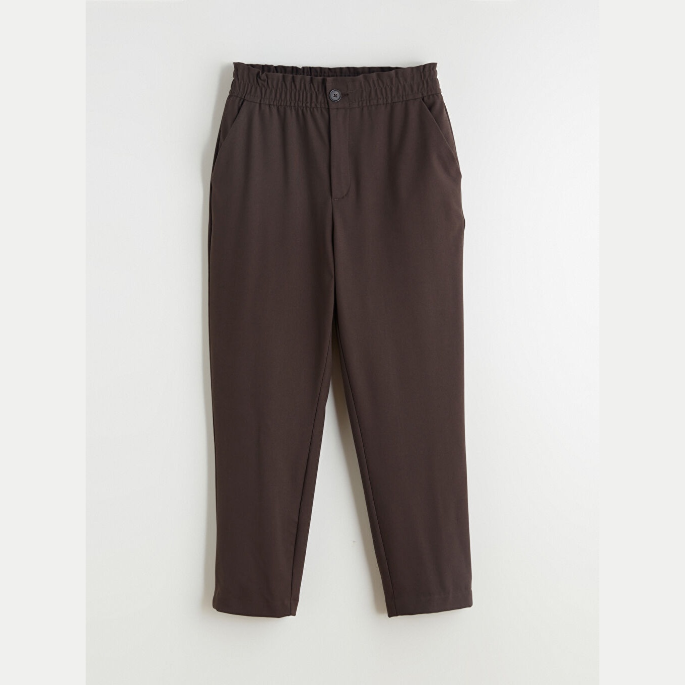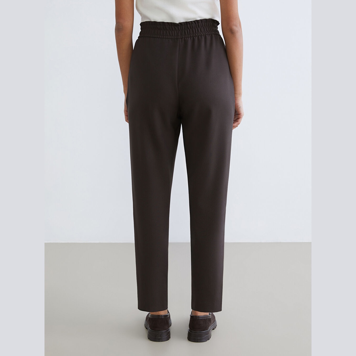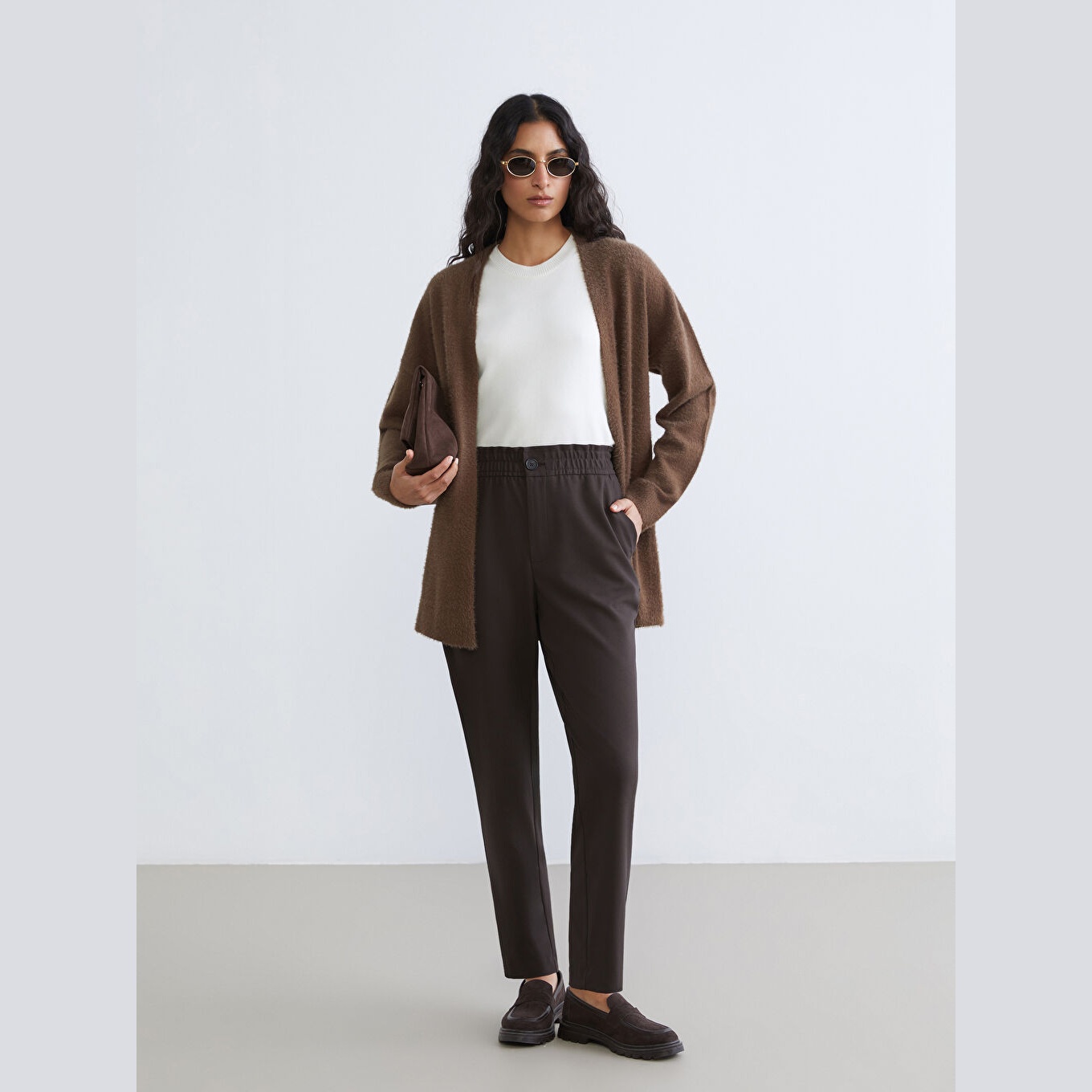 بنطال نسائي بخصر مطاطي – بني بقصة جزرة (قصة مريحة، أرجل ضيقة، خامة بولي فيسكوز متوسطة السماكة)
