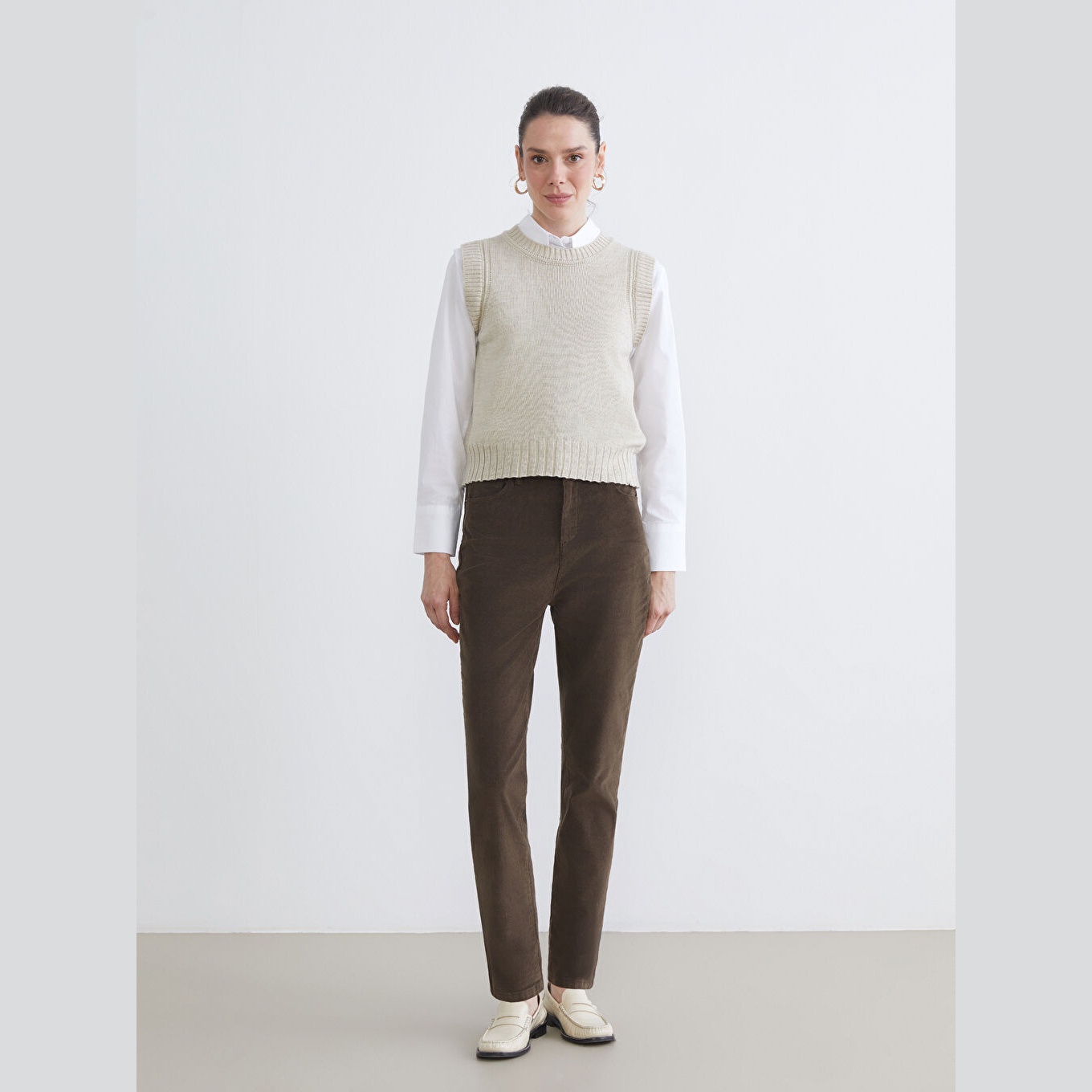 بنطال أنيق بلون بني سادة دافئ من مجموعة LCW Büyük Beden – لأناقة شتوية محتشمة بلمسة كلاسيكية، يتميز بقصة ضيقة (Slim Fit) تبرز القوام بانسيابية، مع أرجل ضيقة تمنحك مظهرًا أنثويًا متناسقًا. مصنوع من خامة كاديفة قطنية سميكة ومخططة بتركيبة %98 قطن، %2 إيلاستان، ما يجعله مثاليًا للإطلالات اليومية أو العملية خلال الخريف والشتاء.