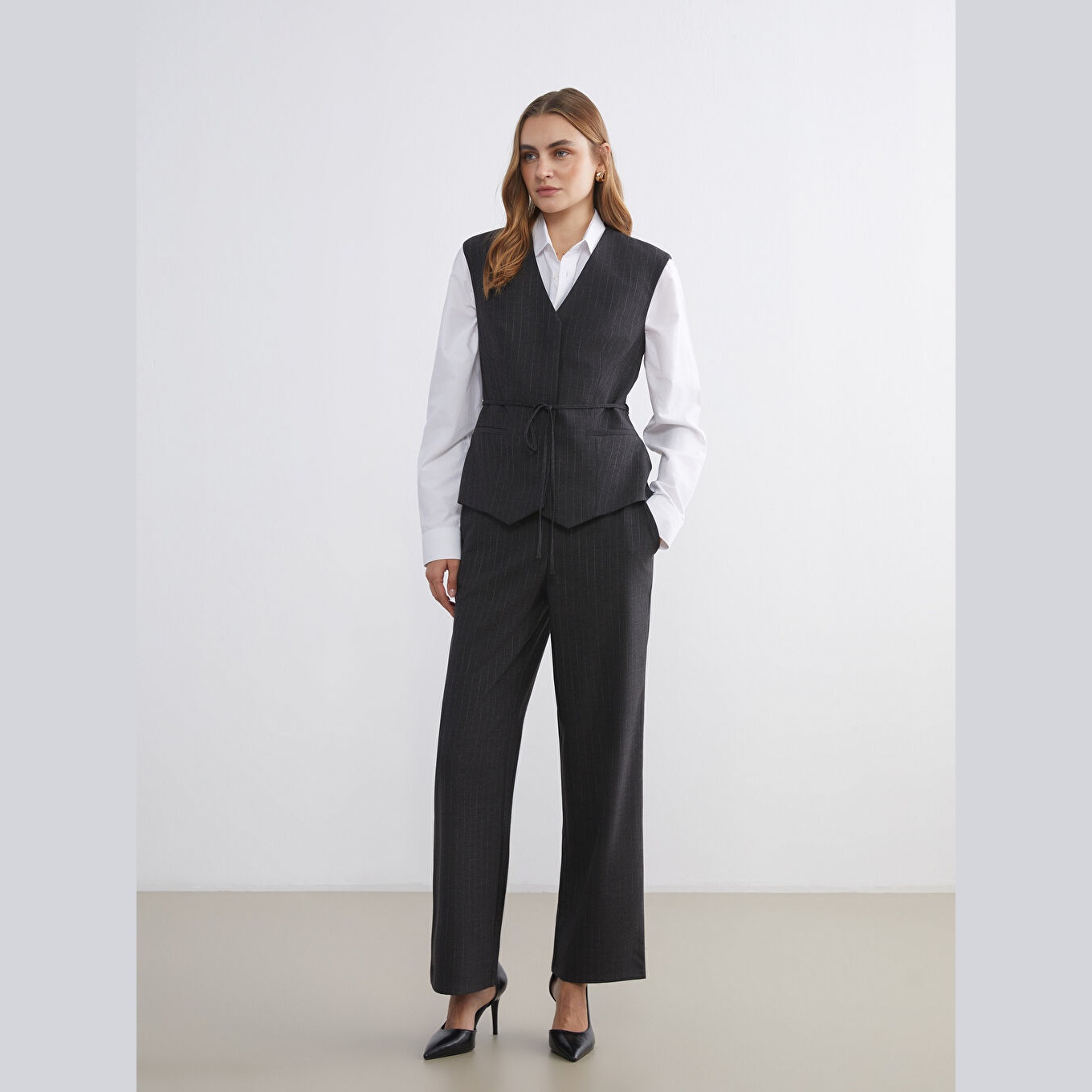 بنطال أنيق بلون رمادي مخطط طوليًا من مجموعة LCW Büyük Beden – لأناقة يومية مريحة ومحتشمة بلمسة كلاسيكية، يتميز بقصة واسعة (Loose Fit) مع أرجل عريضة تمنحك حرية حركة ومظهرًا انسيابيًا، إلى جانب خصر مطاطي عملي يوفر راحة وثباتًا طوال اليوم. مصنوع من خامة جبردين بوليفيسكوز مرنة بتركيبة %64 بوليستر، %34 فيسكوز، %2 إيلاستان، ما يجعله مثاليًا للإطلالات اليومية في المواسم المعتدلة.