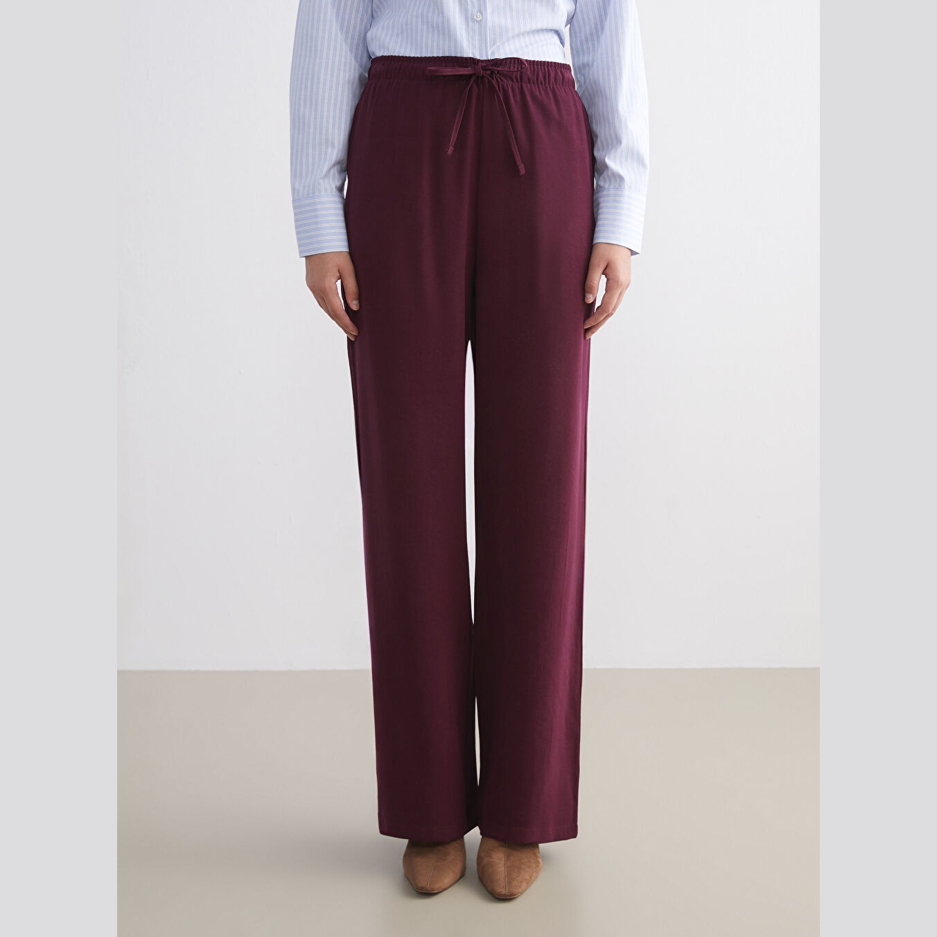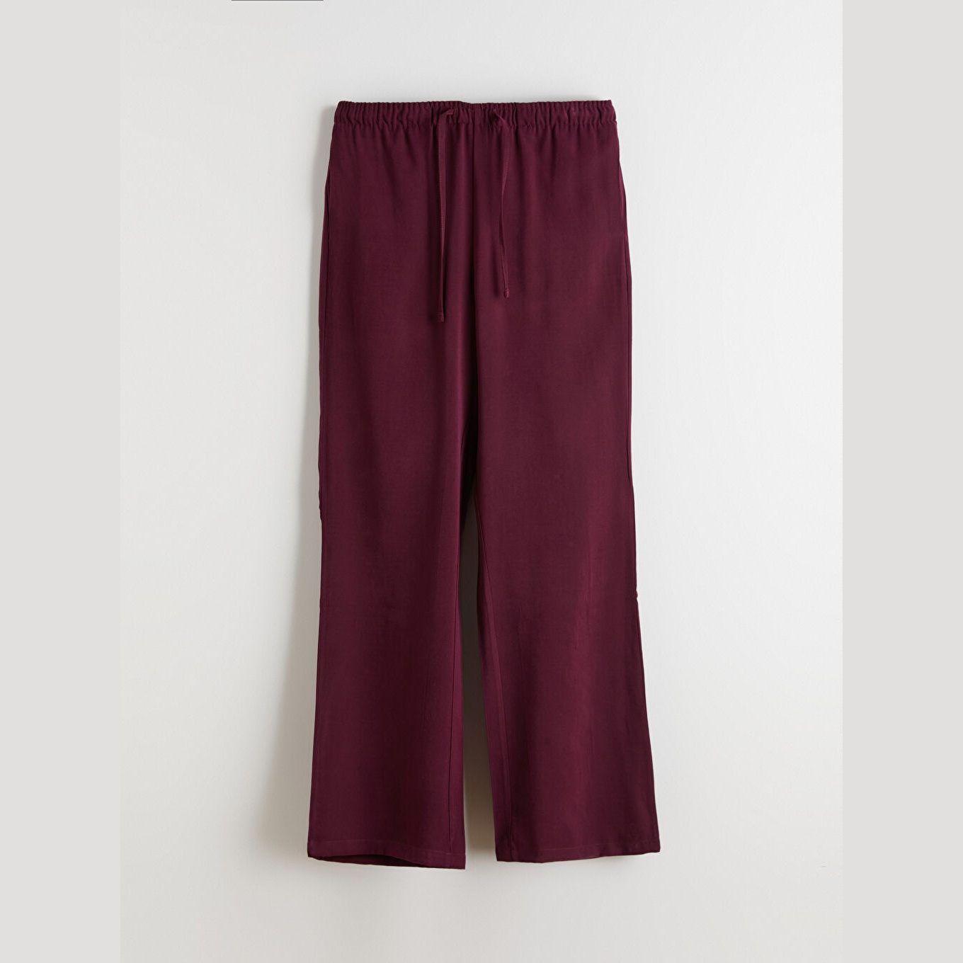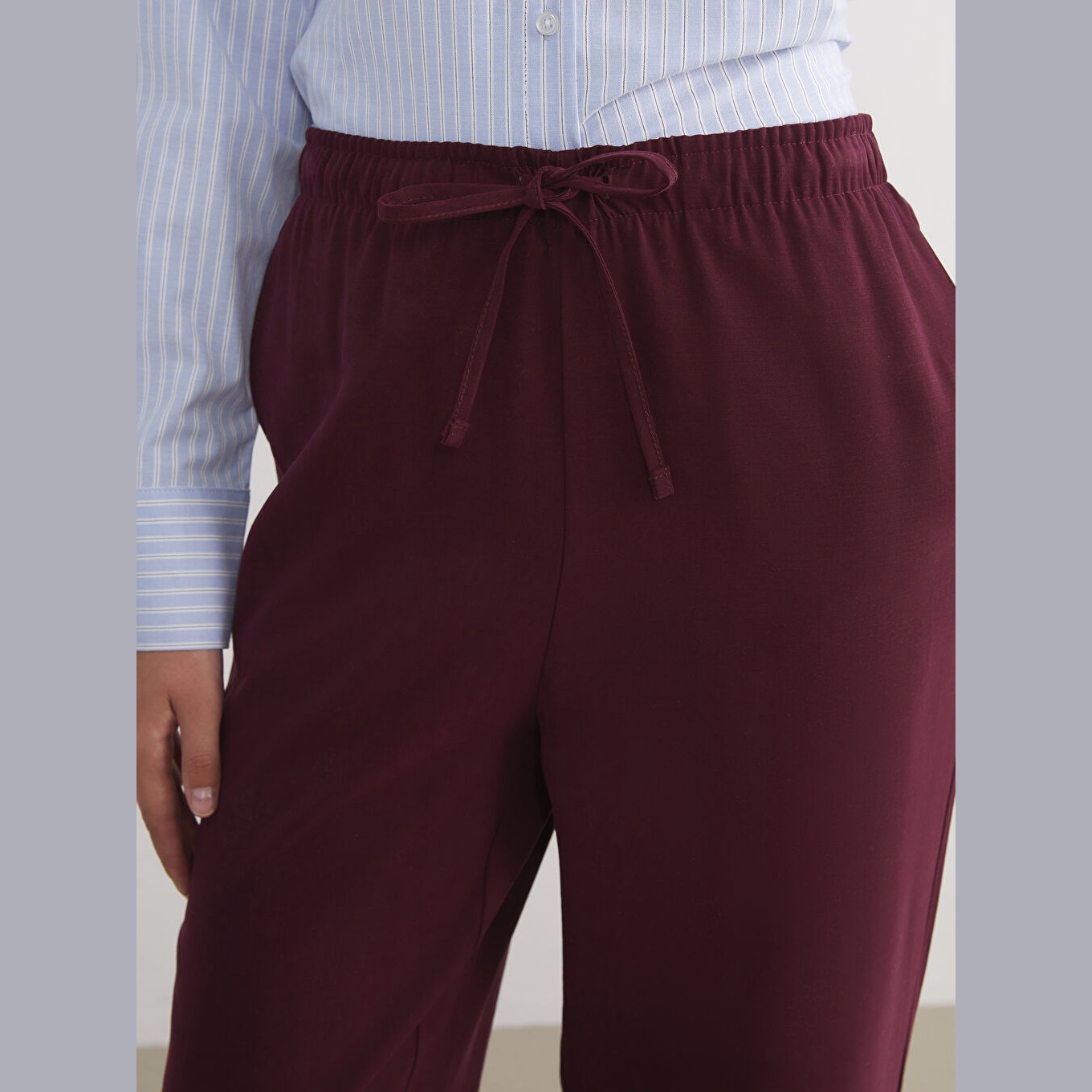 بنطال نسائي بخصر مطاطي – بوردو بقصة واسعة (قماش خفيف، خامة فيسكوز ناعمة)