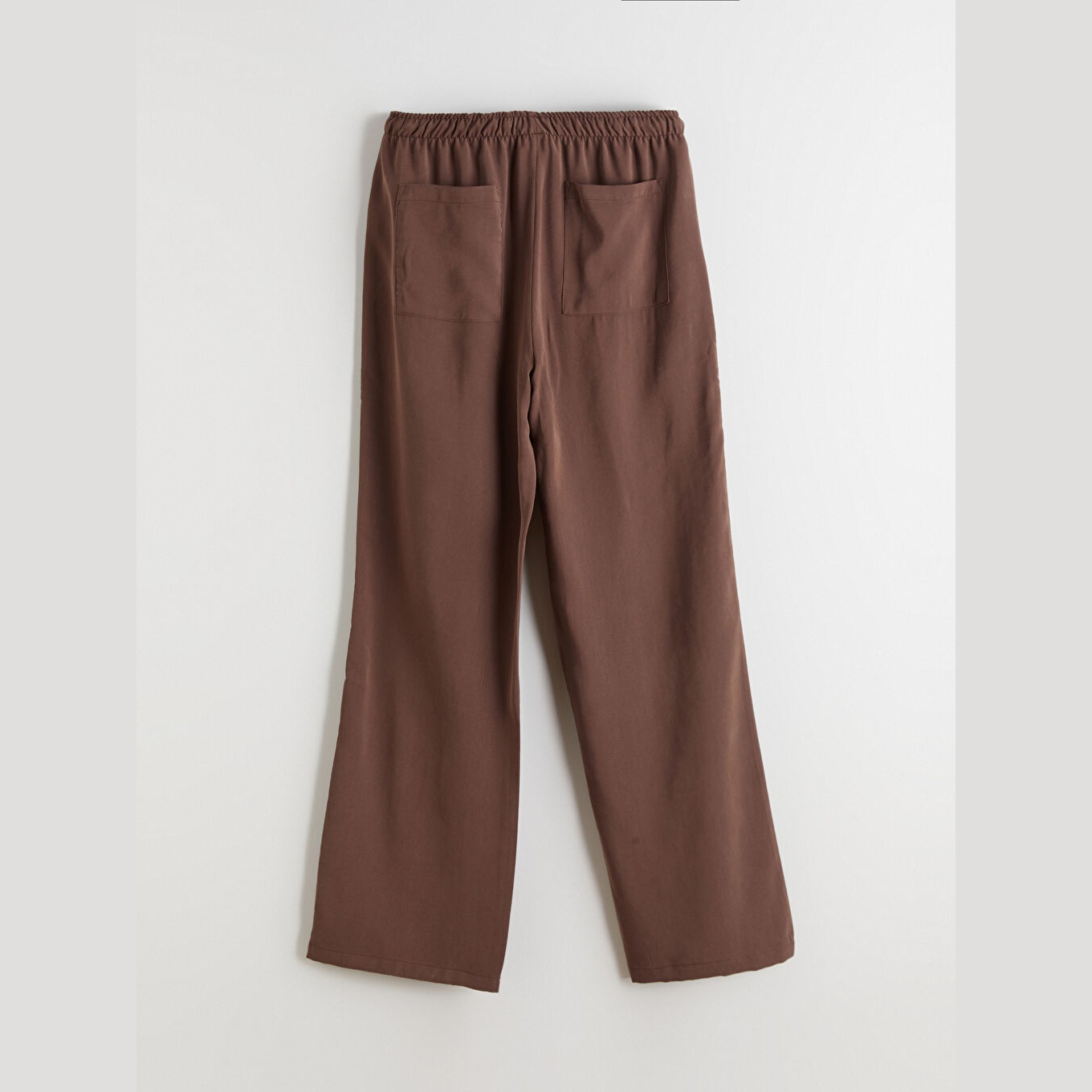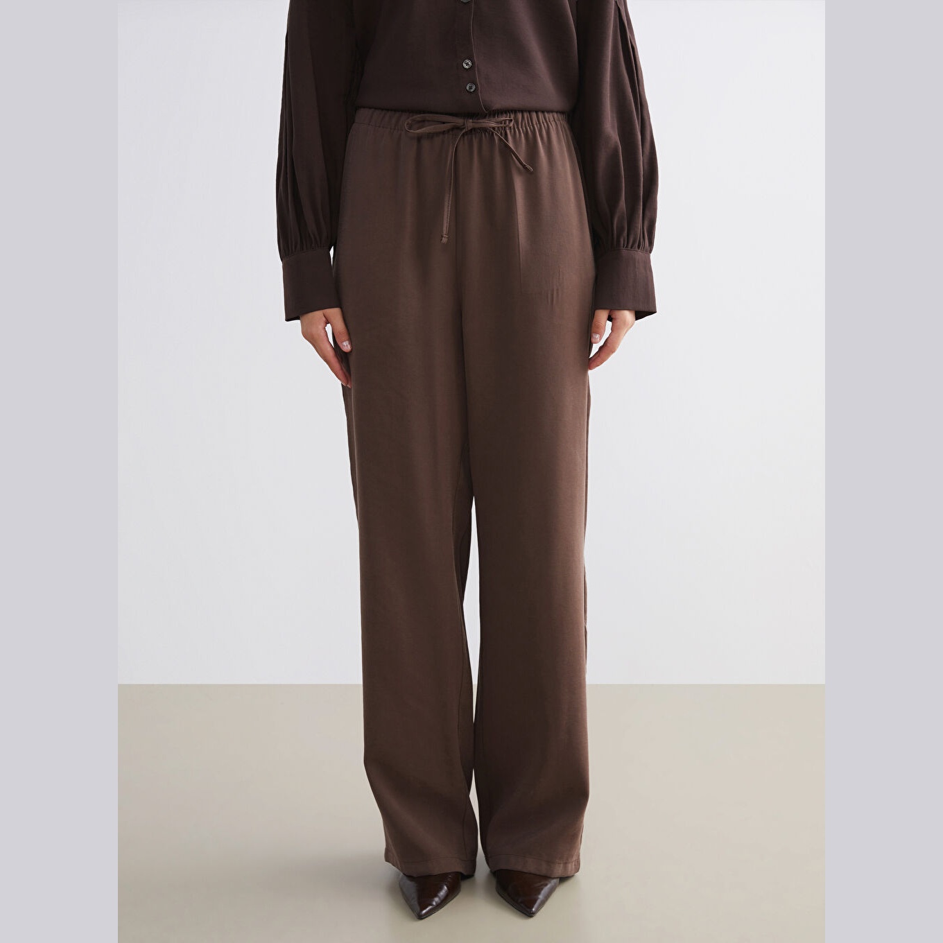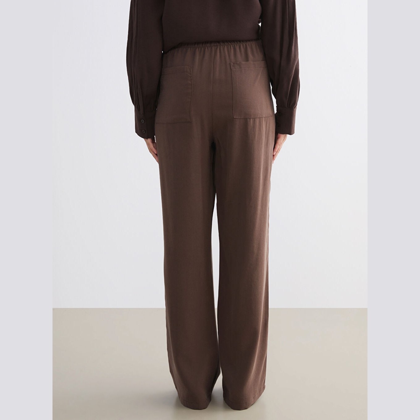 بنطال نسائي بخصر مطاطي – بني بقصة واسعة (قماش خفيف، خامة فيسكوز ناعمة)