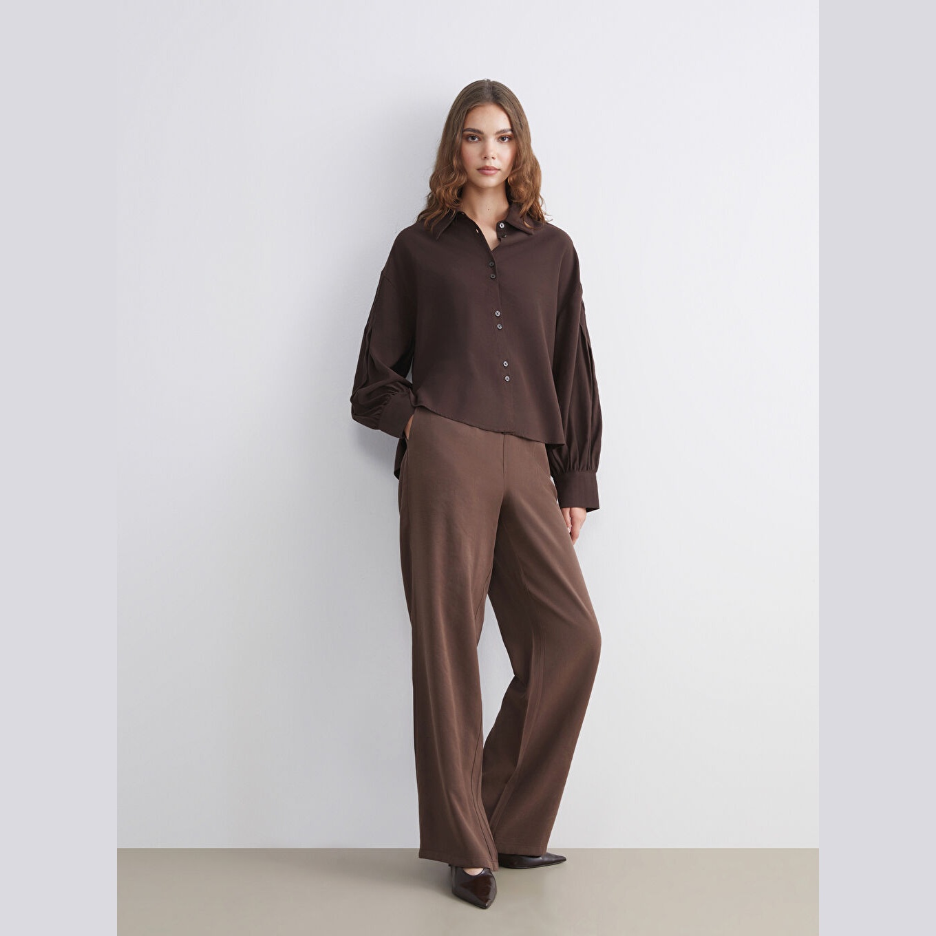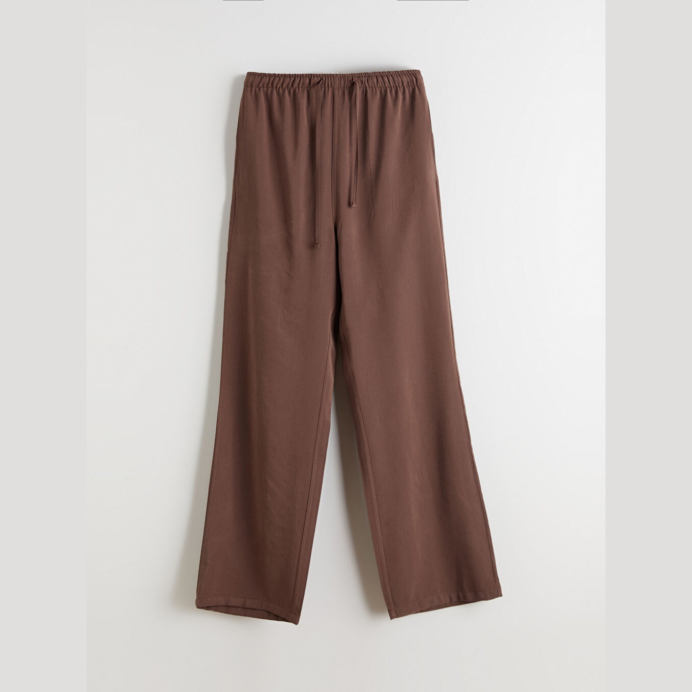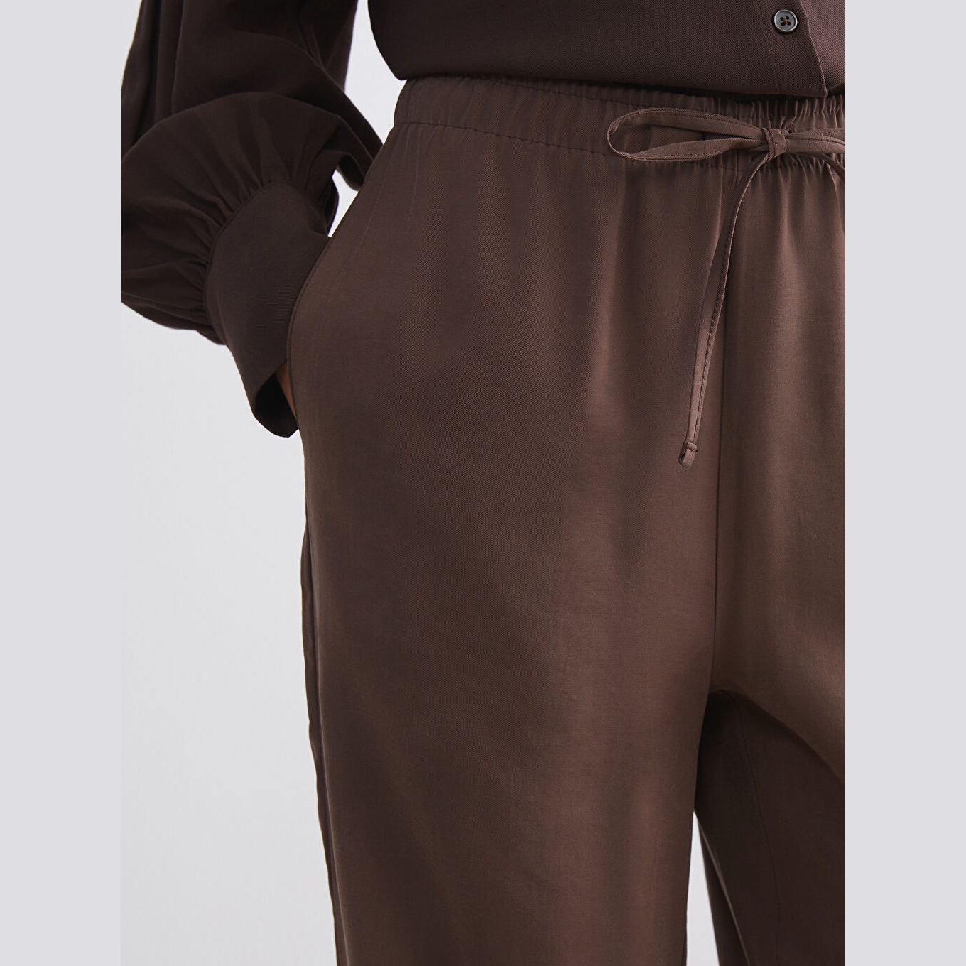 بنطال نسائي بخصر مطاطي – بني بقصة واسعة (قماش خفيف، خامة فيسكوز ناعمة)